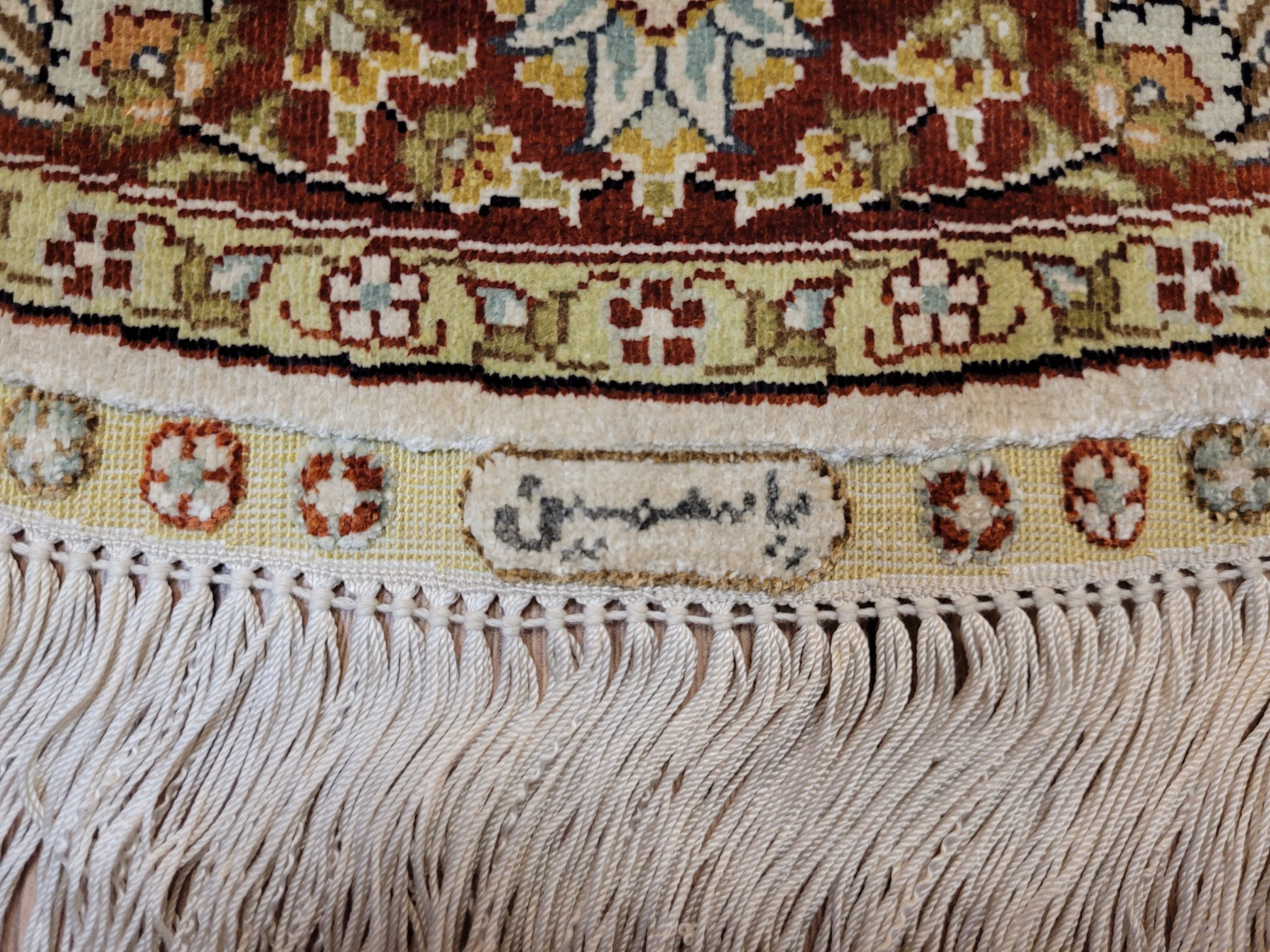 Hereke Teppich Seide auf Seide signiert rund florales Medaillon