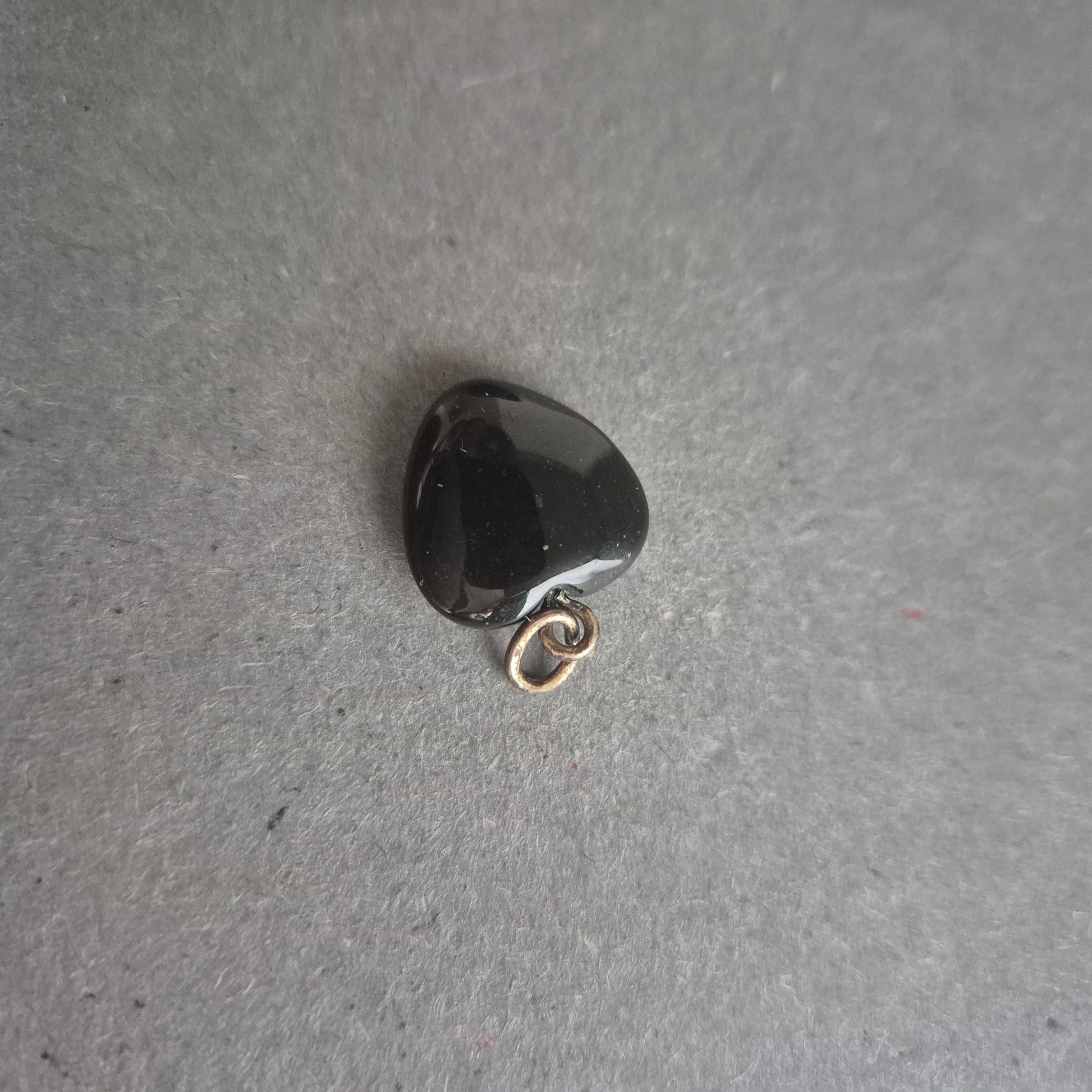 Dieser schlichte, elegante Herzanhänger aus poliertem schwarzen Onyx strahlt zeitlose Schönheit aus. Der dunkle Edelstein überzeugt durch seine glatte, glänzende Oberfläche und die klassische Herzform – ideal als dezentes Statement am Hals oder als liebevolles Geschenk. Die Öse ist aus Metall gefertigt und zeigt leichte Patina, die dem Stück einen authentischen Vintage-Charme verleiht.