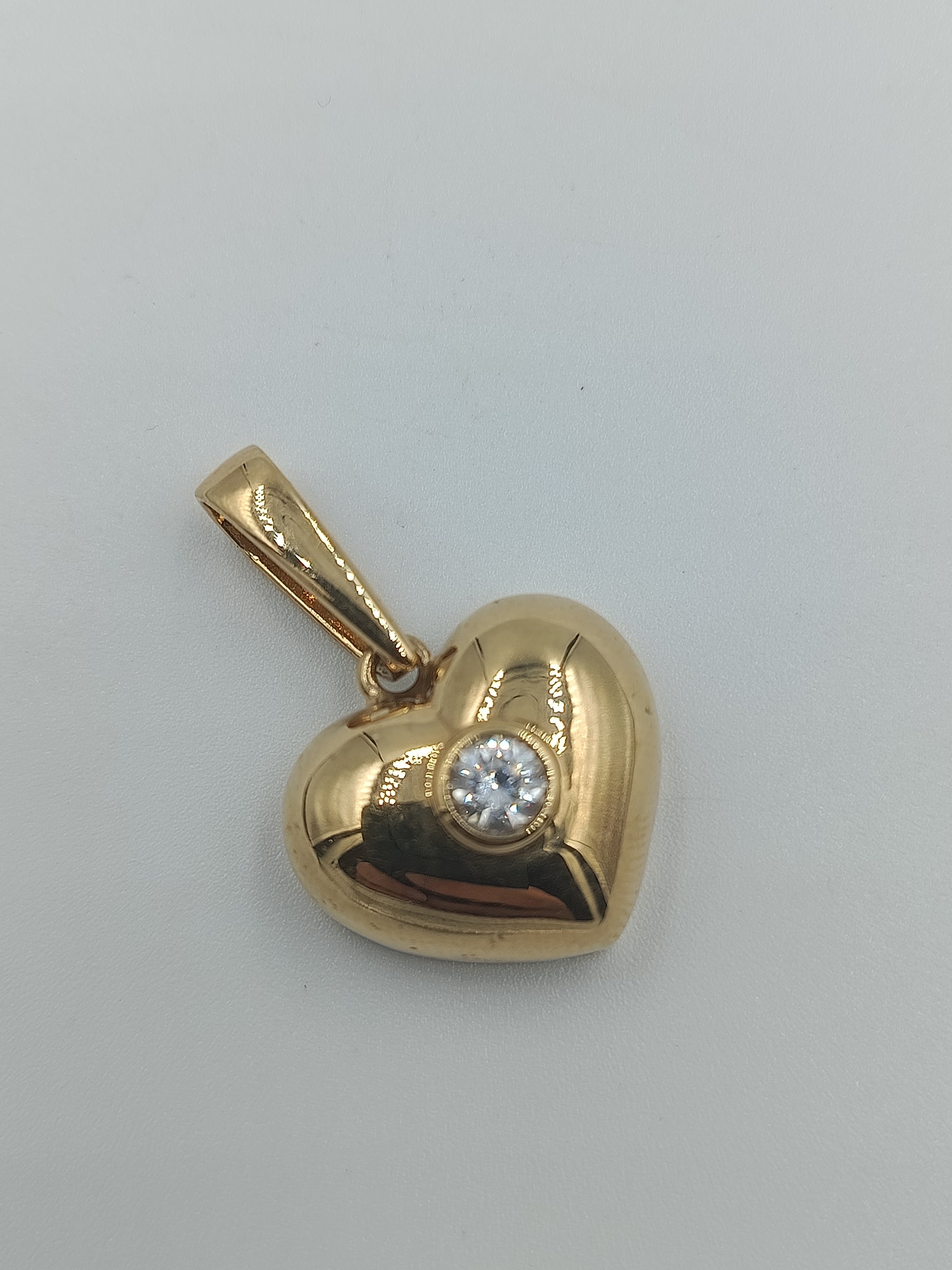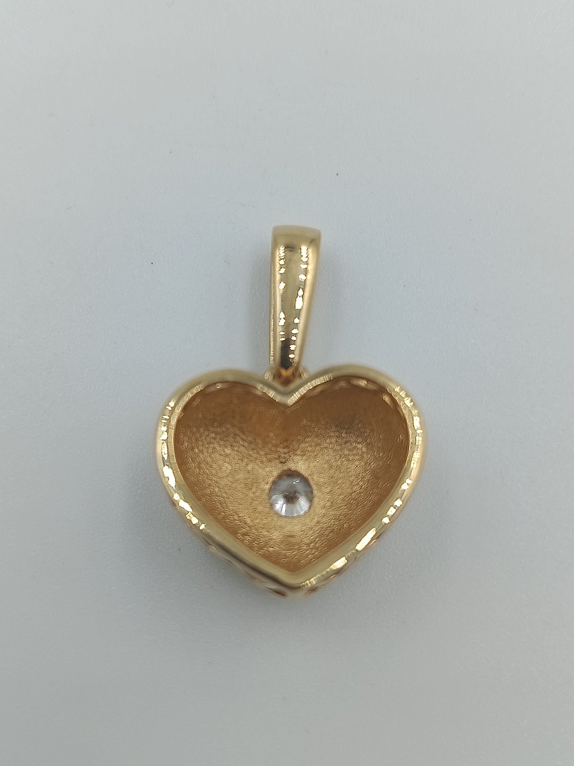 Romantischer Herzanhänger aus vergoldetem Metall, besetzt mit einem funkelnden Zirkonia-Stein in der Mitte. Das Design ist schlicht und elegant, ideal als Geschenk oder zum täglichen Tragen.