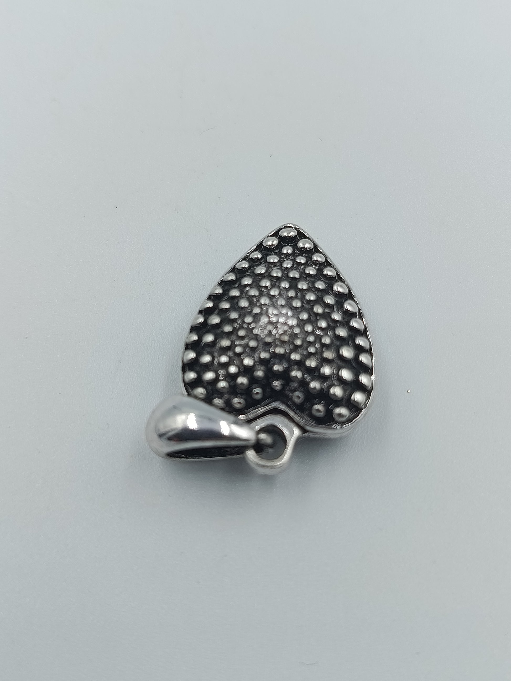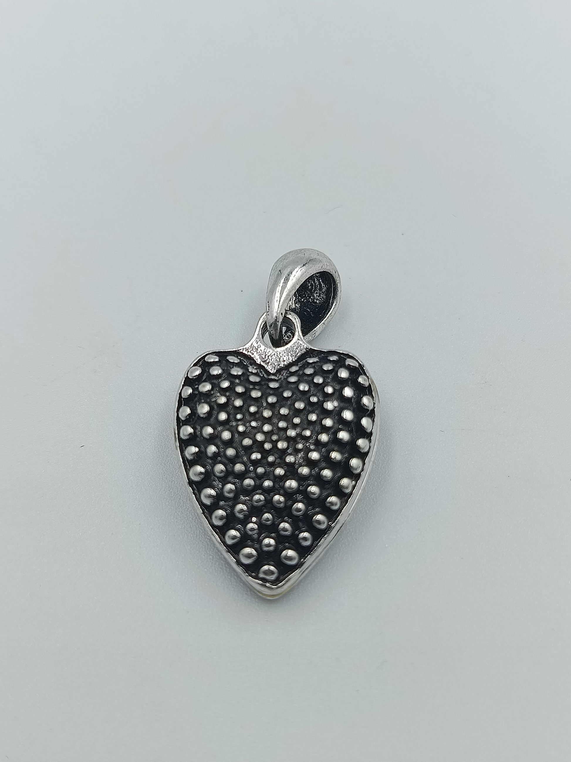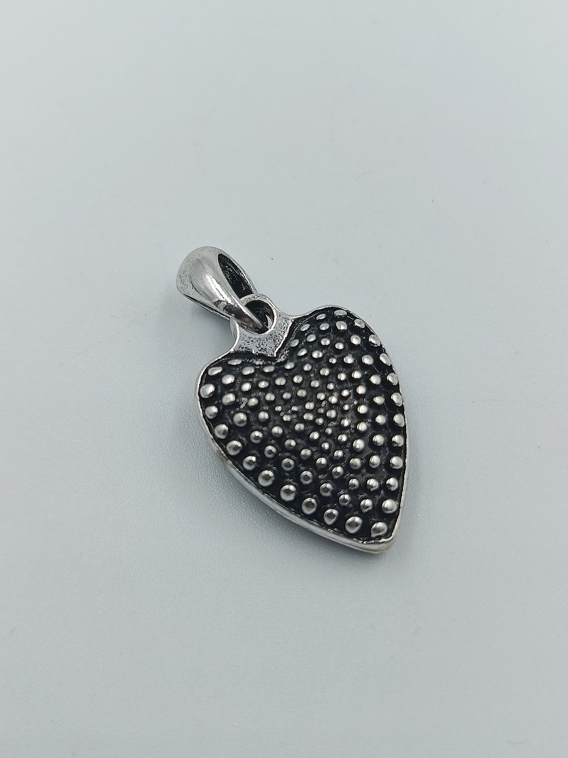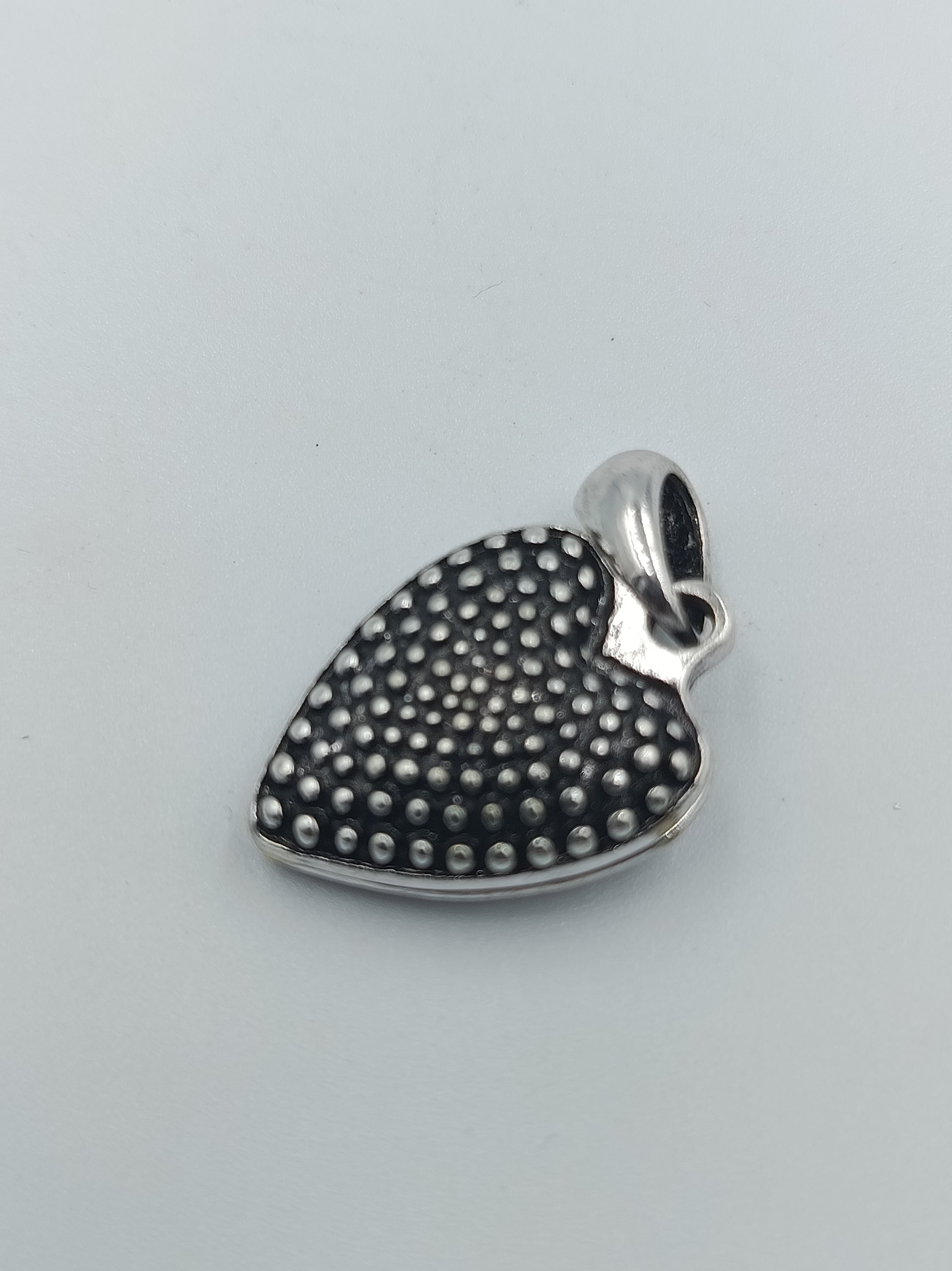 Eleganter Herzanhänger aus massivem  Silber mit markantem, gepunktetem Strukturmuster. Das oxidierte Finish betont die erhabenen Punkte und verleiht dem Anhänger einen ausdrucksstarken, modernen Look.