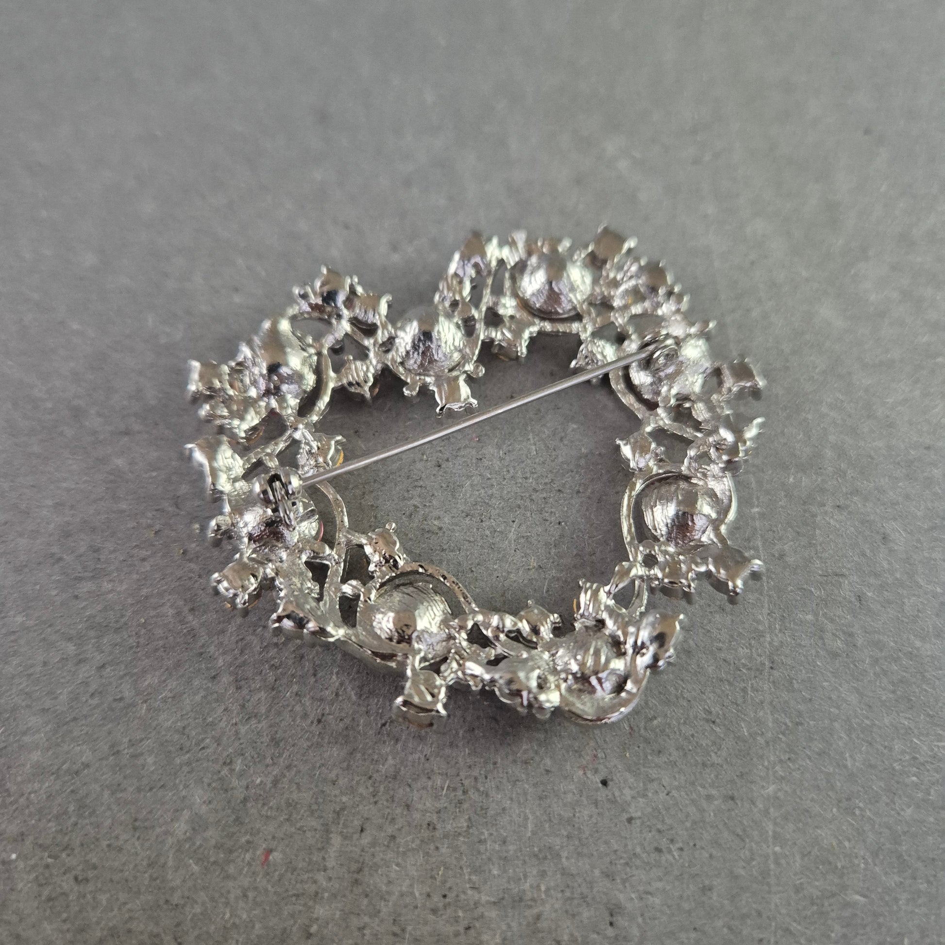 Diese bezaubernde Vintage-Brosche in Herzform ist mit zahlreichen funkelnden rosa Strasssteinen besetzt und ein echter Hingucker für Liebhaberinnen glamouröser Accessoires. Die Kombination aus silberfarbenem Metall und leuchtendem Rosaton verleiht der Brosche einen eleganten und romantischen Look – ideal für festliche Anlässe oder als besonderes Geschenk.