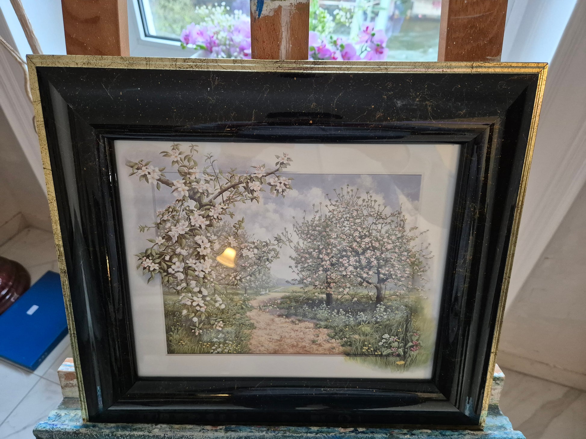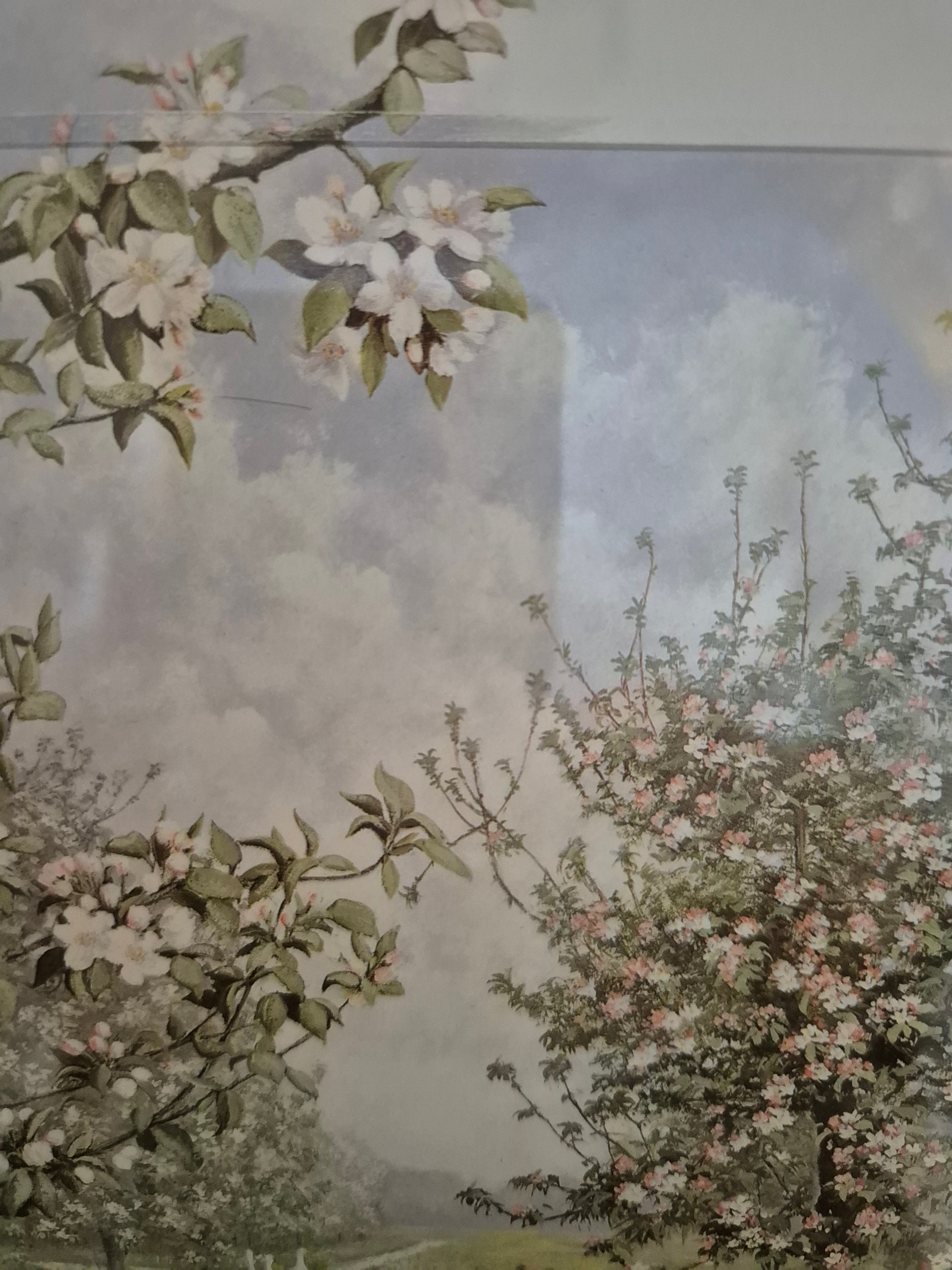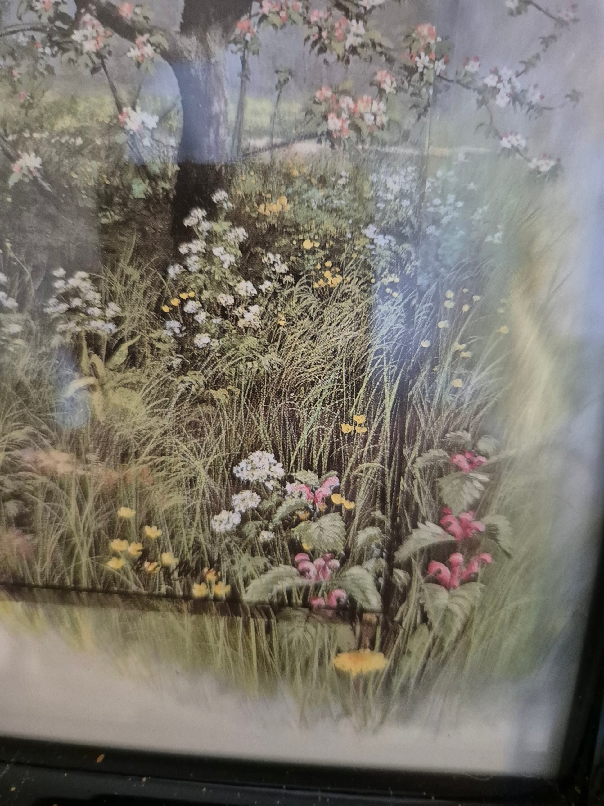 Herzlich willkommen, angeboten wird ein hochwertiger Kunstdruck mit einer malerischen Sommerlandschaft. Die idyllische Szene strahlt Ruhe und Harmonie aus und wird durch die ansprechende Rahmung in Schwarz perfekt in Szene gesetzt. Der Kunstdruck ist hinter Glas geschützt und überzeugt durch seine warme Farbgebung und detailreiche Darstellung.