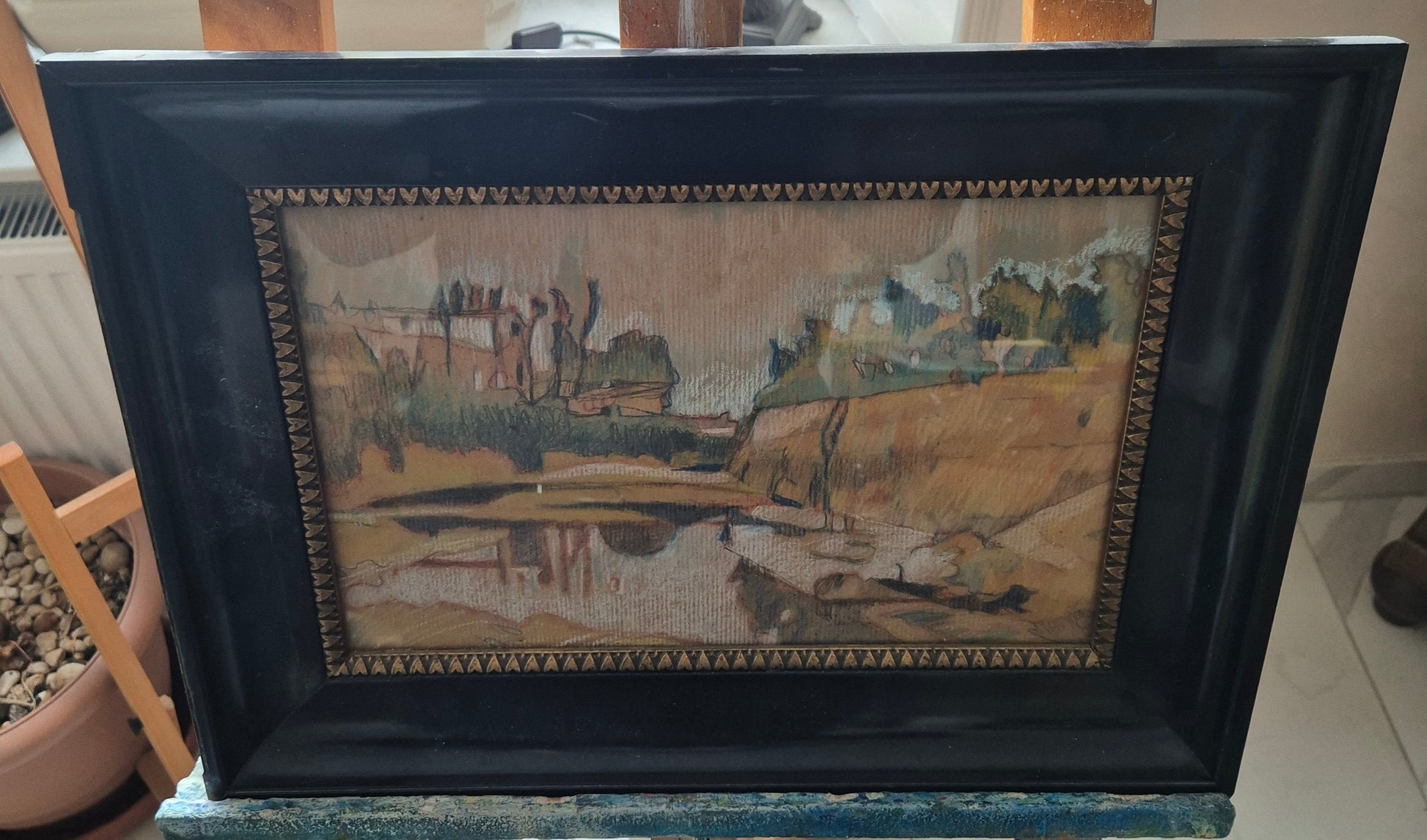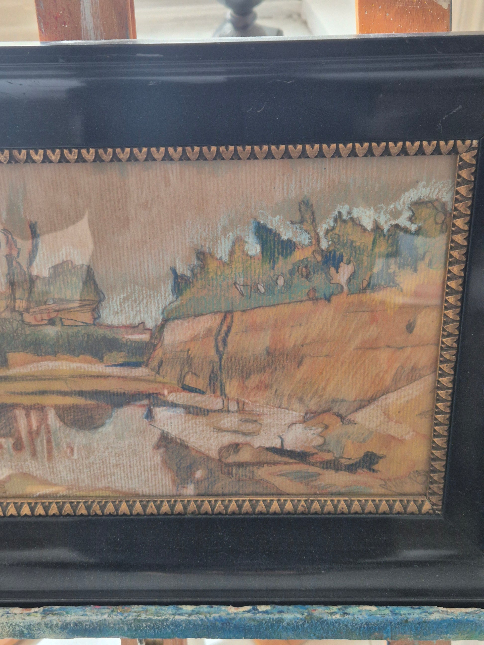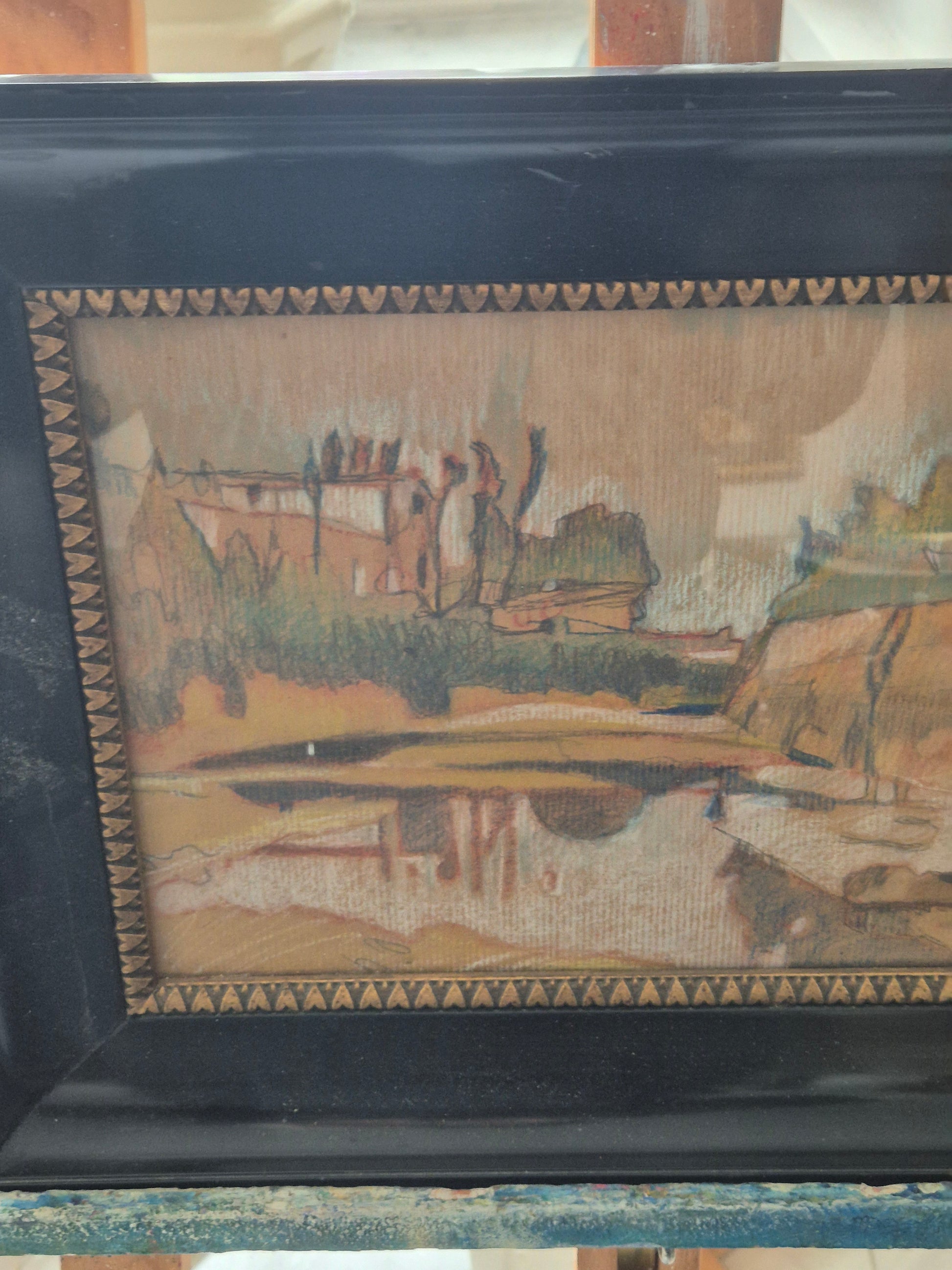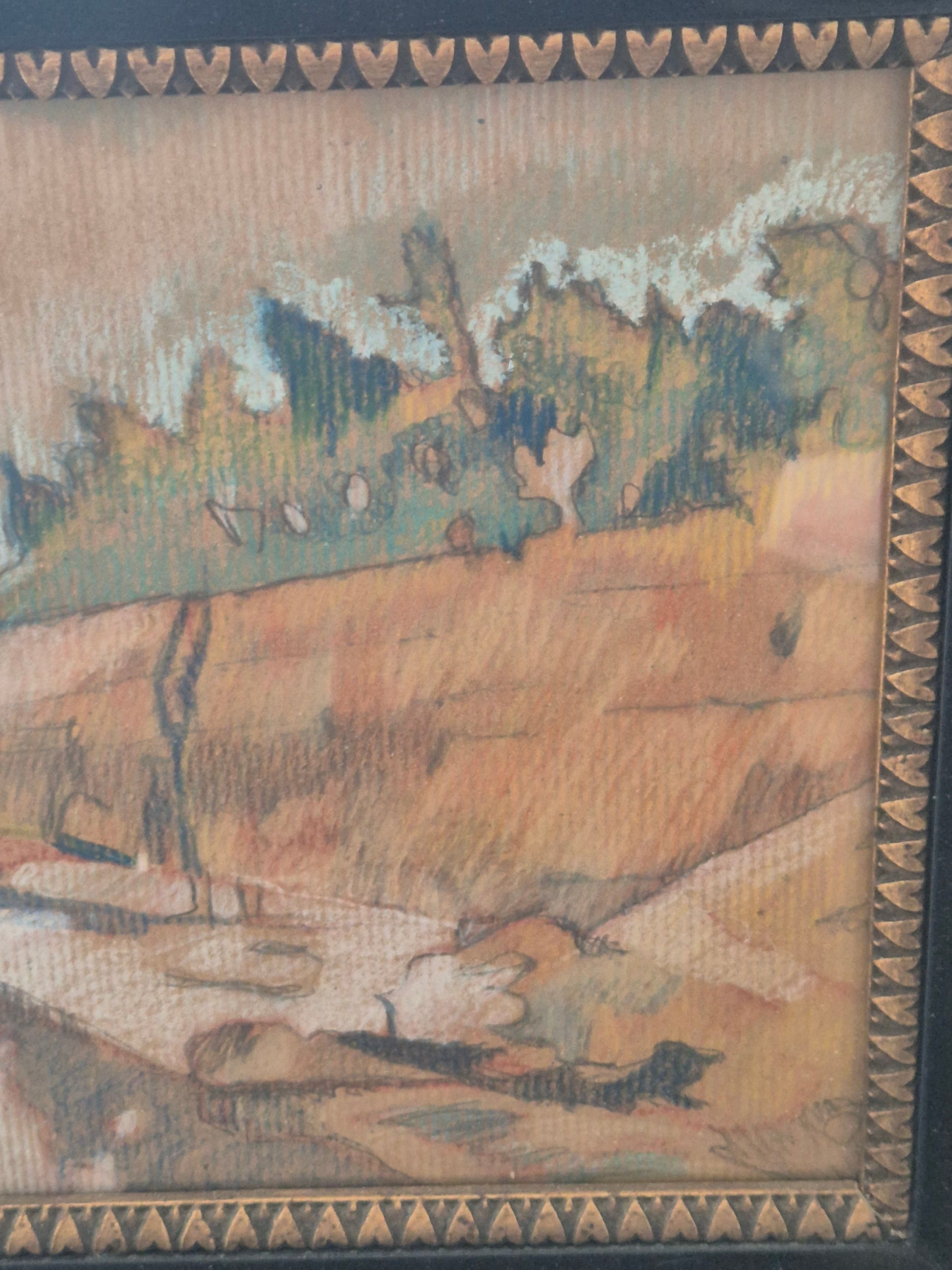 Die lockere, fast skizzenhafte Malweise erinnert an impressionistische Studien aus dem späten 19. bis frühen 20. Jahrhundert. Der leicht vergilbte Hintergrund sowie der antike Rahmen unterstreichen den historischen Charakter des Kunstwerks.