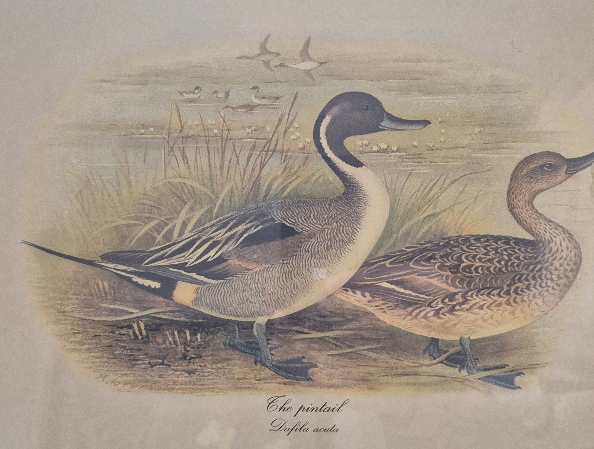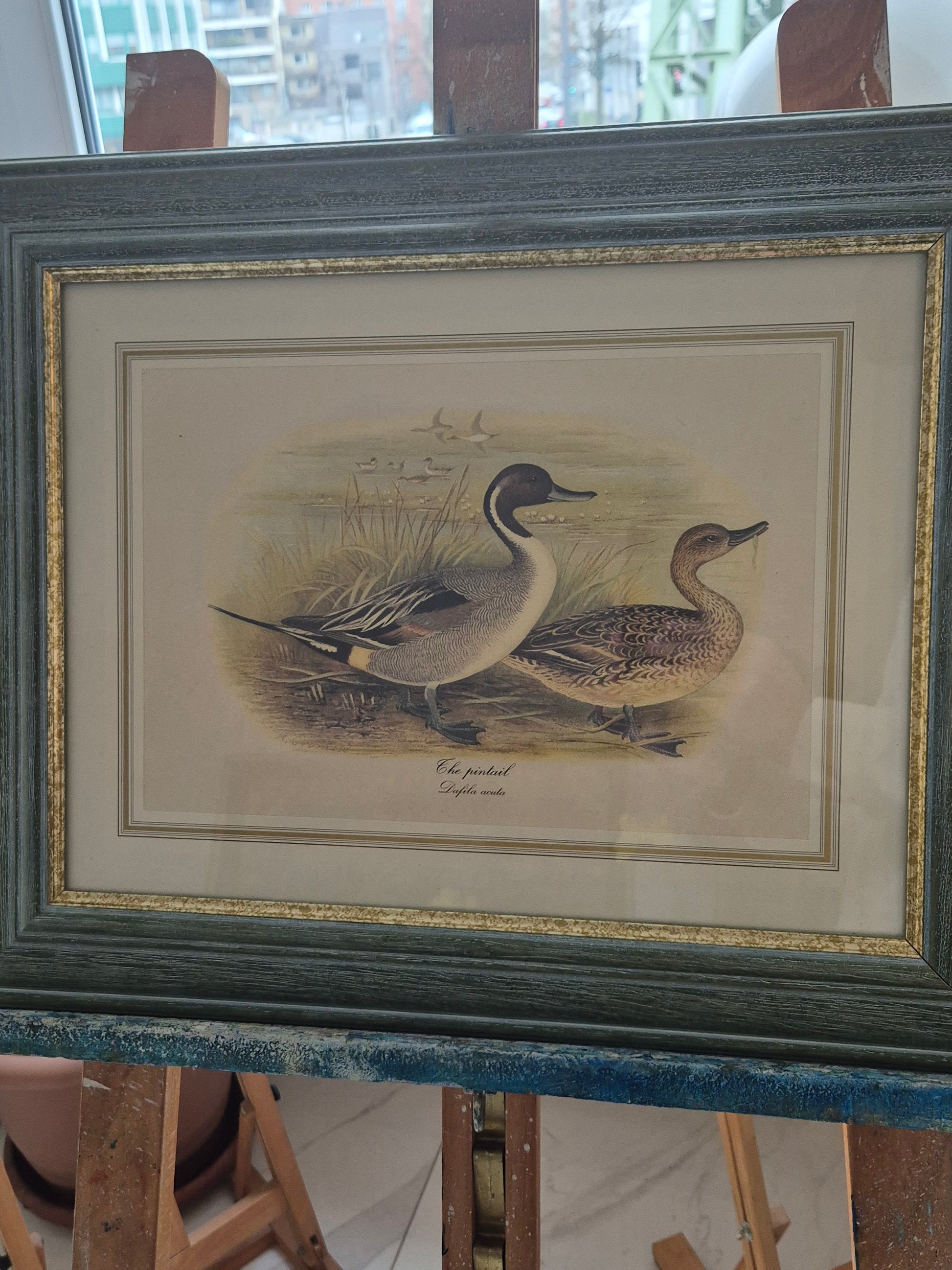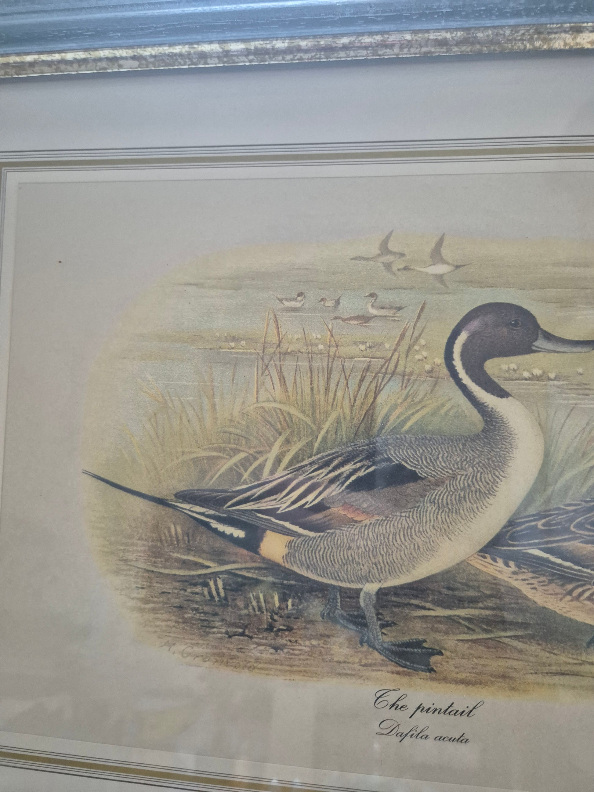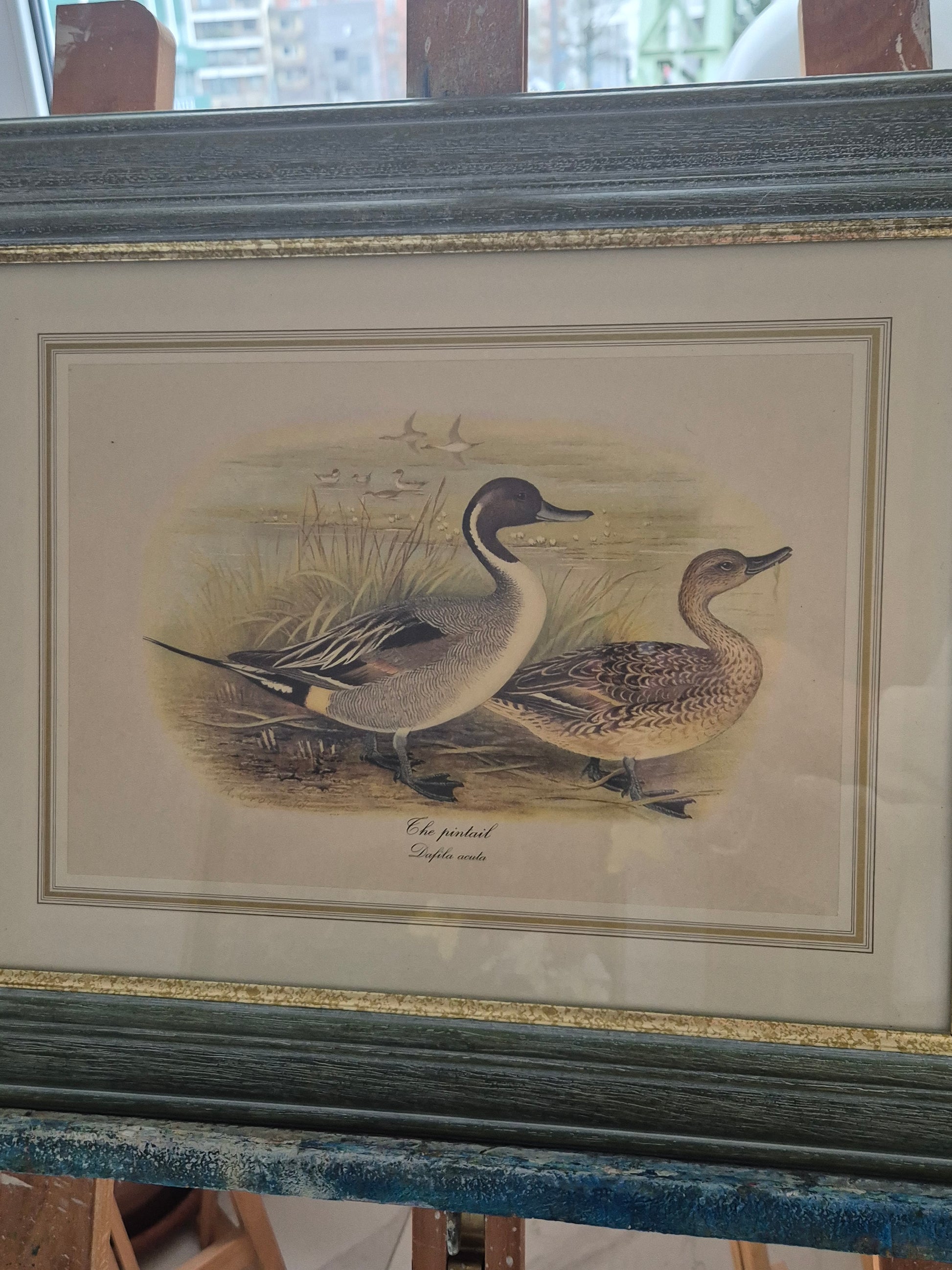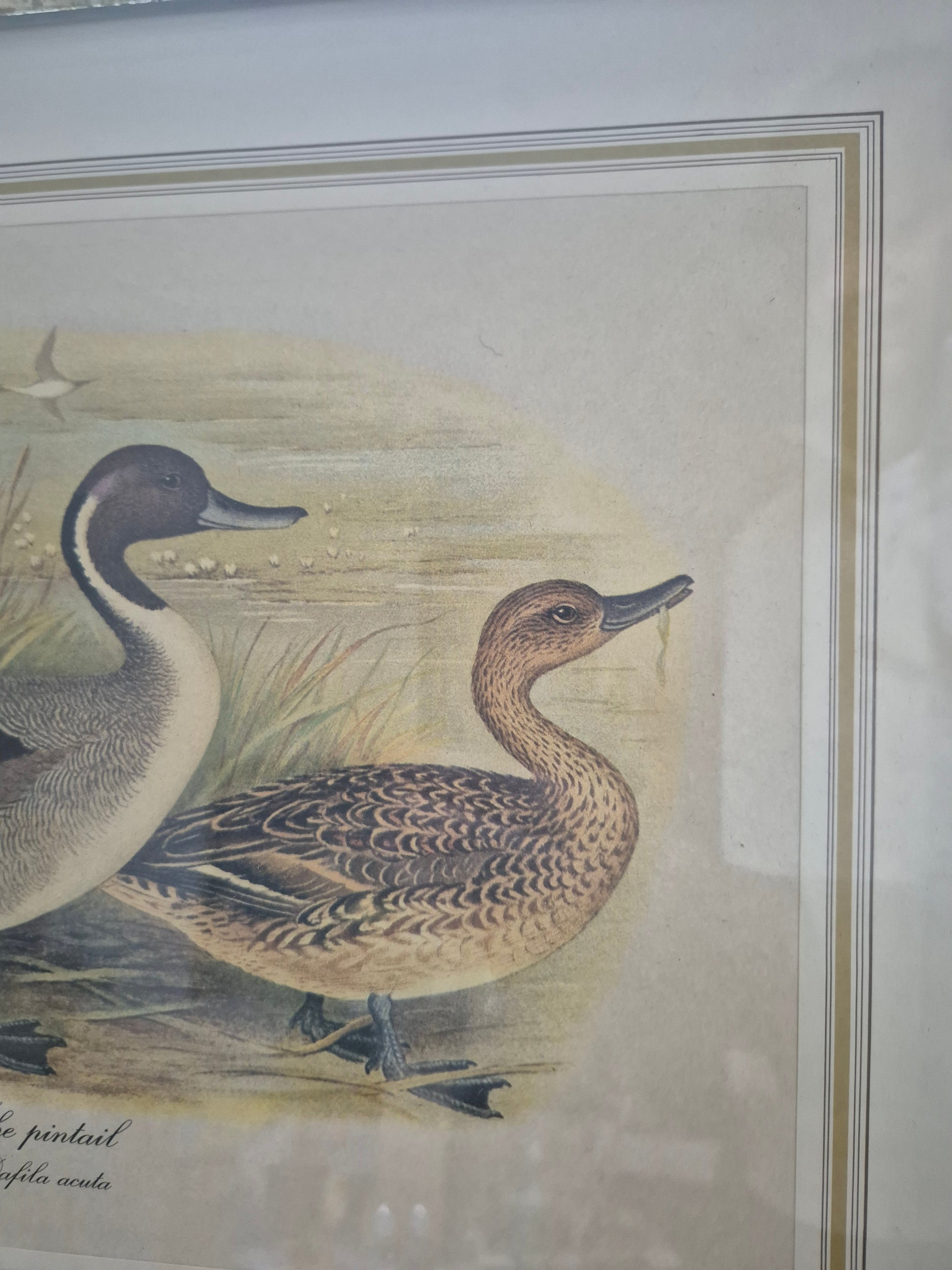Entenpaar Vintage Grafik Lithographie 1980er Gerahmt hinter Glas