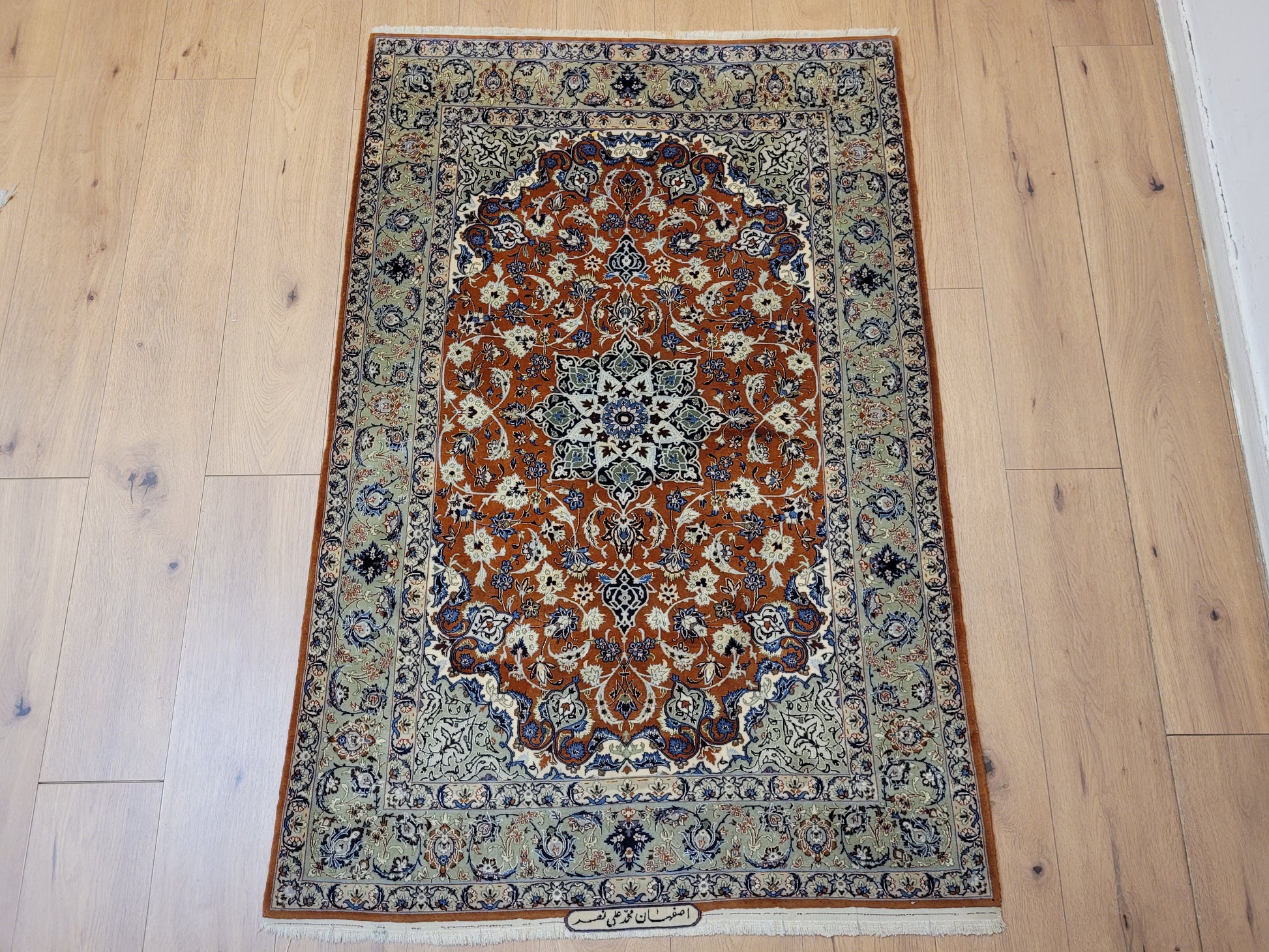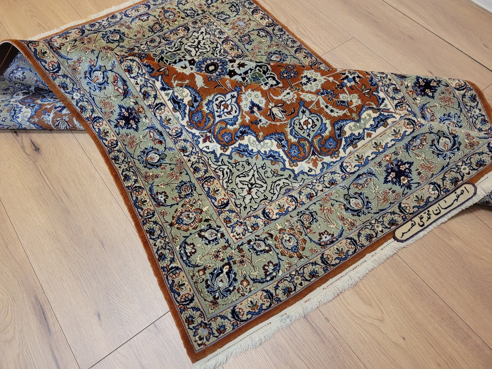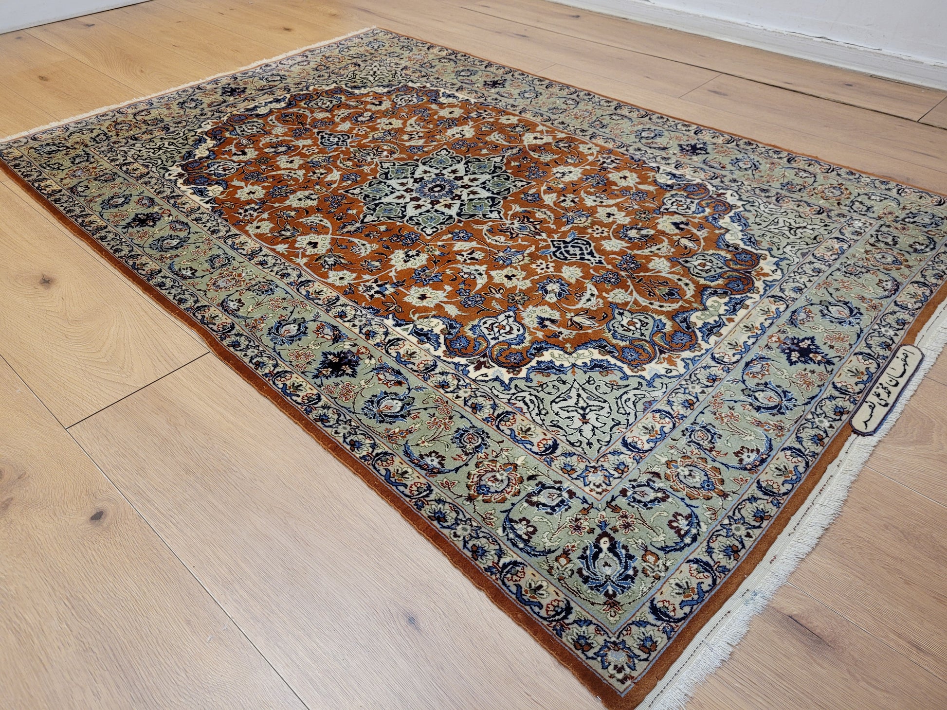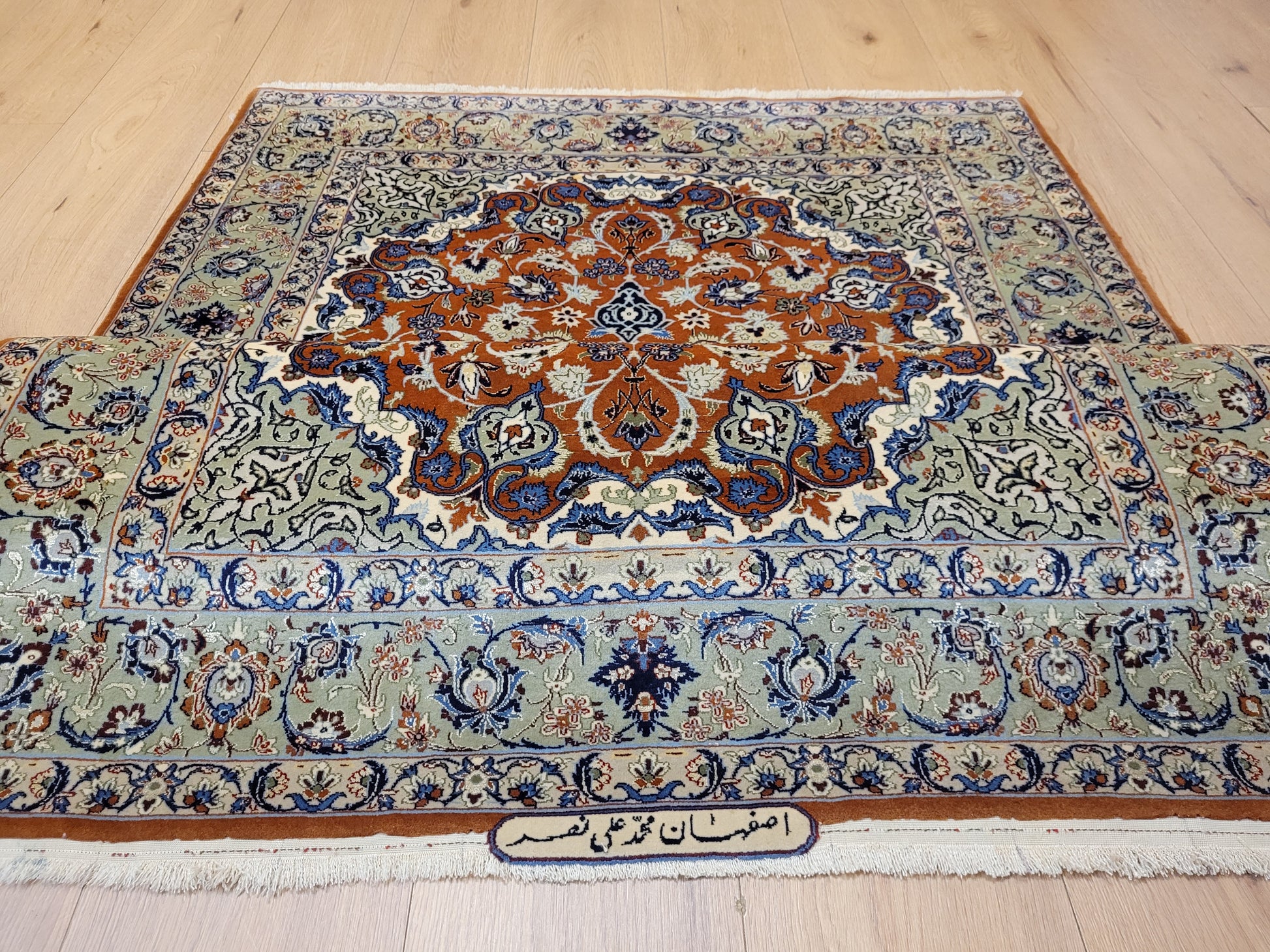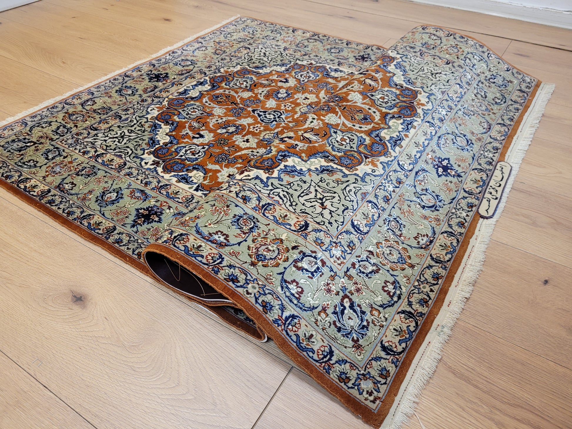 Isfahan Teppich Korkwolle Seide fein handgeknüpft