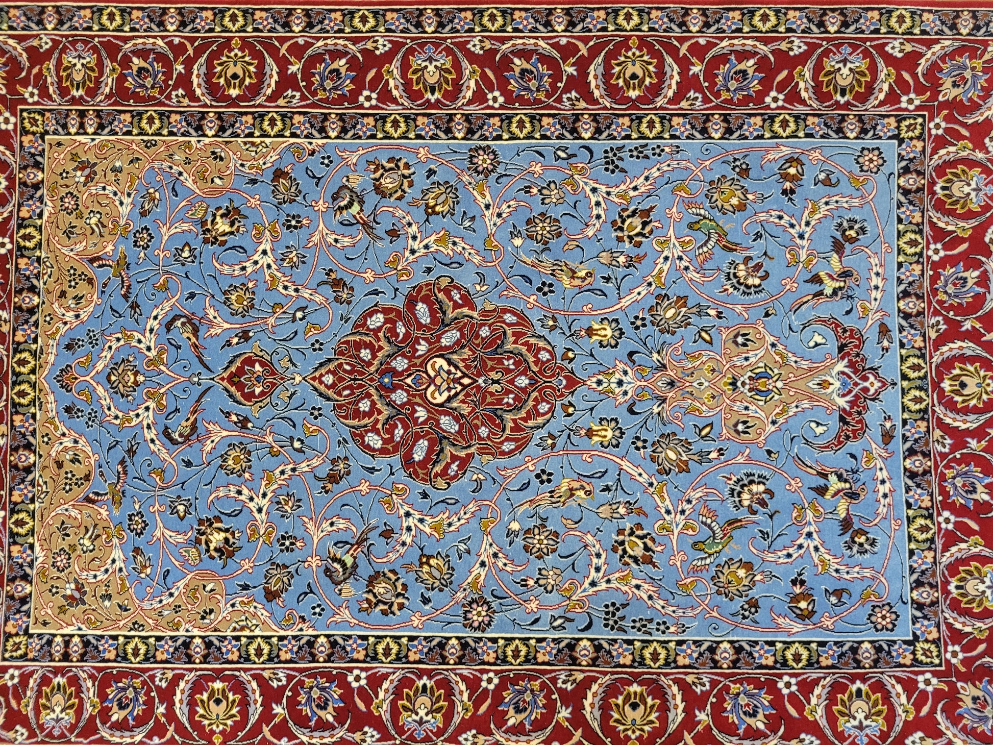 Isfahan Teppich Korkwolle Seide fein handgeknüpft signiert