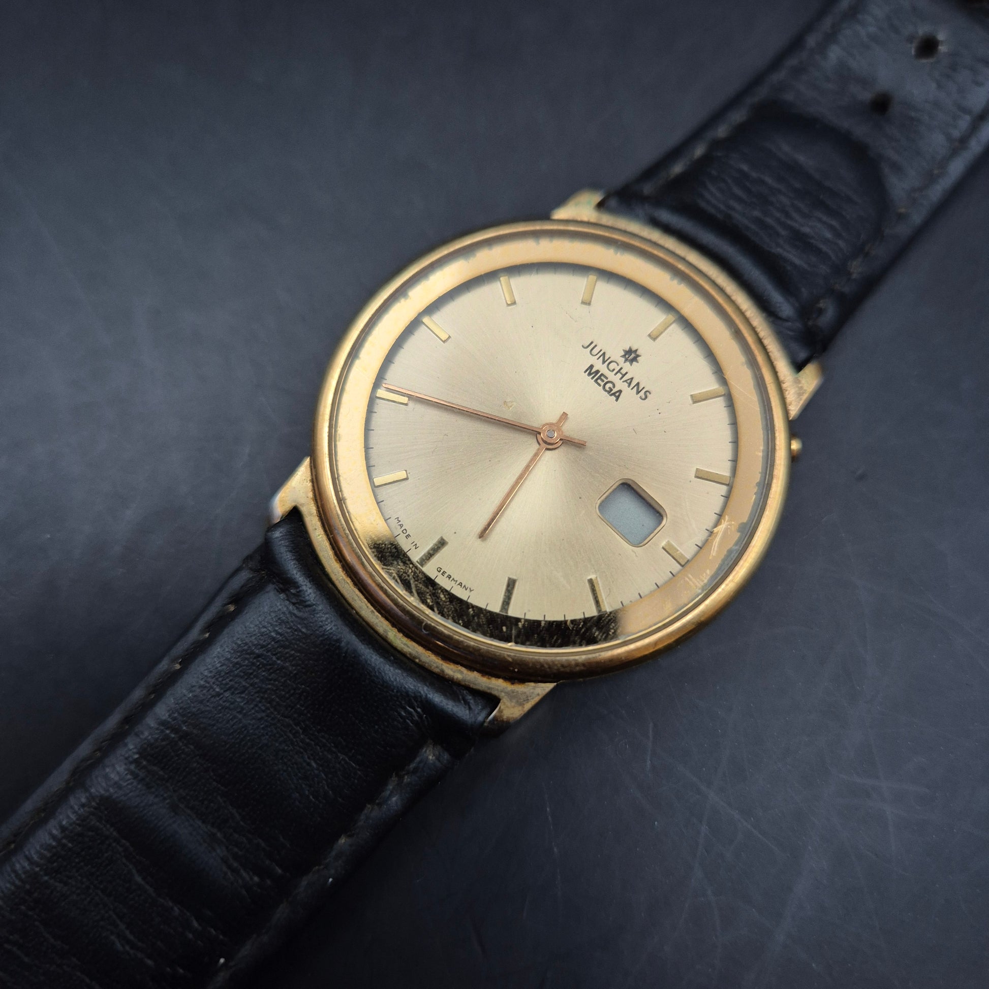 Junghans Mega Herren Uhr – Goldene Funkuhr im klassischen Stil (defekt)