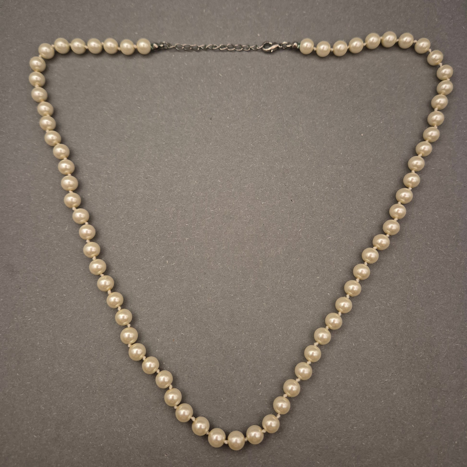 Diese klassische Perlenkette ist das perfekte, zeitlose Accessoire, das in keiner Schmucksammlung fehlen darf. Sie besteht aus gleichmäßig großen, runden Kunstperlen in einem warmen Cremeton, die einen dezenten Glanz aufweisen. Die Kette ist von mittlerer bis längerer Ausführung, wodurch sie elegant über Oberteilen getragen werden kann. Der schlichte, silberfarbene Verschluss hält das klassische Design im Vordergrund. Ein vielseitiges Stück, das sowohl für elegante Anlässe als auch als dezenter Akzent im Business-Alltag geeignet ist. Details: