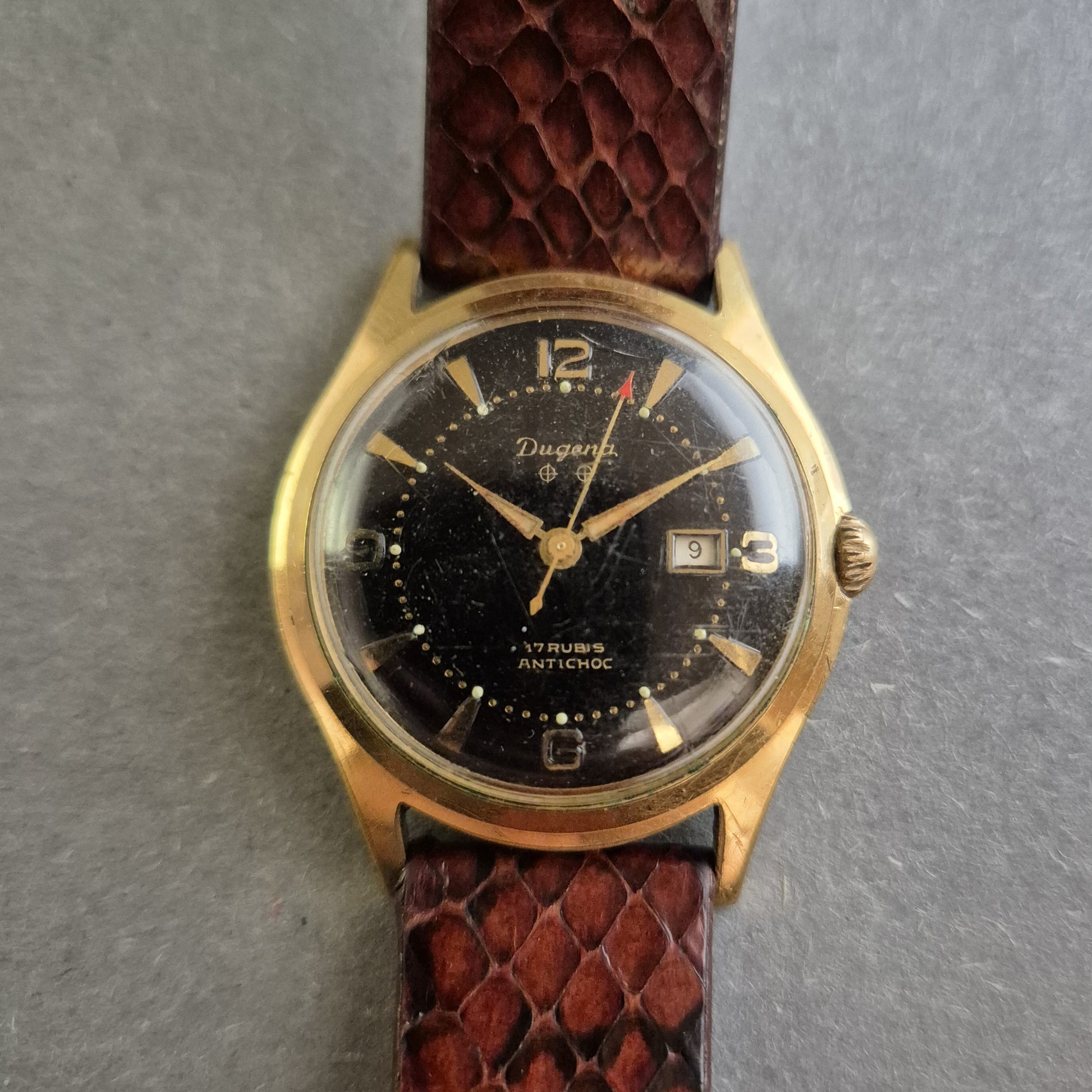 Dugena Uhr Armbanduhr Vintage-Charme mit 17 Rubinen u. Datumsanzeige