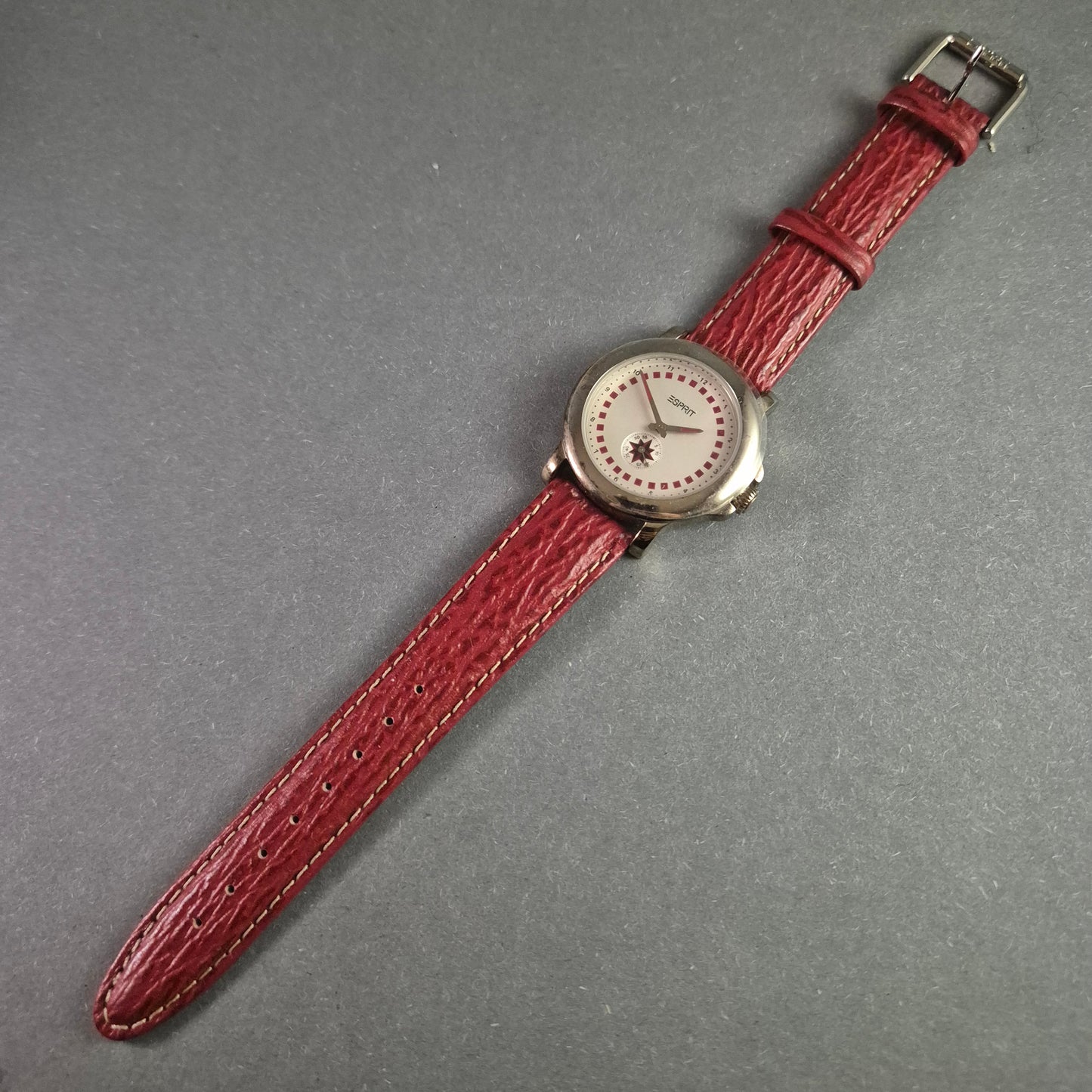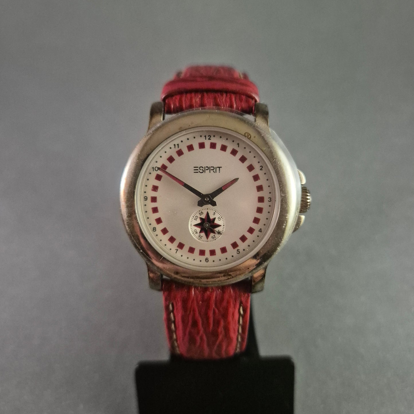 Diese Esprit Damenarmbanduhr besticht durch ihr einzigartiges Design mit einem roten Zifferblattdetail und passendem Lederarmband. Das Gehäuse aus Edelstahl in Kombination mit dem auffälligen roten Lederarmband macht diese Uhr zu einem stilvollen Begleiter. Perfekt für Damen, die Wert auf Individualität und Eleganz legen.