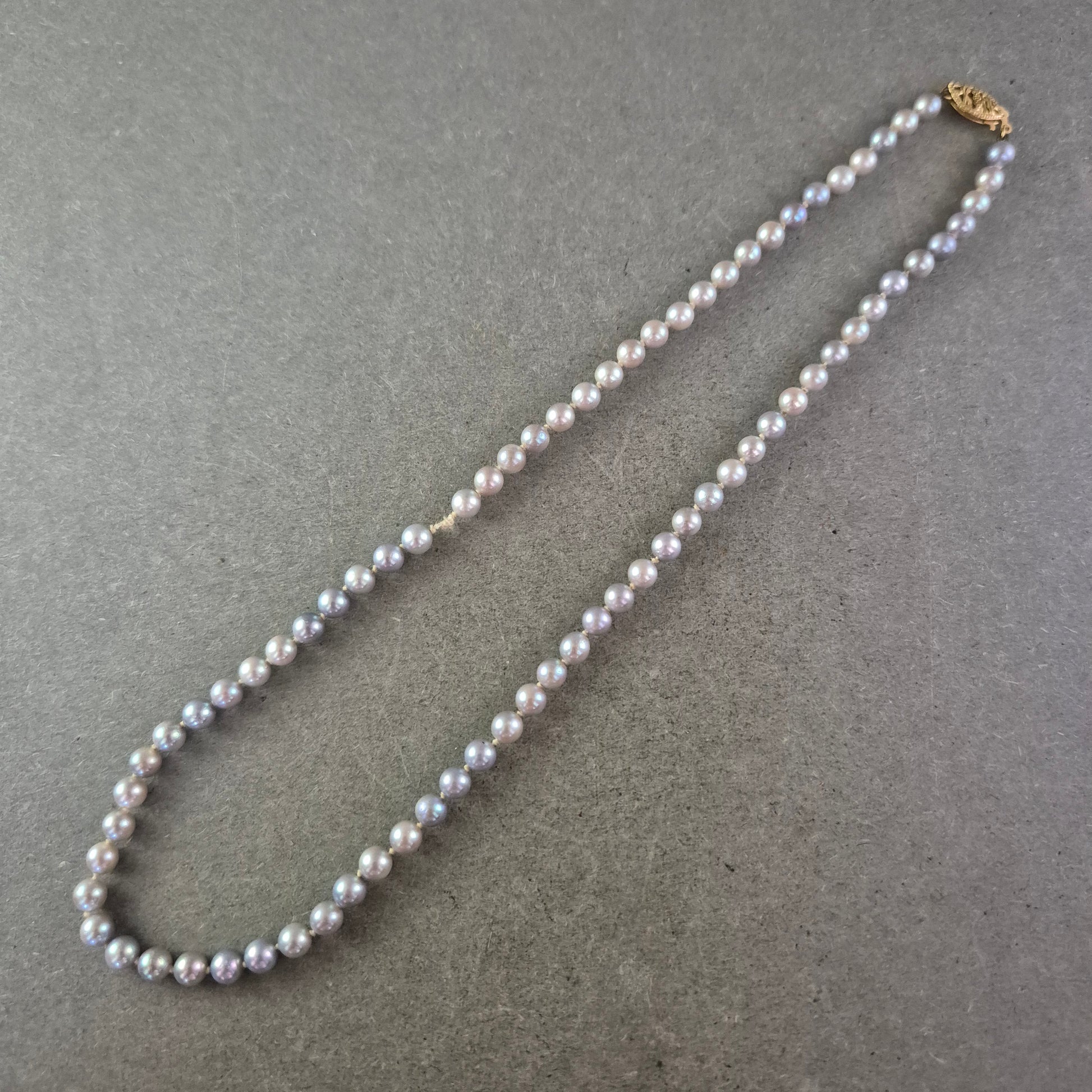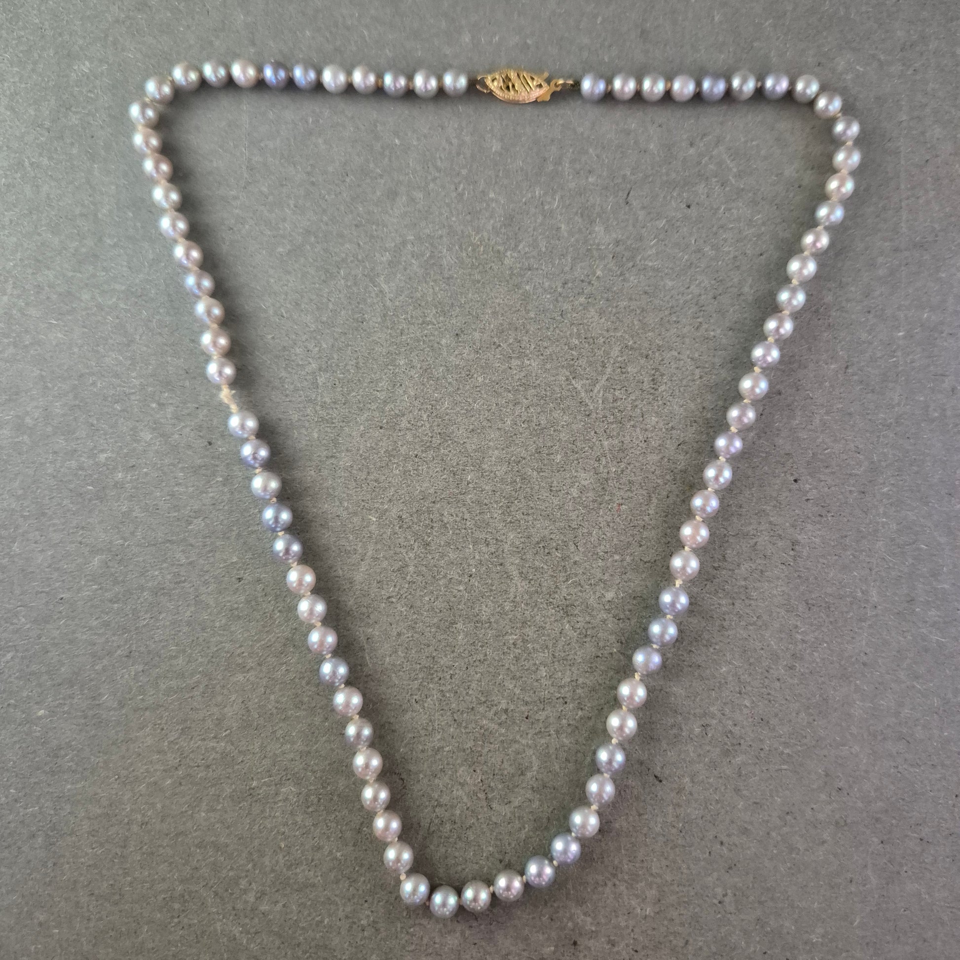 Klassische Perlen Kette mit Goldverschluss – Eleganz in Grau