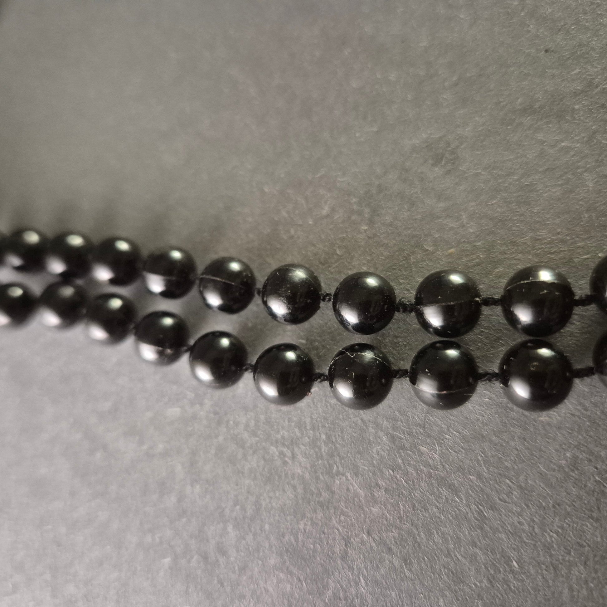 • Glänzende schwarze Perlen für einen klassischen Look