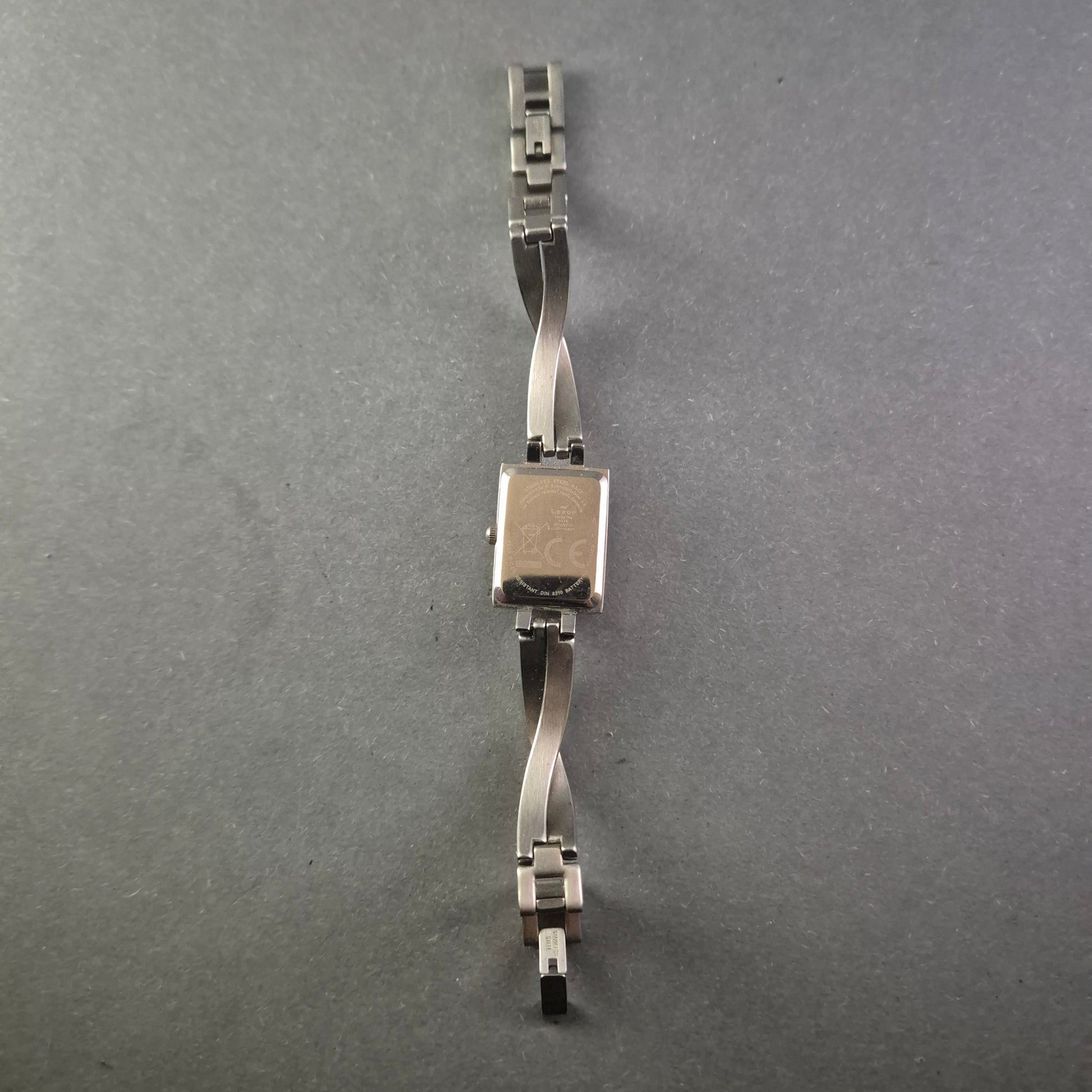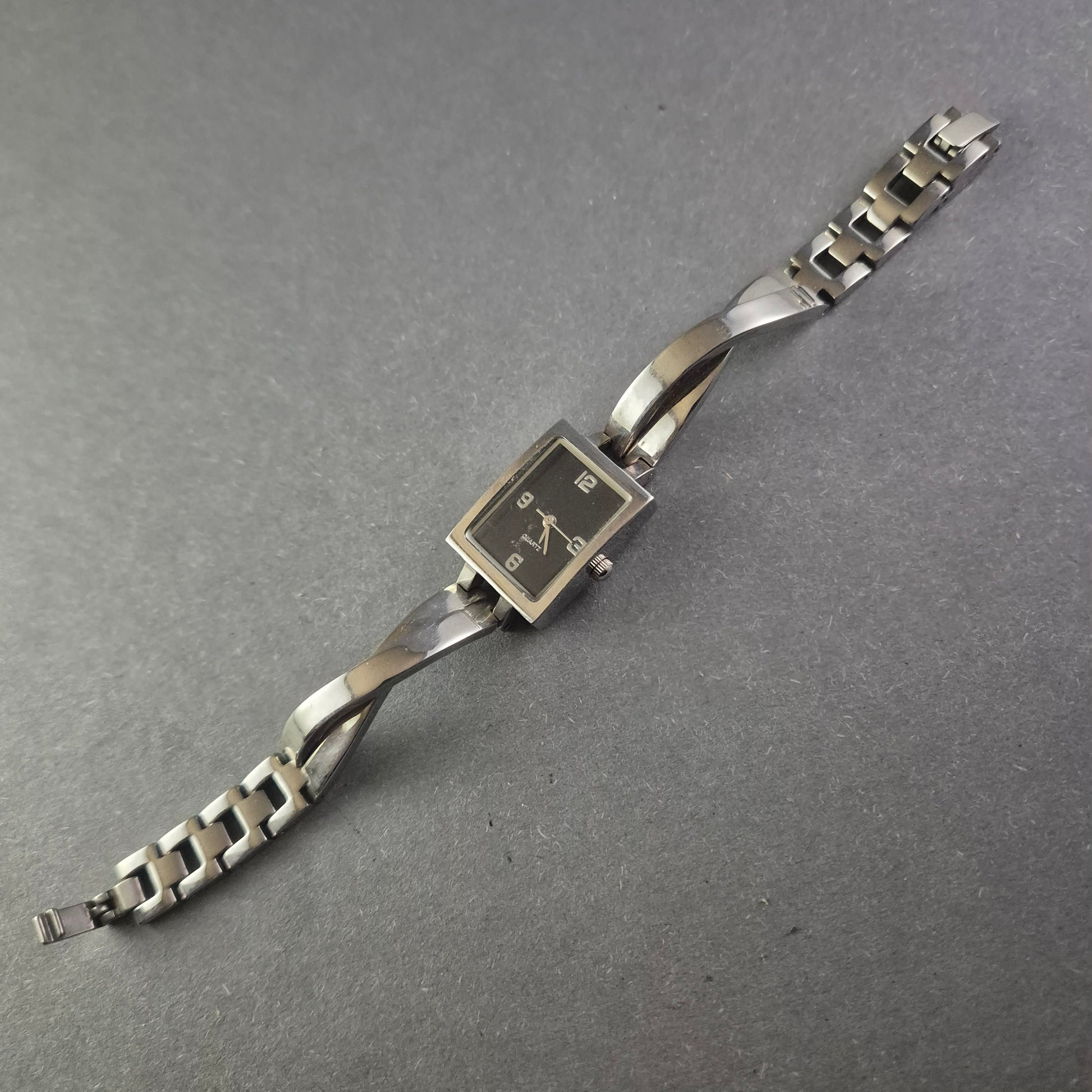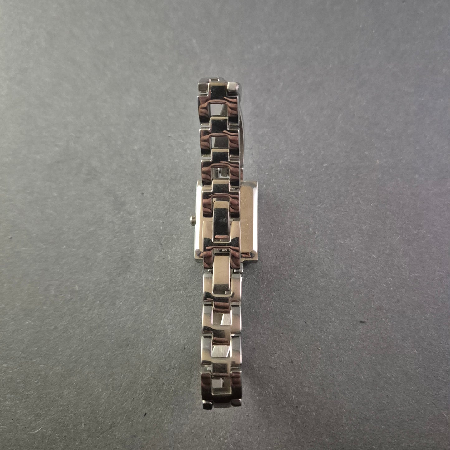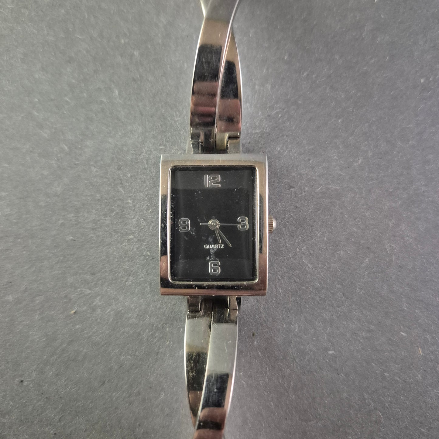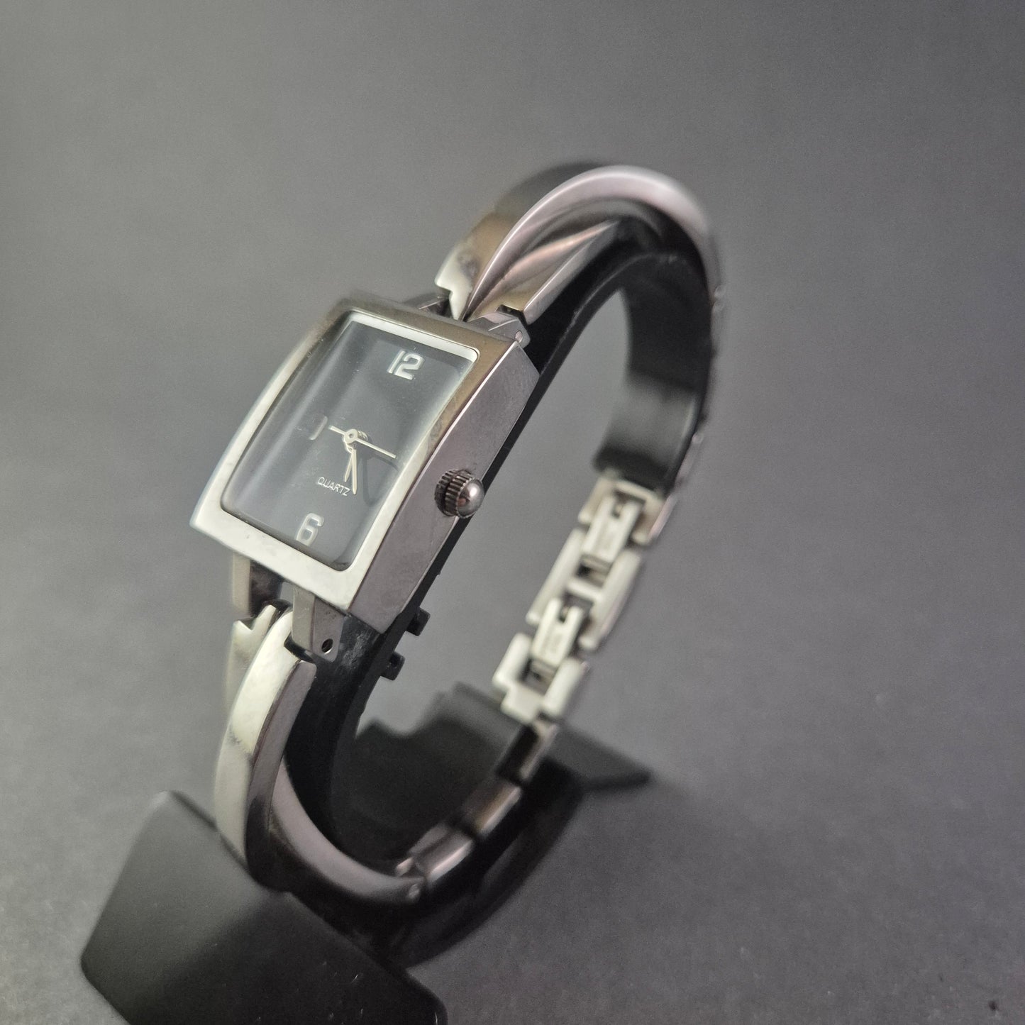 Diese elegante Damenarmbanduhr beeindruckt durch ihr schlankes Design und ihr rechteckiges Gehäuse. Das schwarze Zifferblatt mit minimalistischen Zahlen wird durch ein glänzendes Metallarmband ergänzt, das für einen stilvollen Look sorgt. Ideal für den täglichen Gebrauch oder als dezentes Accessoire für besondere Anlässe.