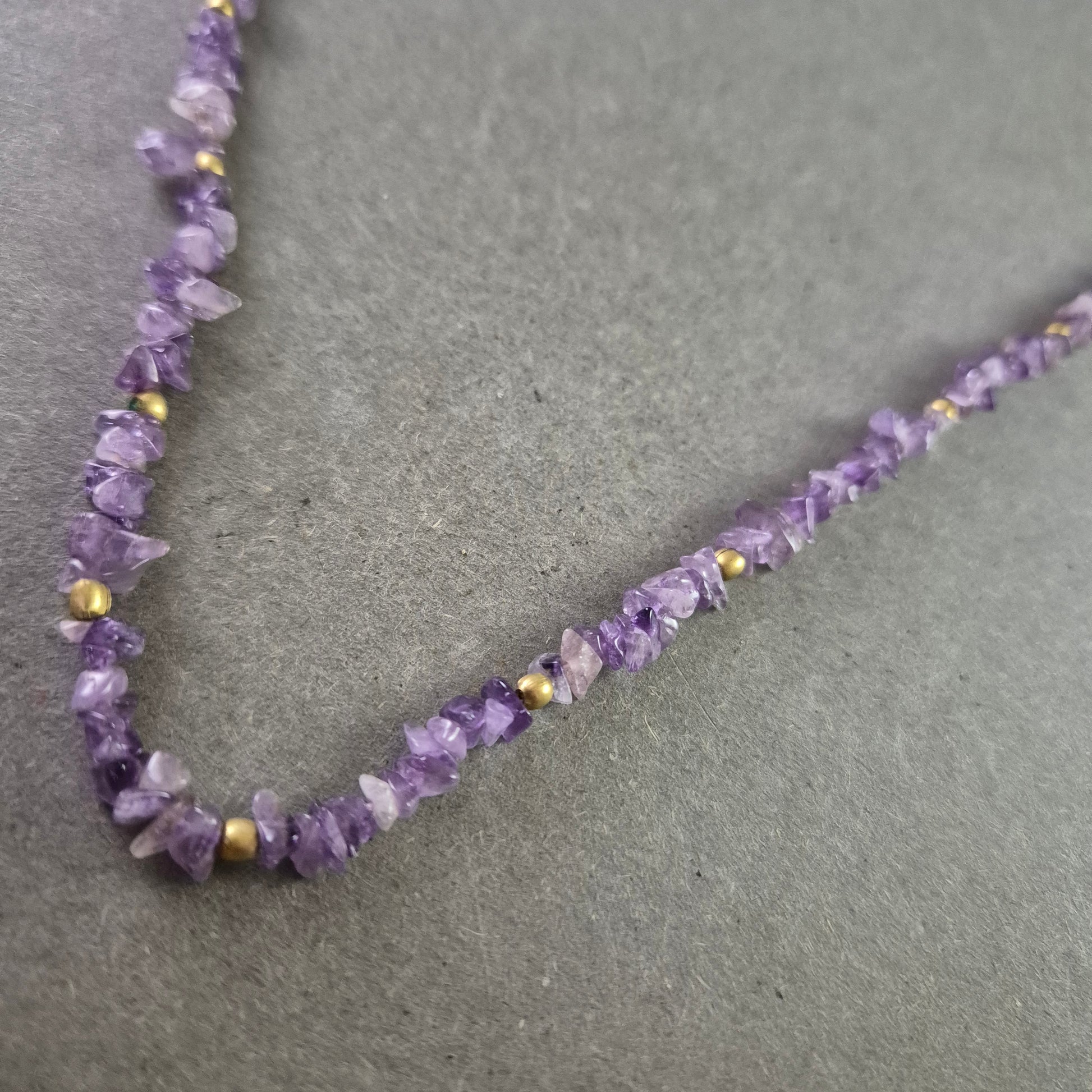 • Material: Amethyst (Naturstein-Chips), goldfarbene Metallperlen