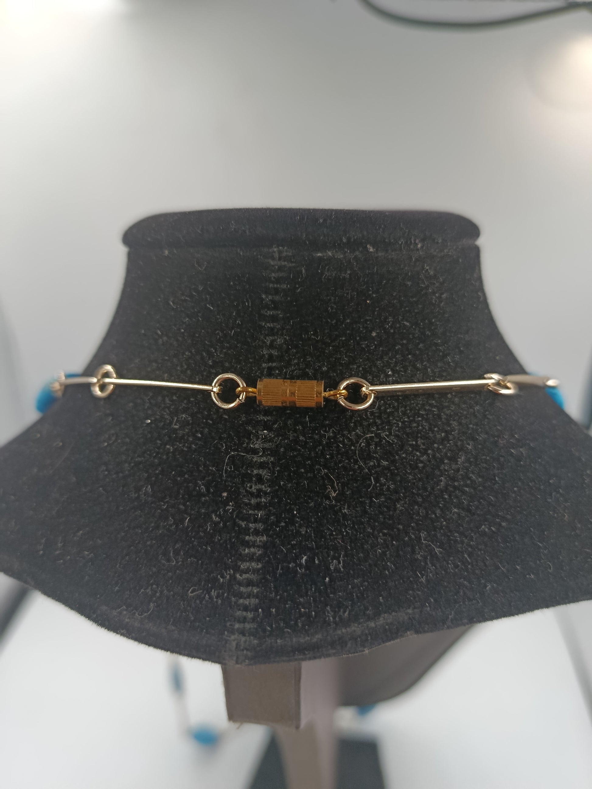 Langes Collier mit türkisfarbenen Steinen und goldfarbenen Gliedern