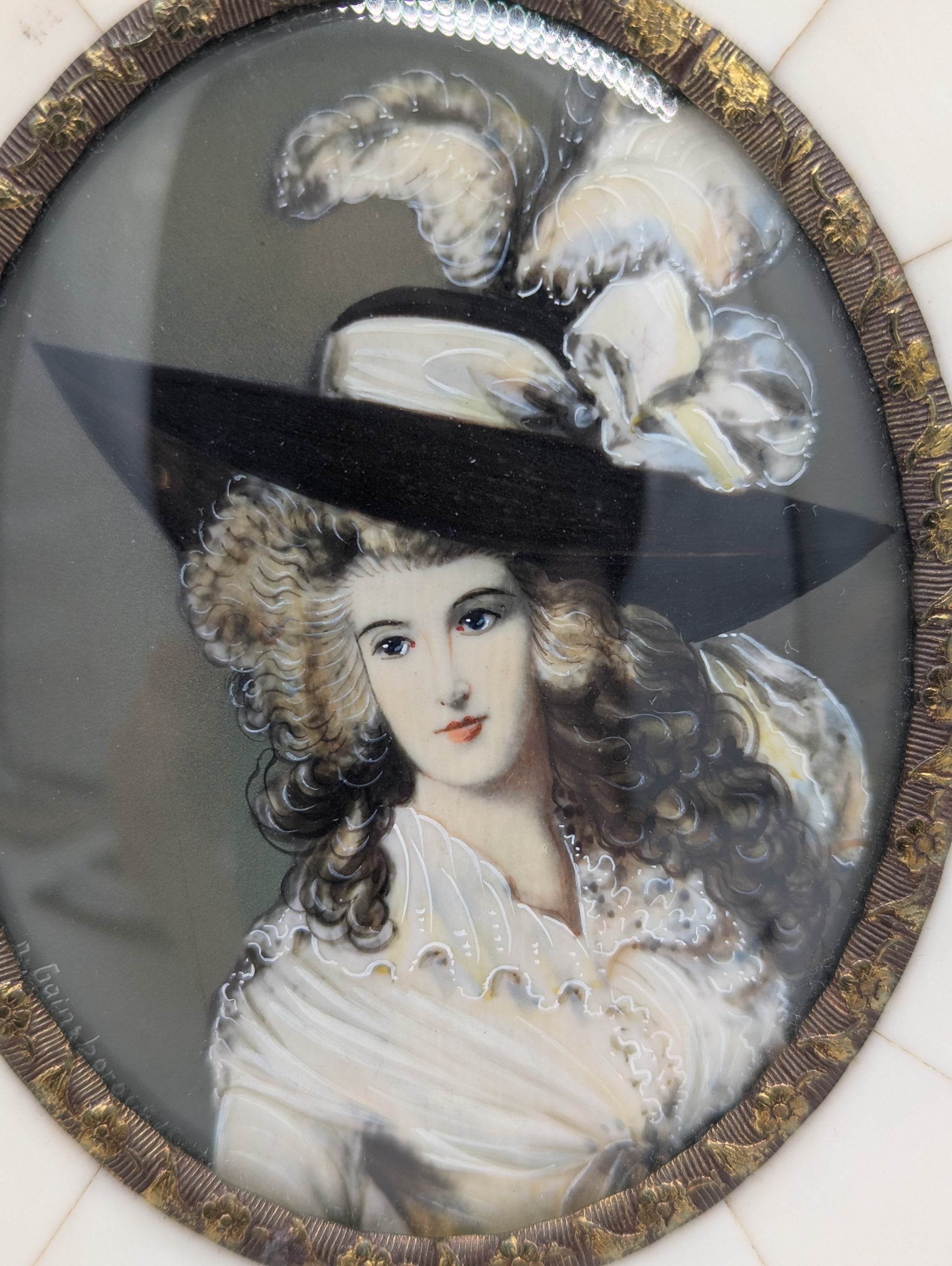 Lupenmalerei Herzogin von Devonshire Porträt Miniatur im ovalen Rahmen