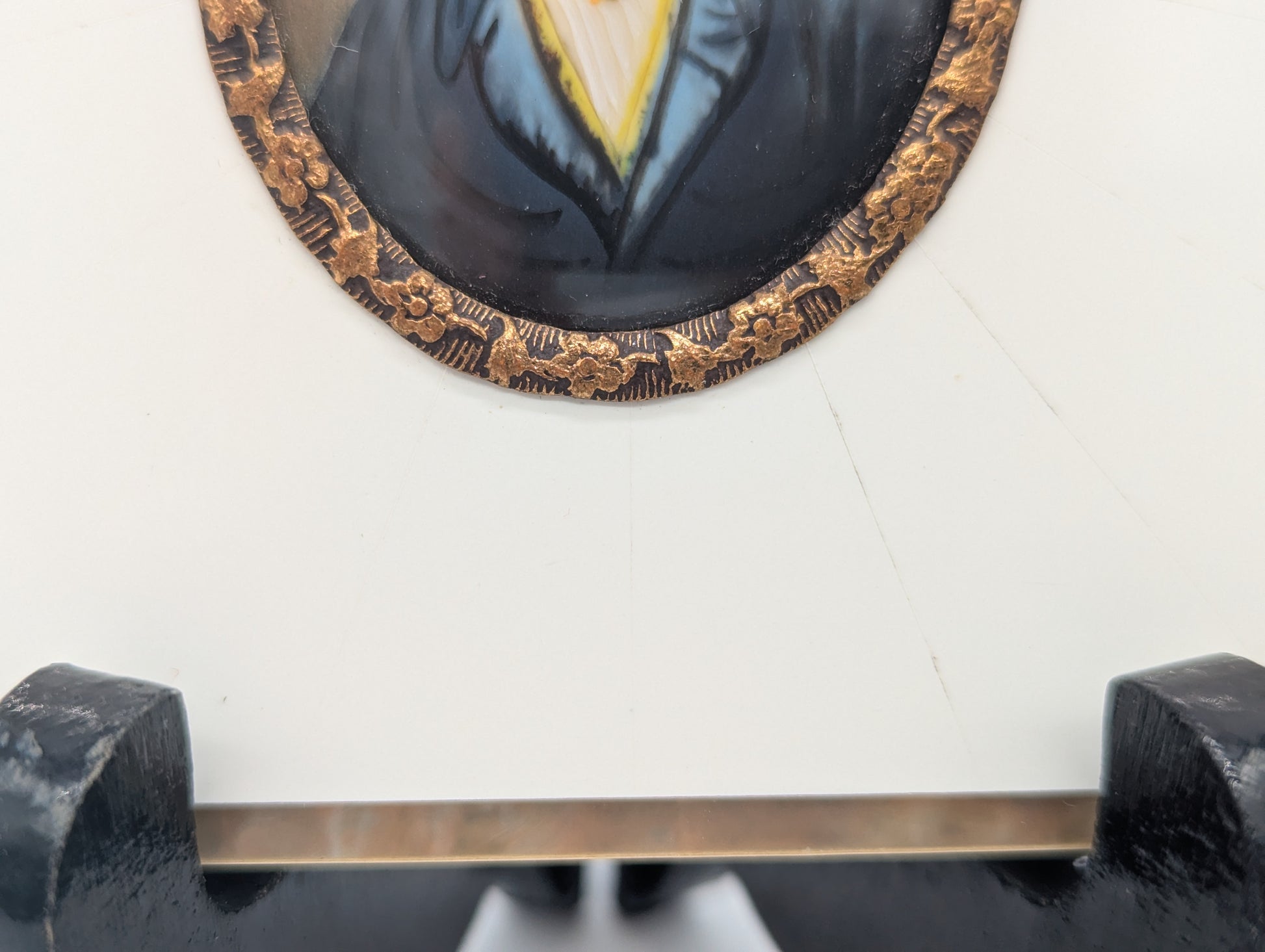 Die Miniatur besticht durch ihre präzise Ausführung und detailreiche Gestaltung. Der rechteckige Rahmen mit ovaler Einfassung unterstreicht die zeitlose Eleganz des Bildes und macht es zu einem besonderen Sammlerstück für Liebhaber klassischer Porträtkunst.