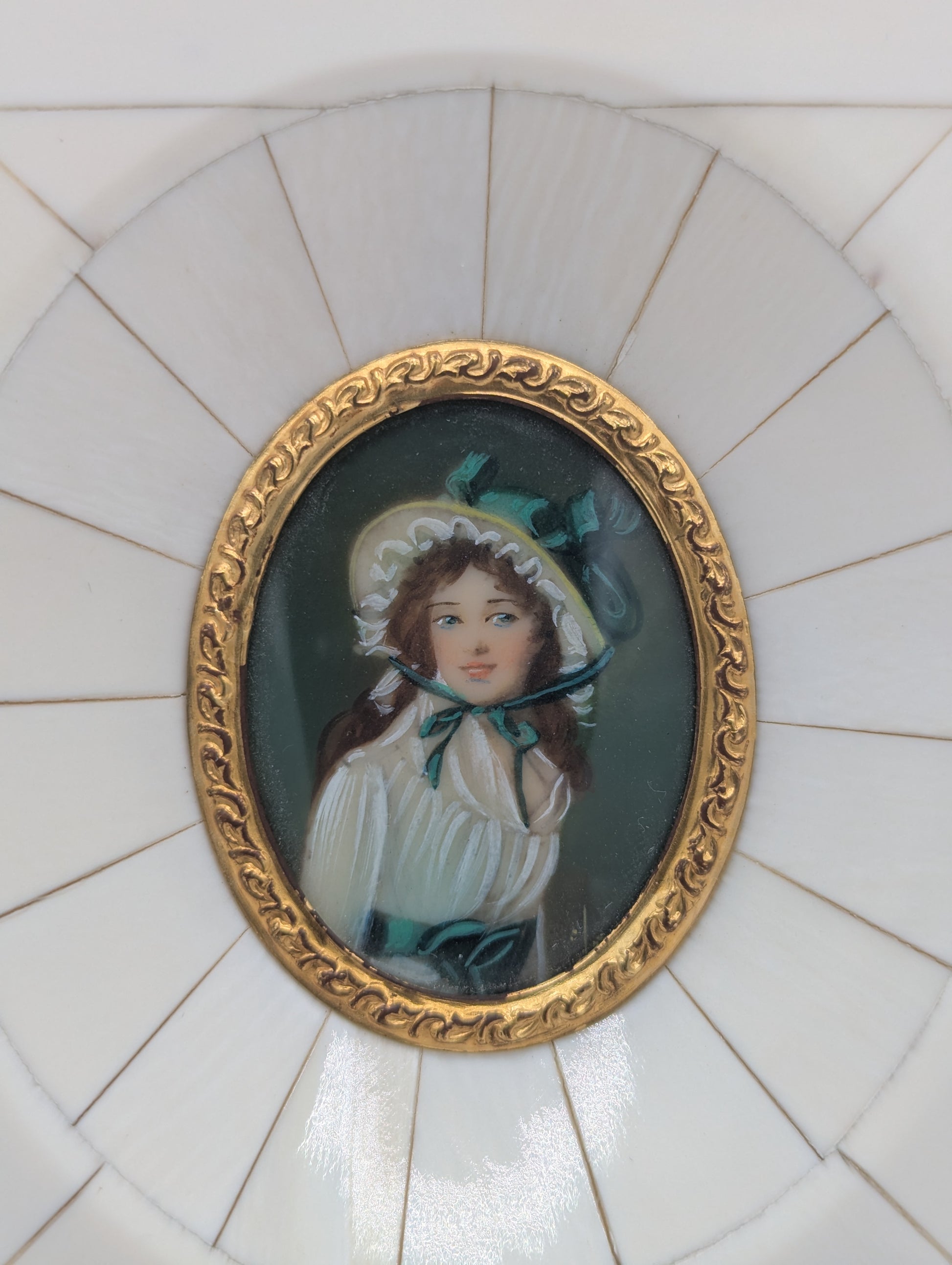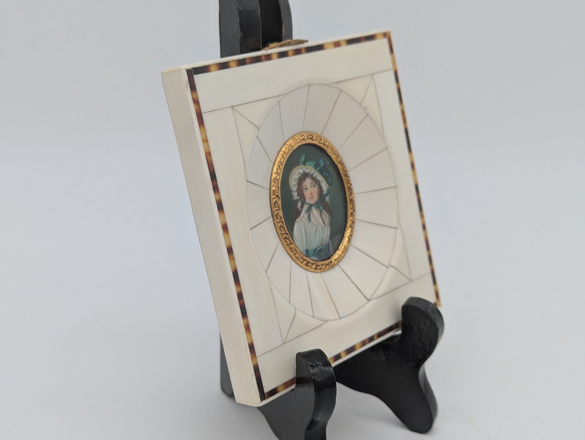 Lupenmalerei Madame Seriziat feine Porträt Miniatur im Rahmen Bild