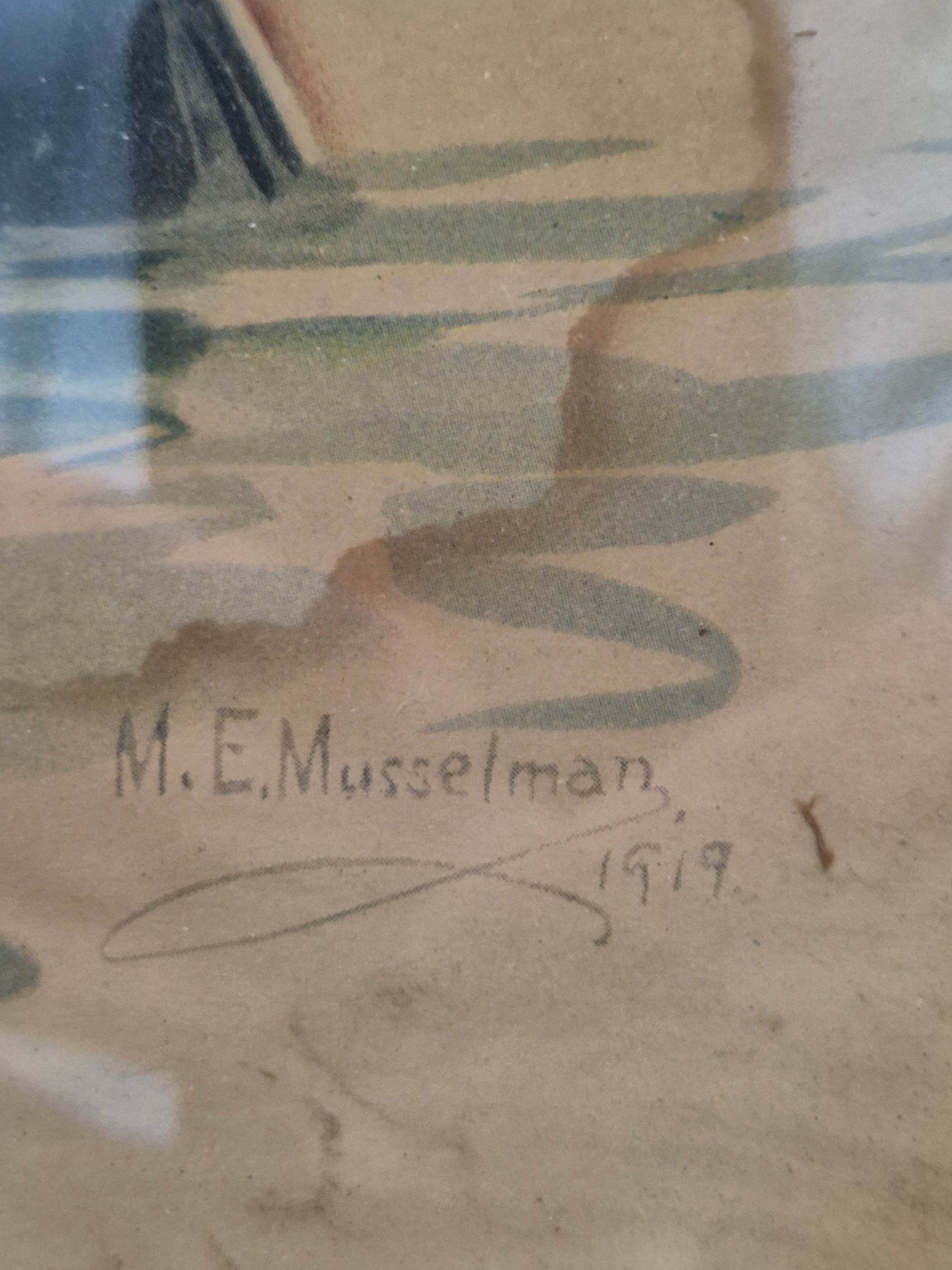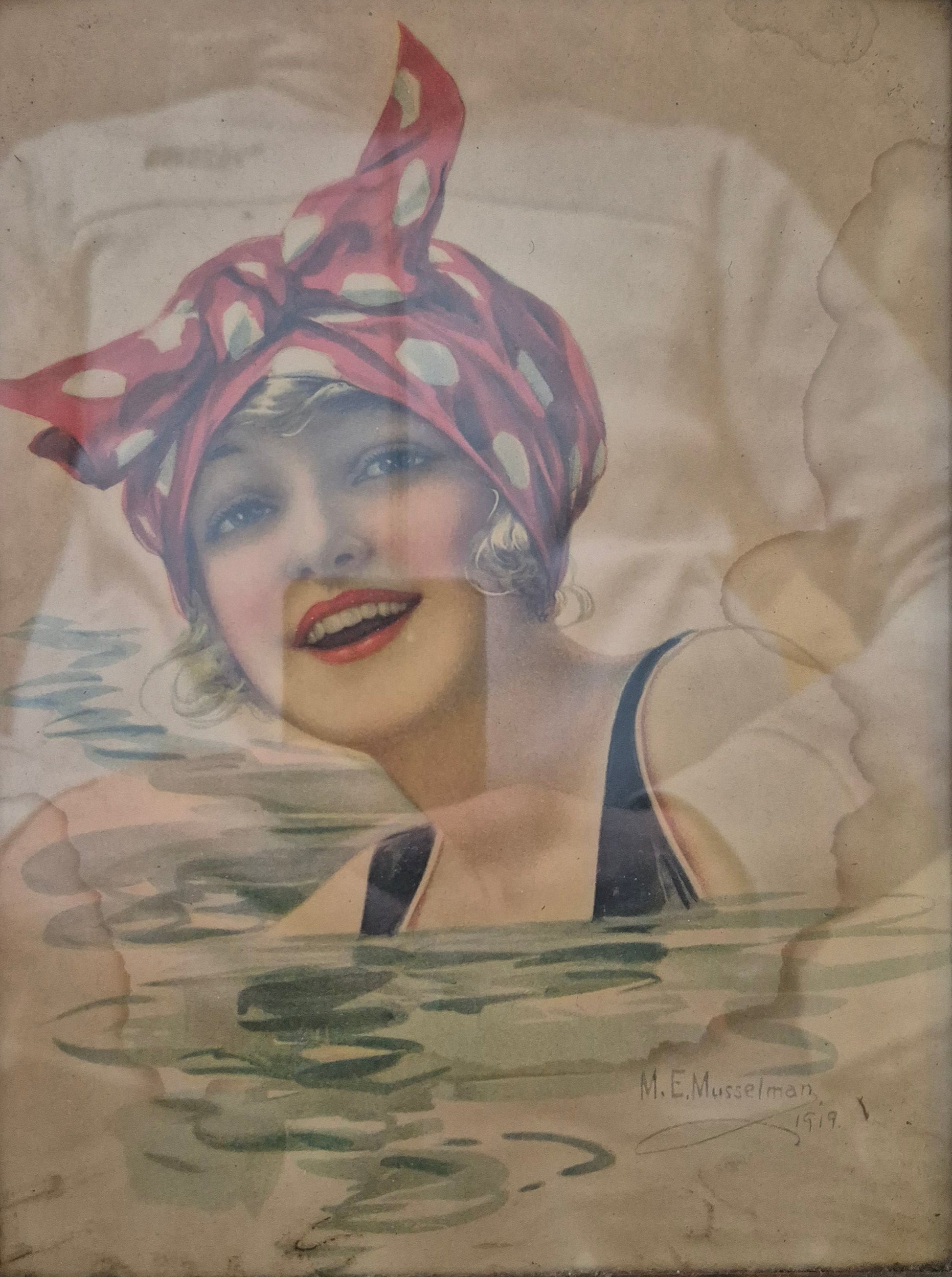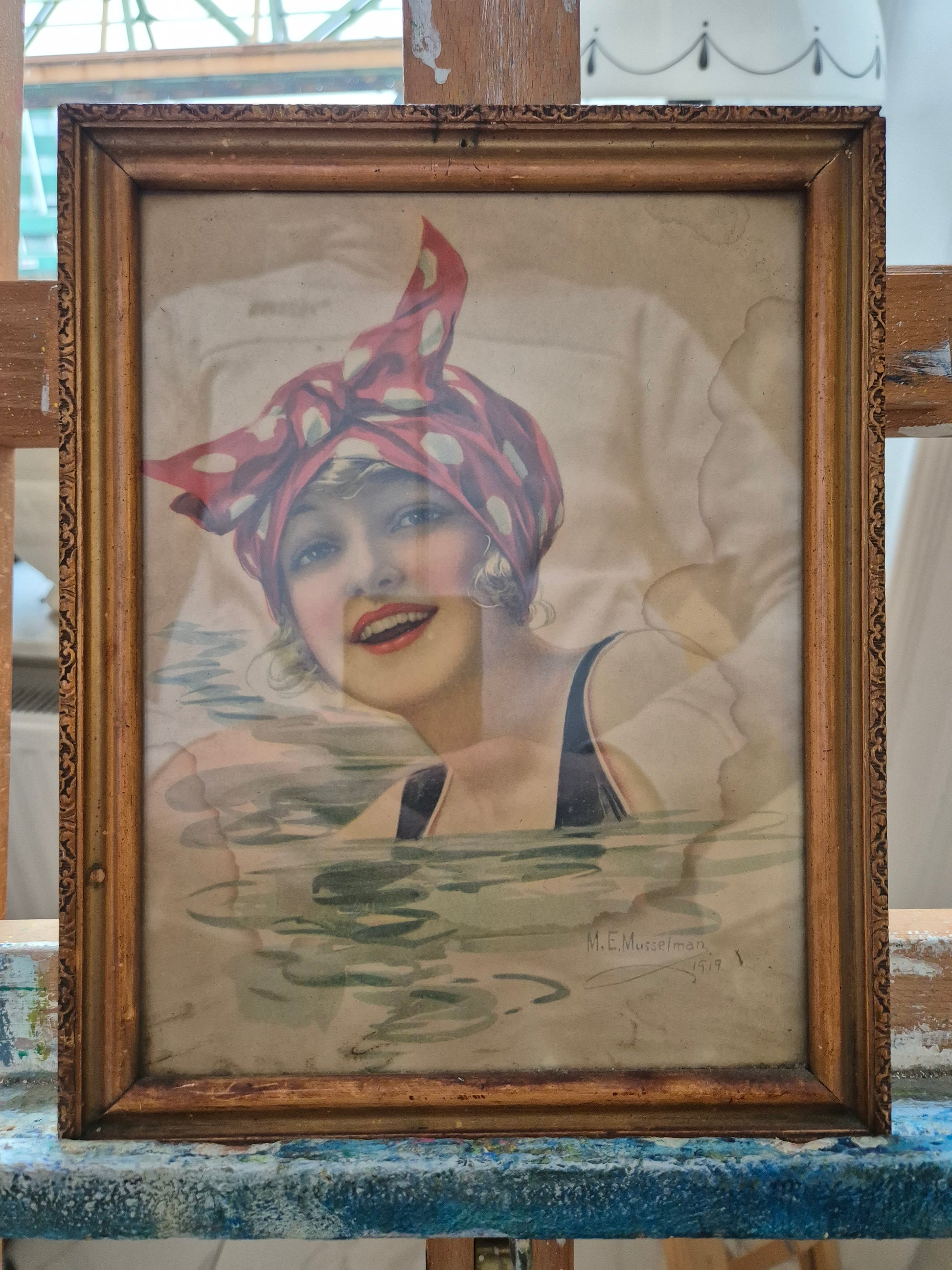 M.E. Musellman (XX) Grafik Lithographie Junges Mädel Gerahmt