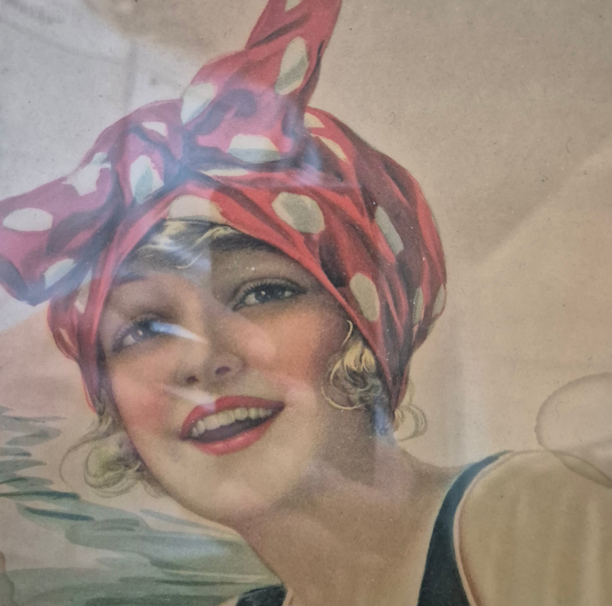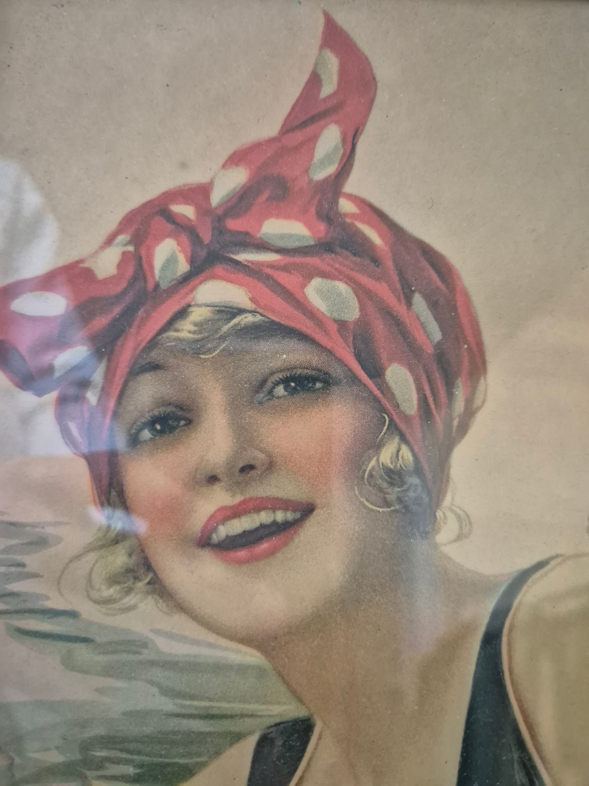 Motiv: Jüngere Dame mit rotem Schleier auf dem Kopf