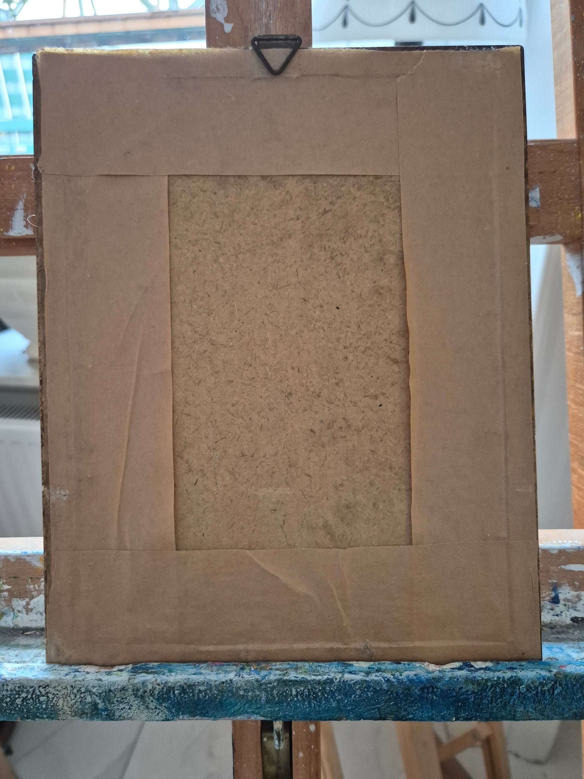 Dargestellt ist eine junge Frau mit einem auffälligen roten Schleier auf dem Kopf – ein Werk mit besonderem Ausdruck, das klassische Porträtkunst mit collageartiger Technik verbindet. Die Komposition zeugt von sicherem Gespür für Form, Farbe und Materialeinsatz.