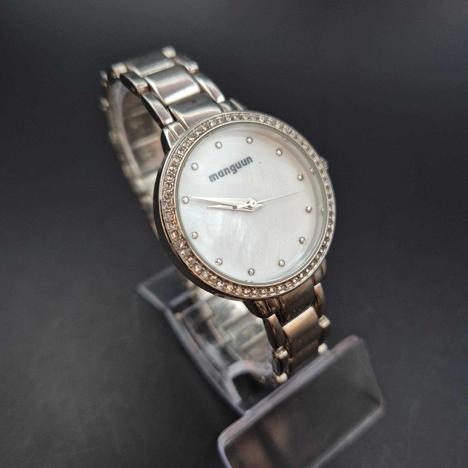 Manguun Damen Uhr – Quarz, Perlmuttzifferblatt mit Strass-Besatz