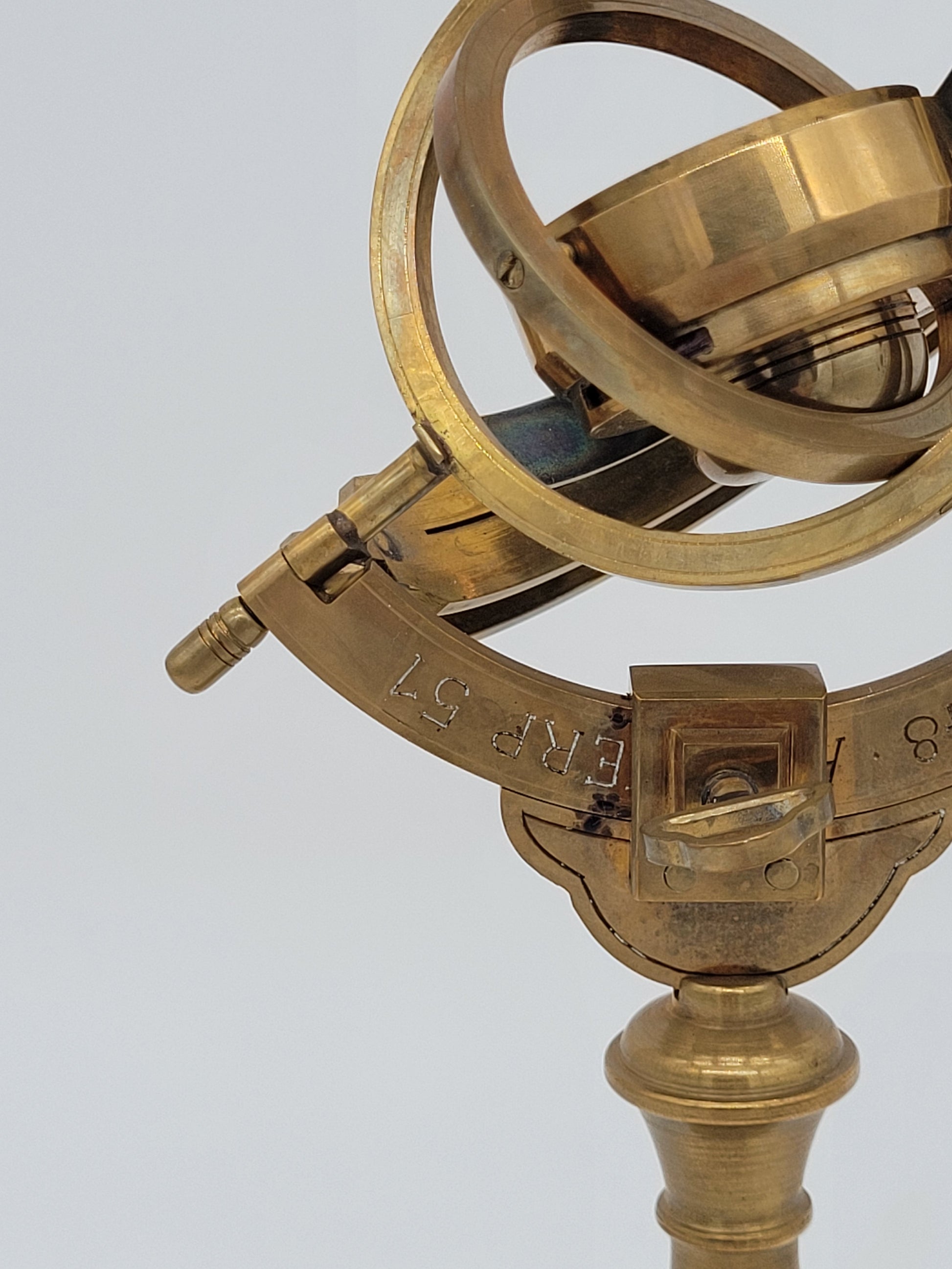Messing Armillarsphäre Weltmaschine mit Kompass PG FACIBAT 1692 Vintage