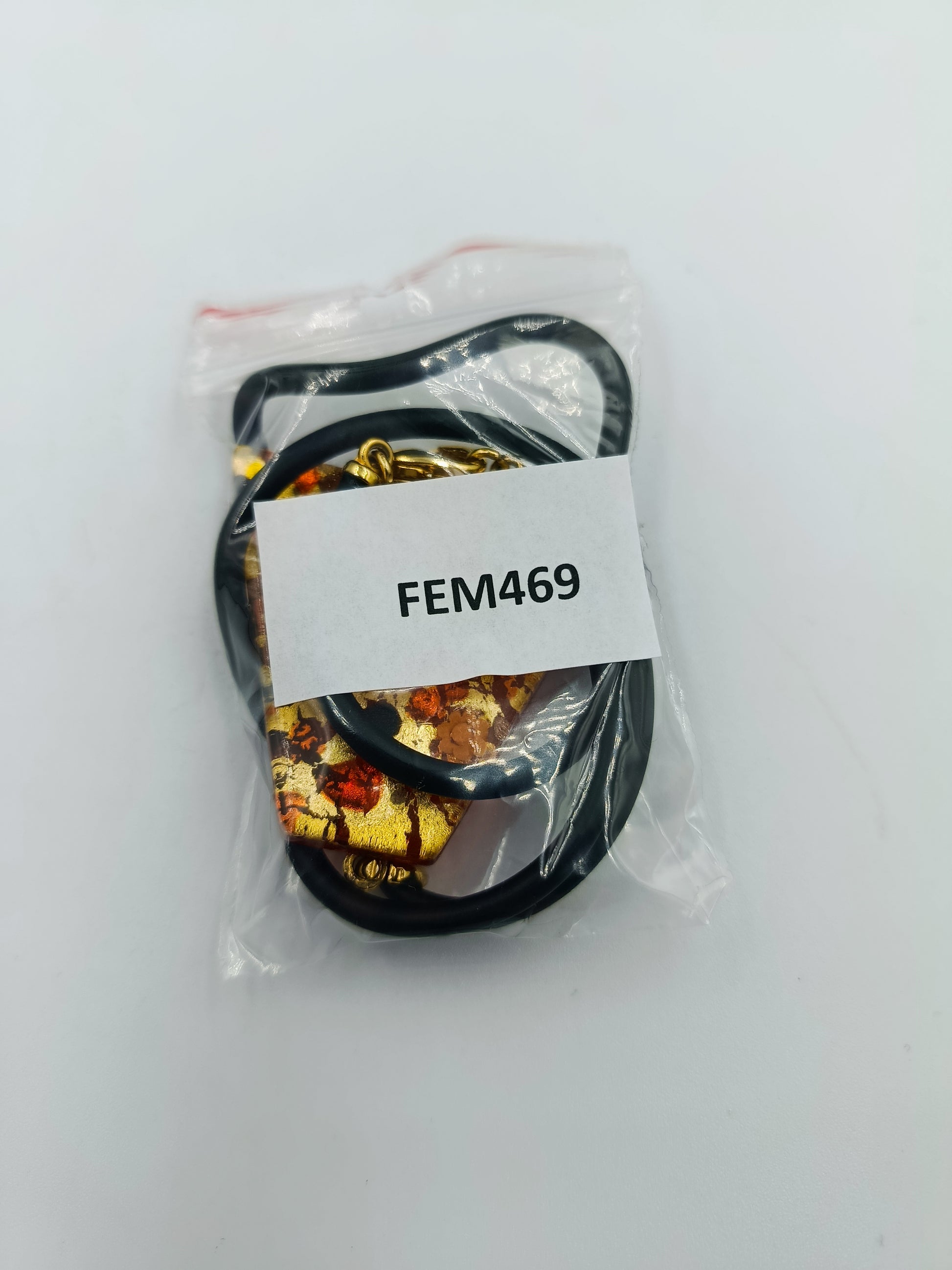 Auffällige Kette mit modernem Design: Ein dreieckiger Anhänger aus Glas mit goldfarbenem und rotem Mosaikmuster sorgt für ein extravagantes Highlight. Das schwarze Band aus flexiblem Material (Kautschuk/kunststoffbeschichtet) unterstreicht den Kontrast und macht die Kette zu einem echten Blickfang.