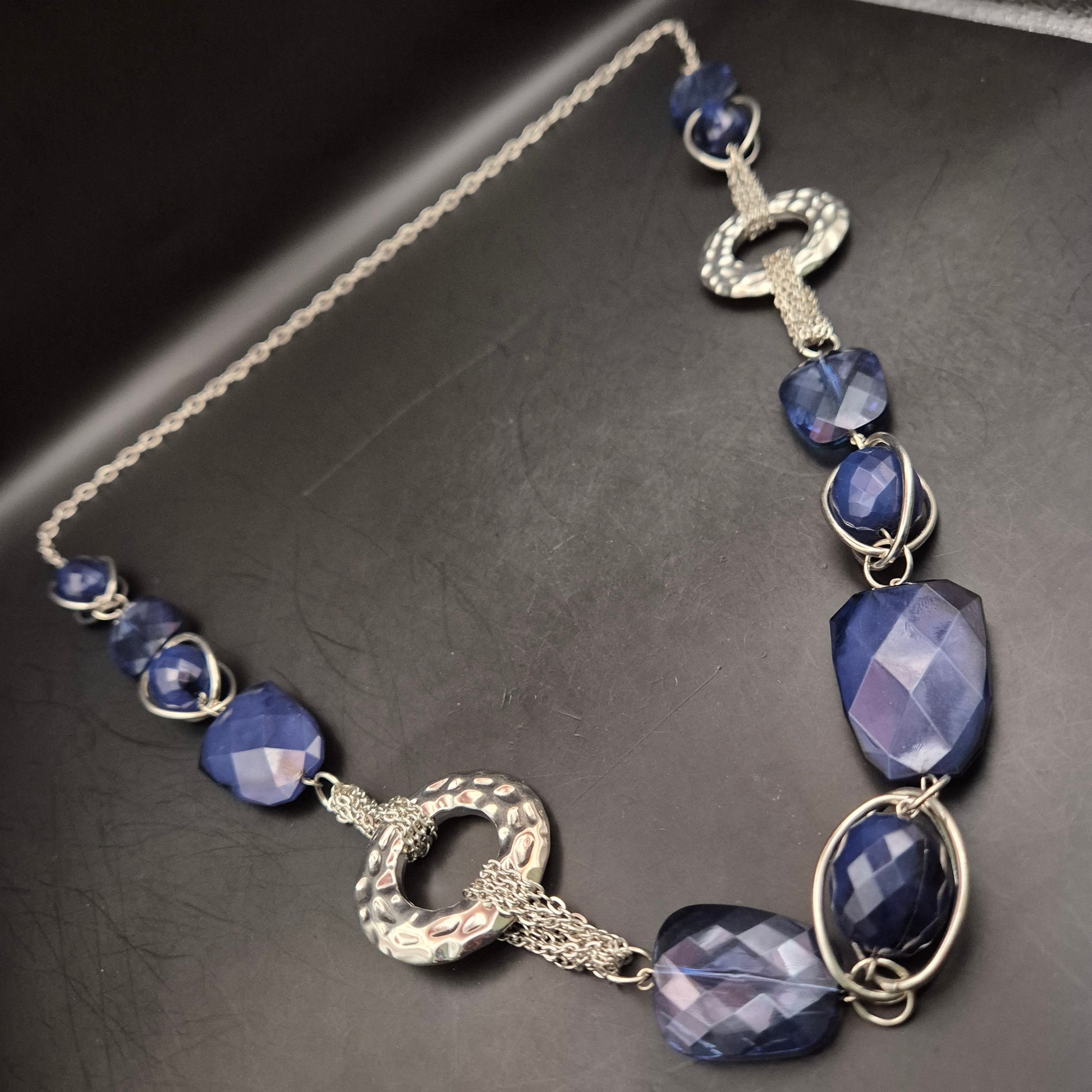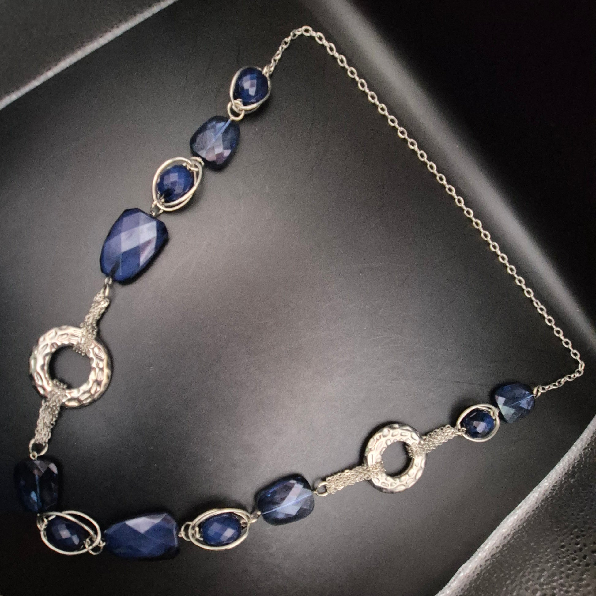 Moderne Halskette mit blauen Facettsteinen und silberfarbenen Elementen