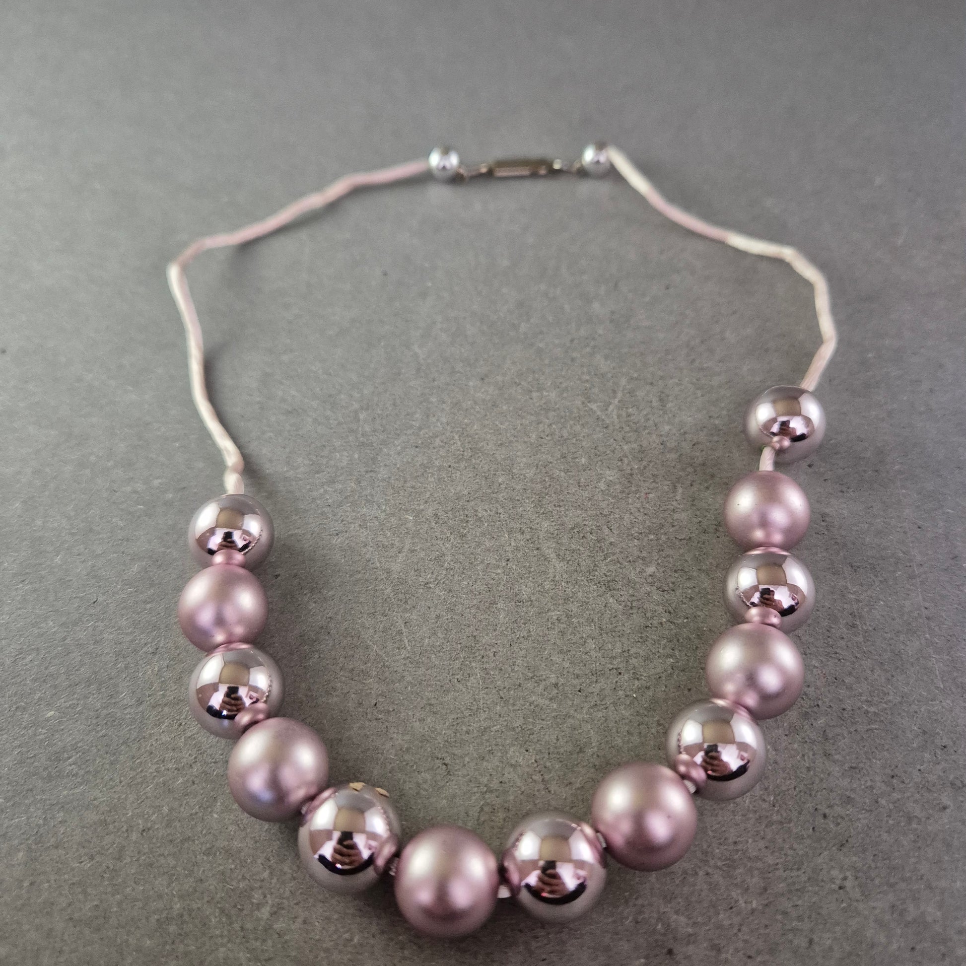 Moderne Perlen Halskette in Rosa-Metallic – Glänzend & Statementstark