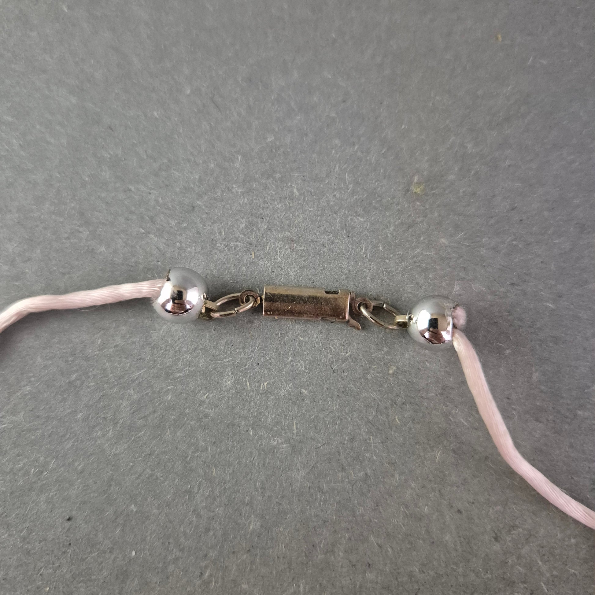 • Material: Kunststoffperlen, Satinband, Metallverschluss