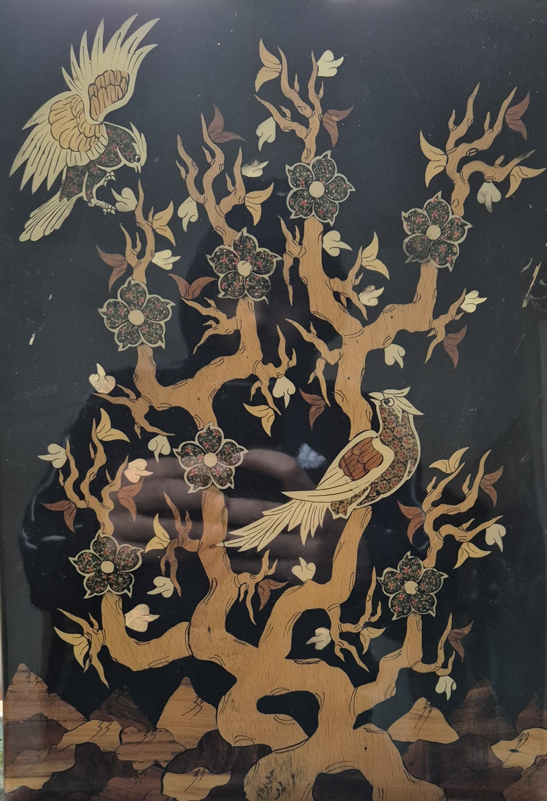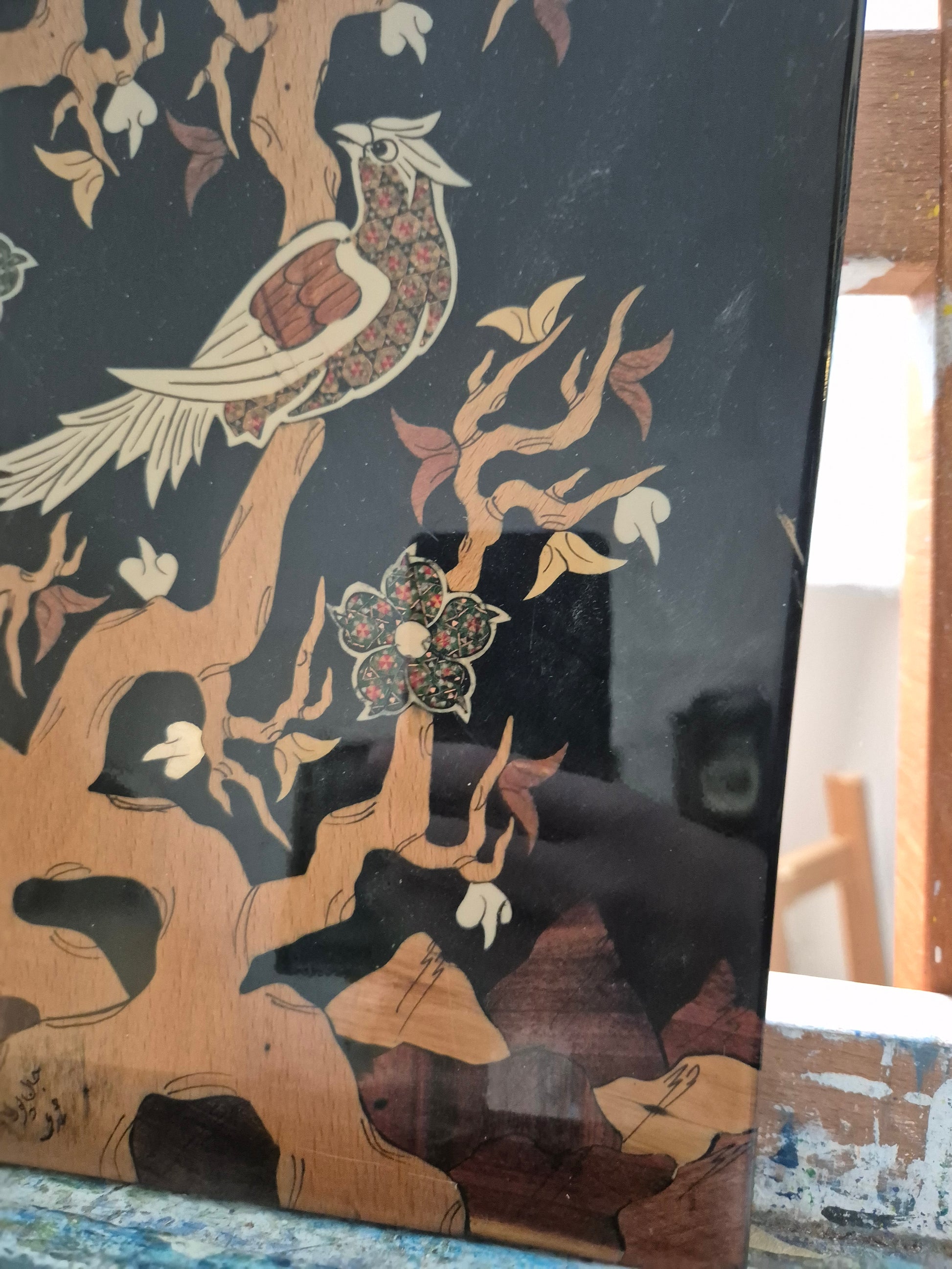 Naturdarstellung mit Vögeln und floralen Elementen 44x38cm