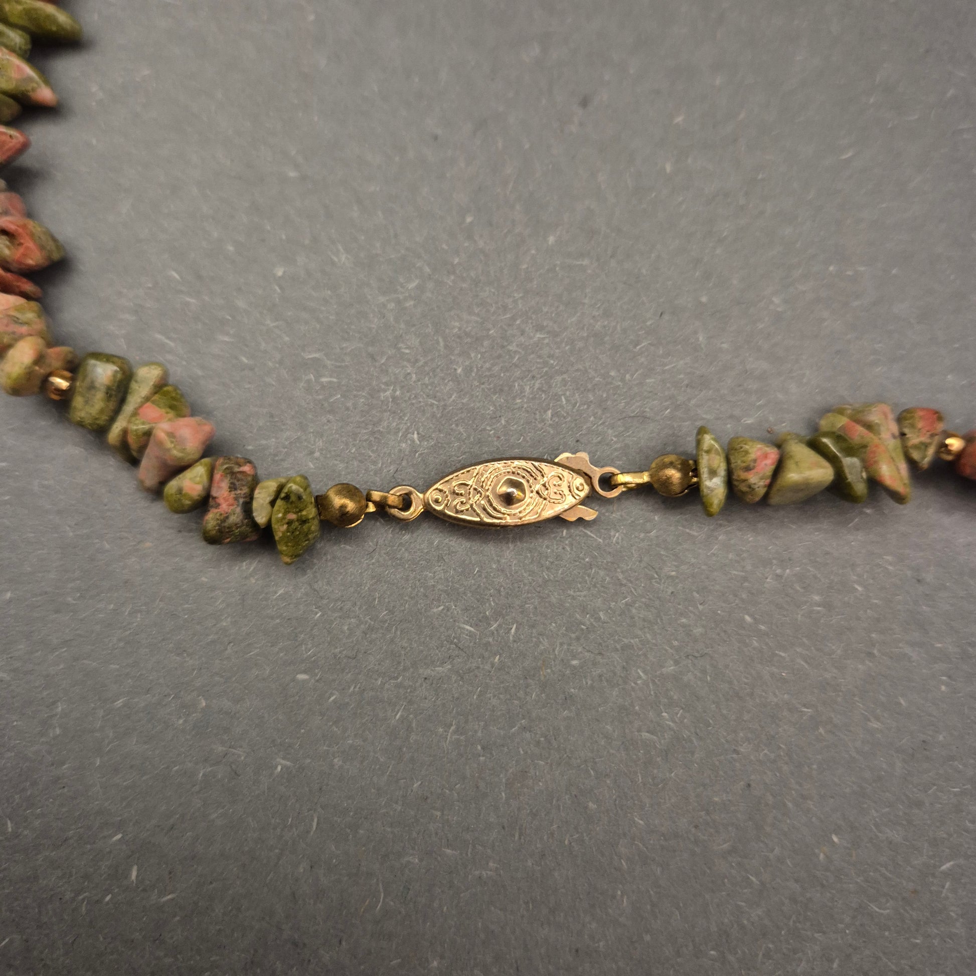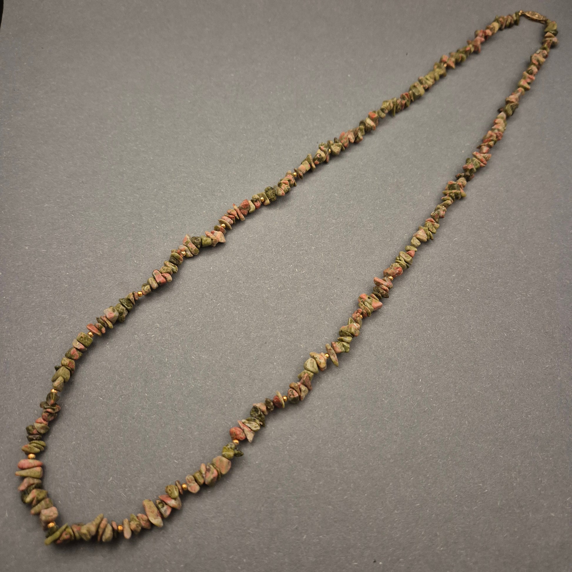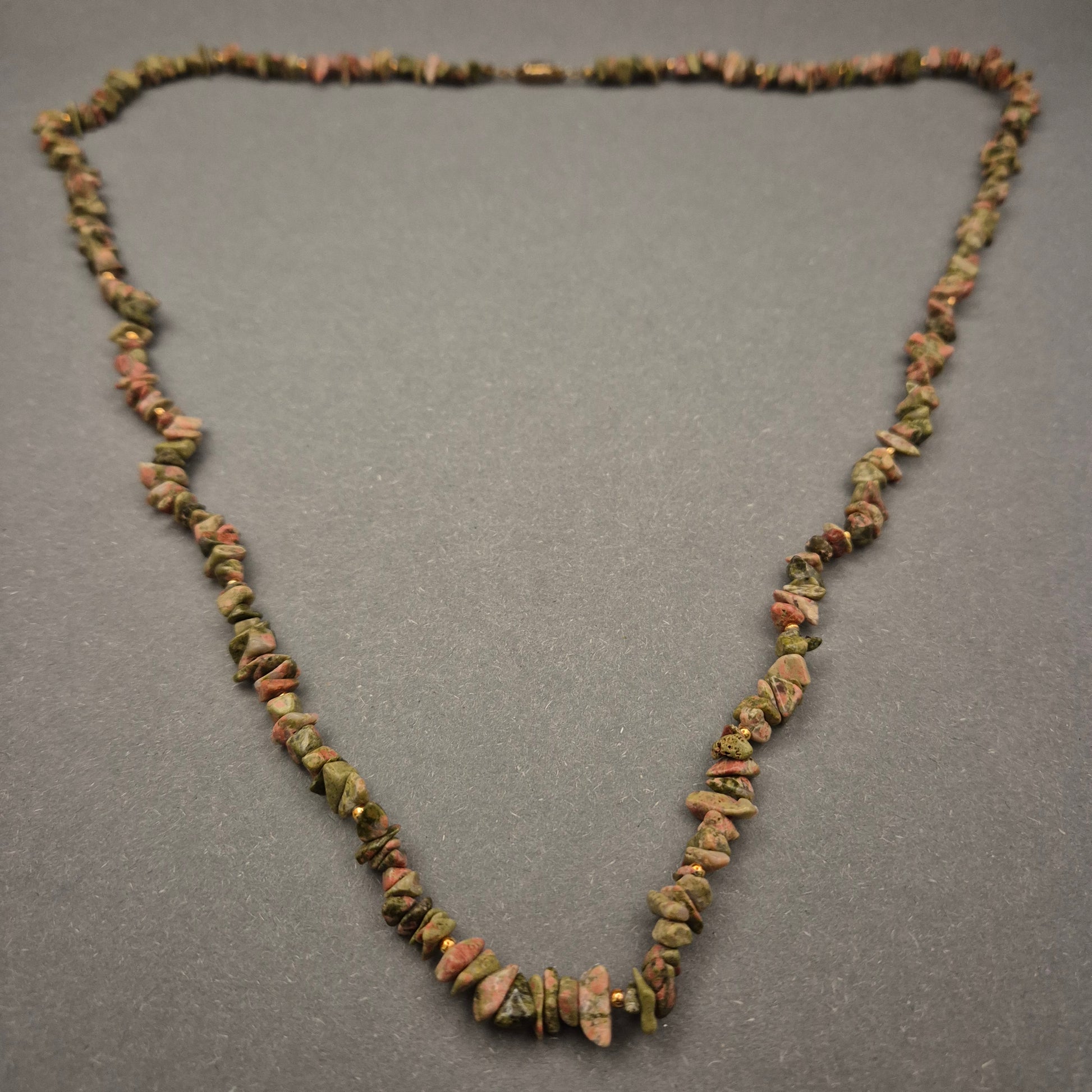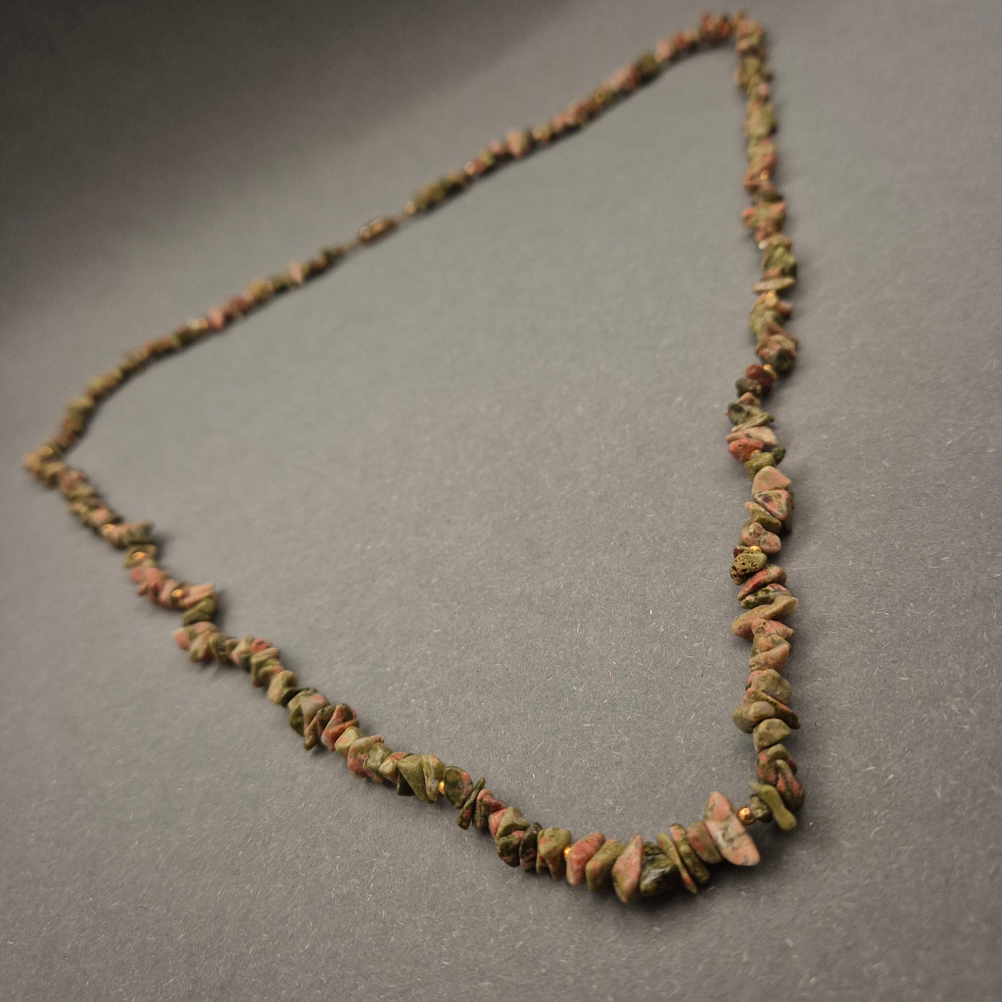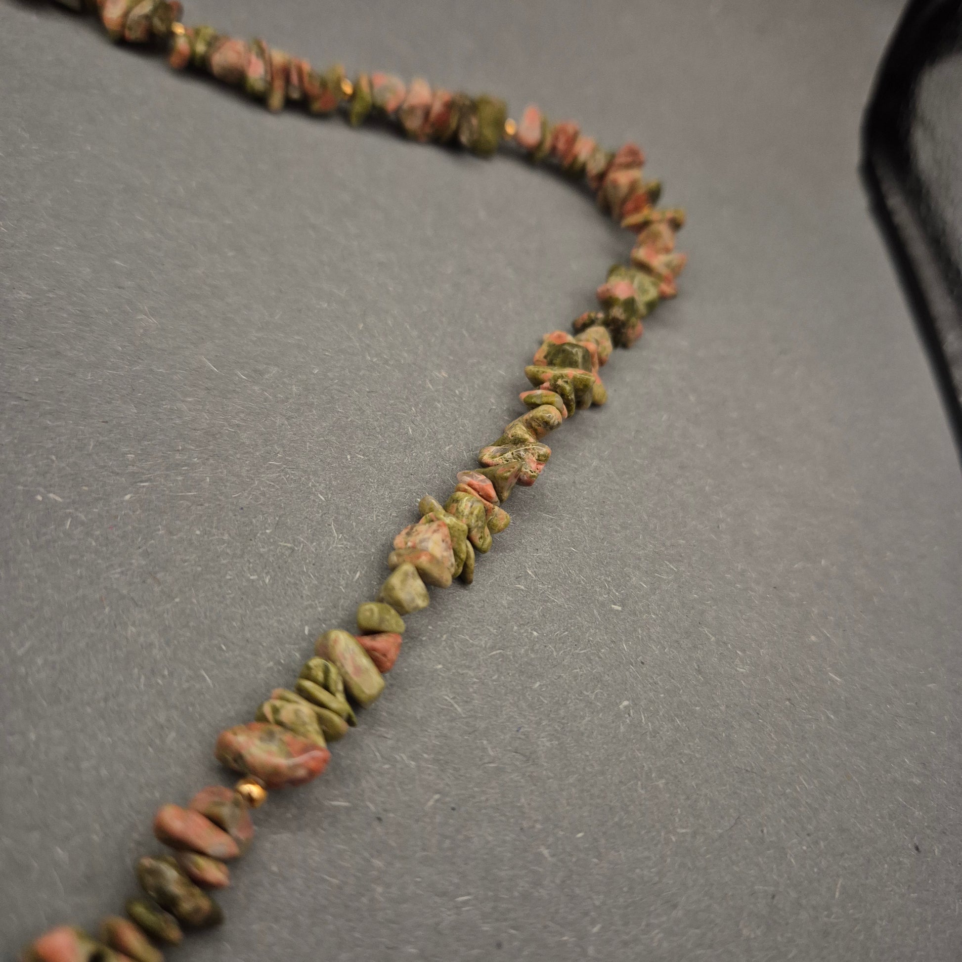 Natürliche Halskette mit grünen und rosa Stein-Chips – Unikat-Design