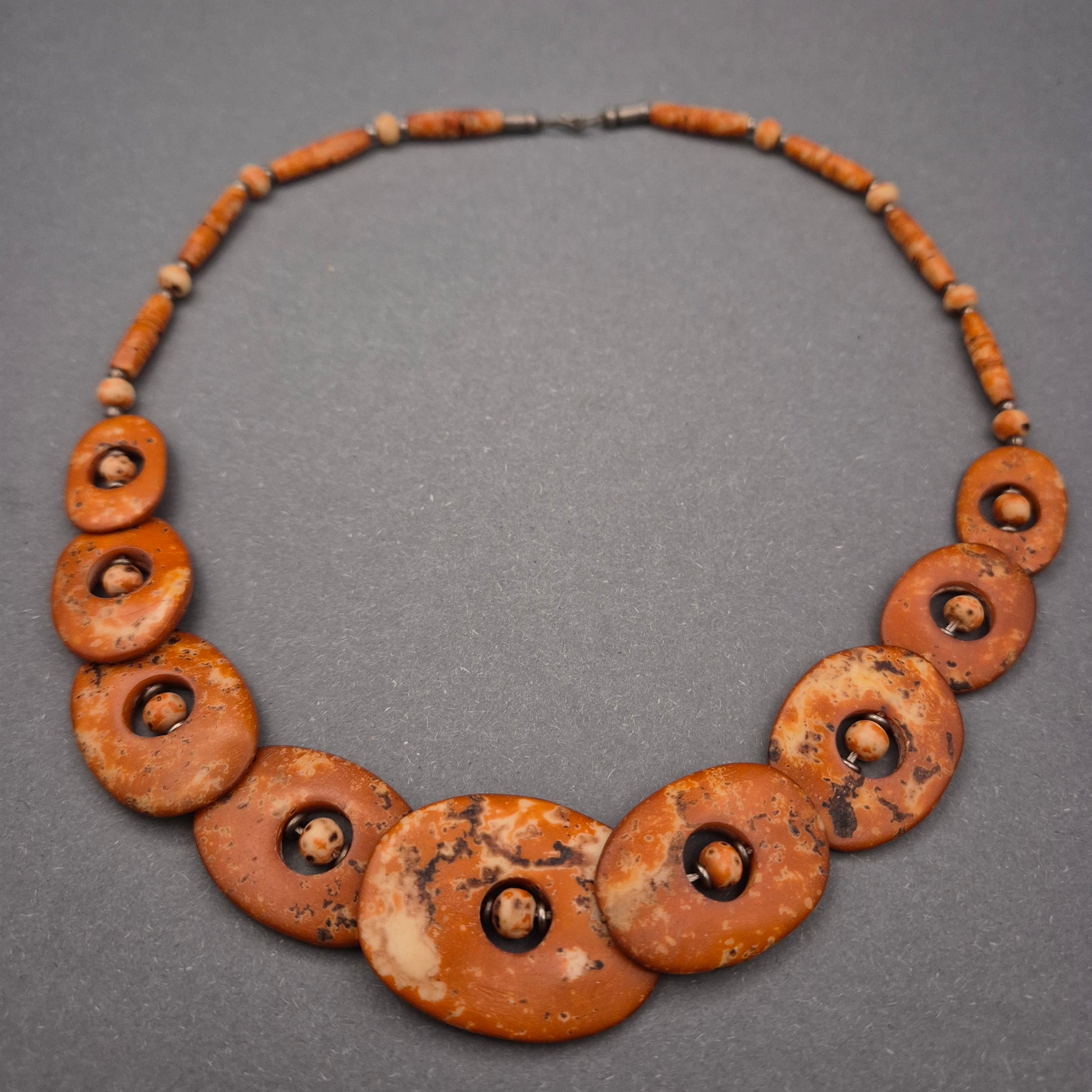 Naturstein Halskette in Erdtönen – Handgefertigter Vintage-Look
