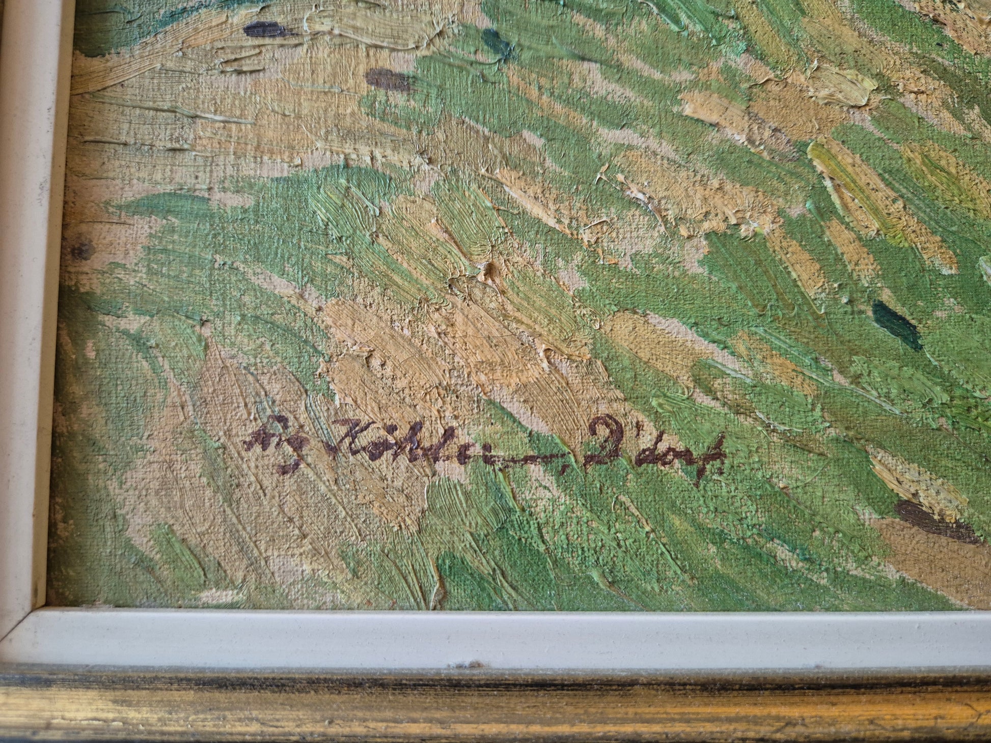 Ölgemälde Rheinufer Düsseldorf Fritz Köhler (1887-1972) Landschaft 63x73cm