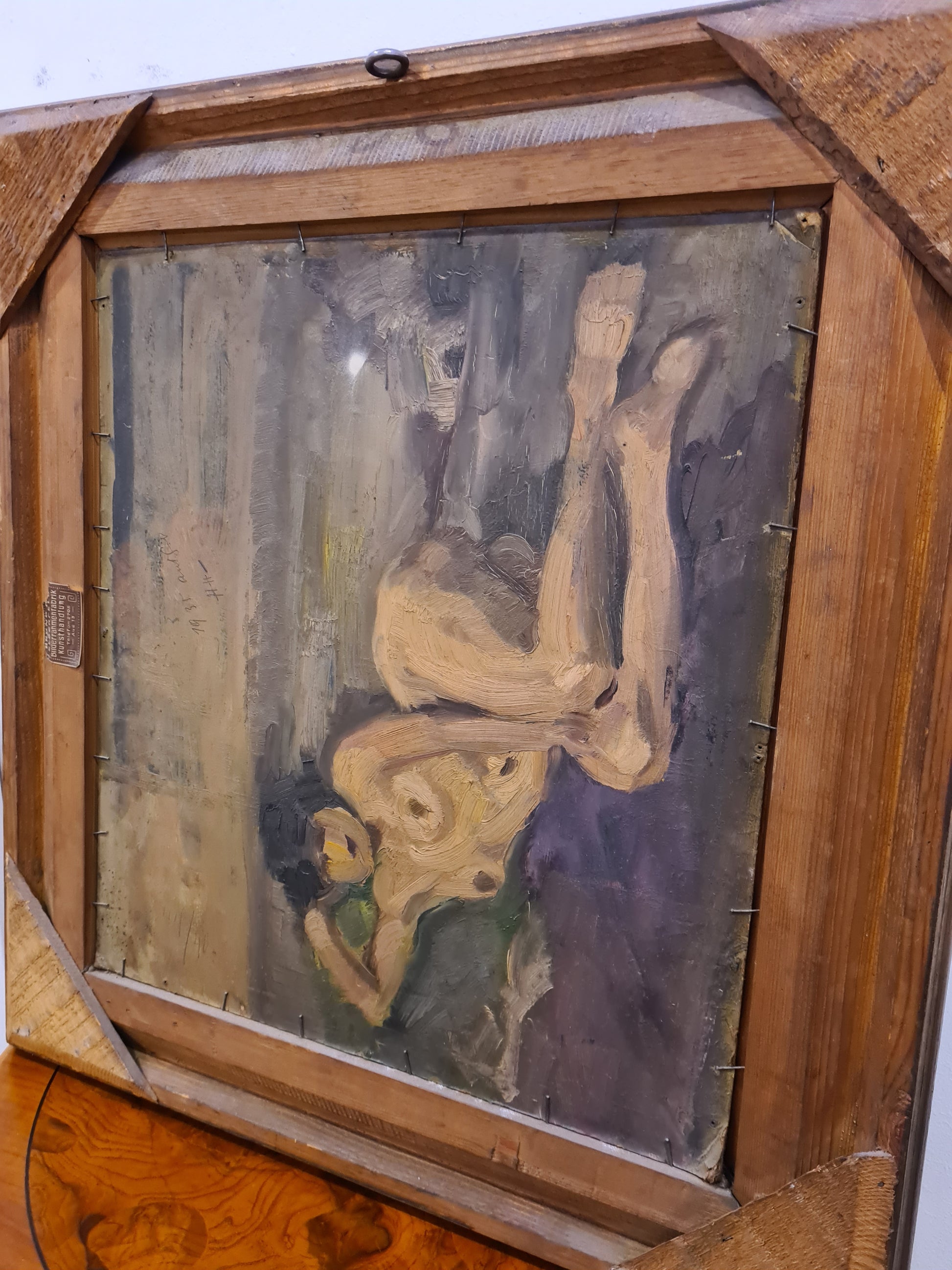 Ölgemälde Stillleben und Akt auf Holz Malerei Holzrahmen signiert 63x60cm