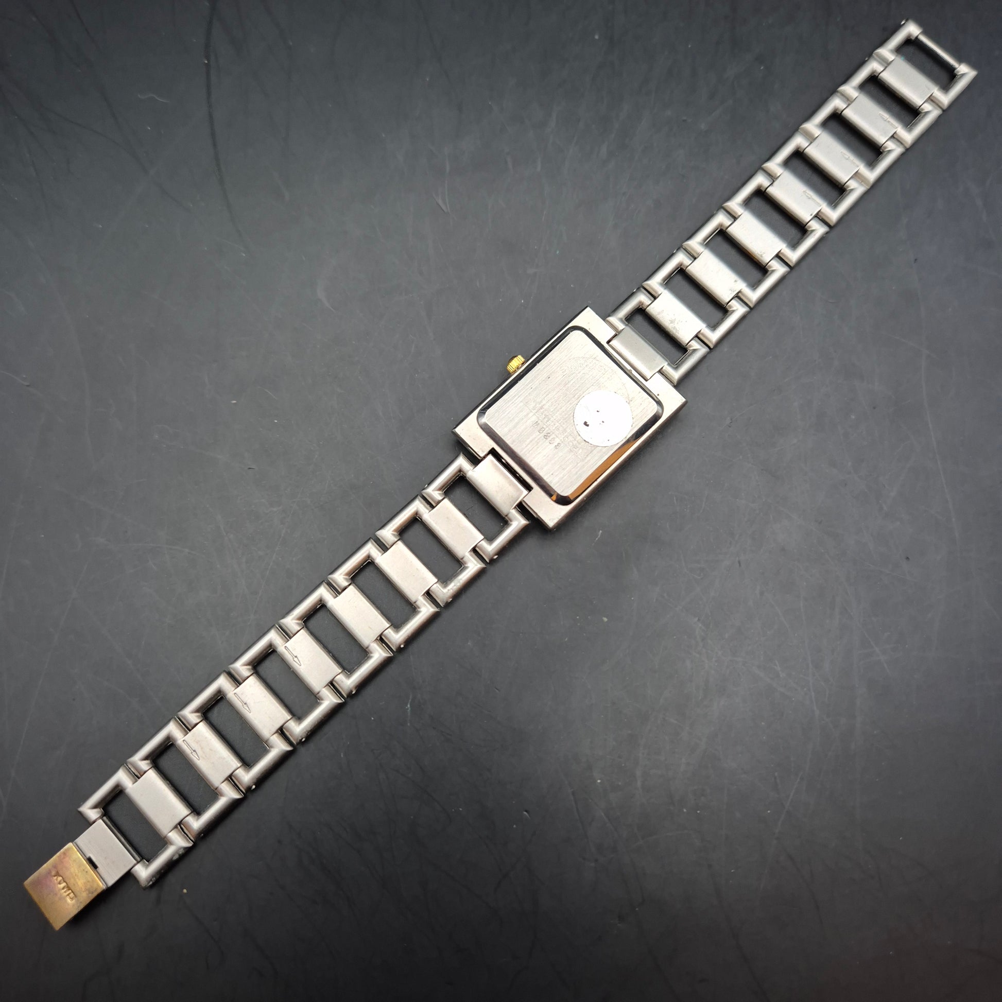 Diese Omax Crystal Damen Uhr präsentiert sich mit einem schmalen, rechteckigen Gehäuse und einem harmonischen Bicolor-Metallarmband. Das goldfarbene Zifferblatt mit feinen Indizes unterstreicht den eleganten und klassischen Stil. Sie ist ein stilvolles Accessoire für den täglichen Gebrauch oder formelle Anlässe.