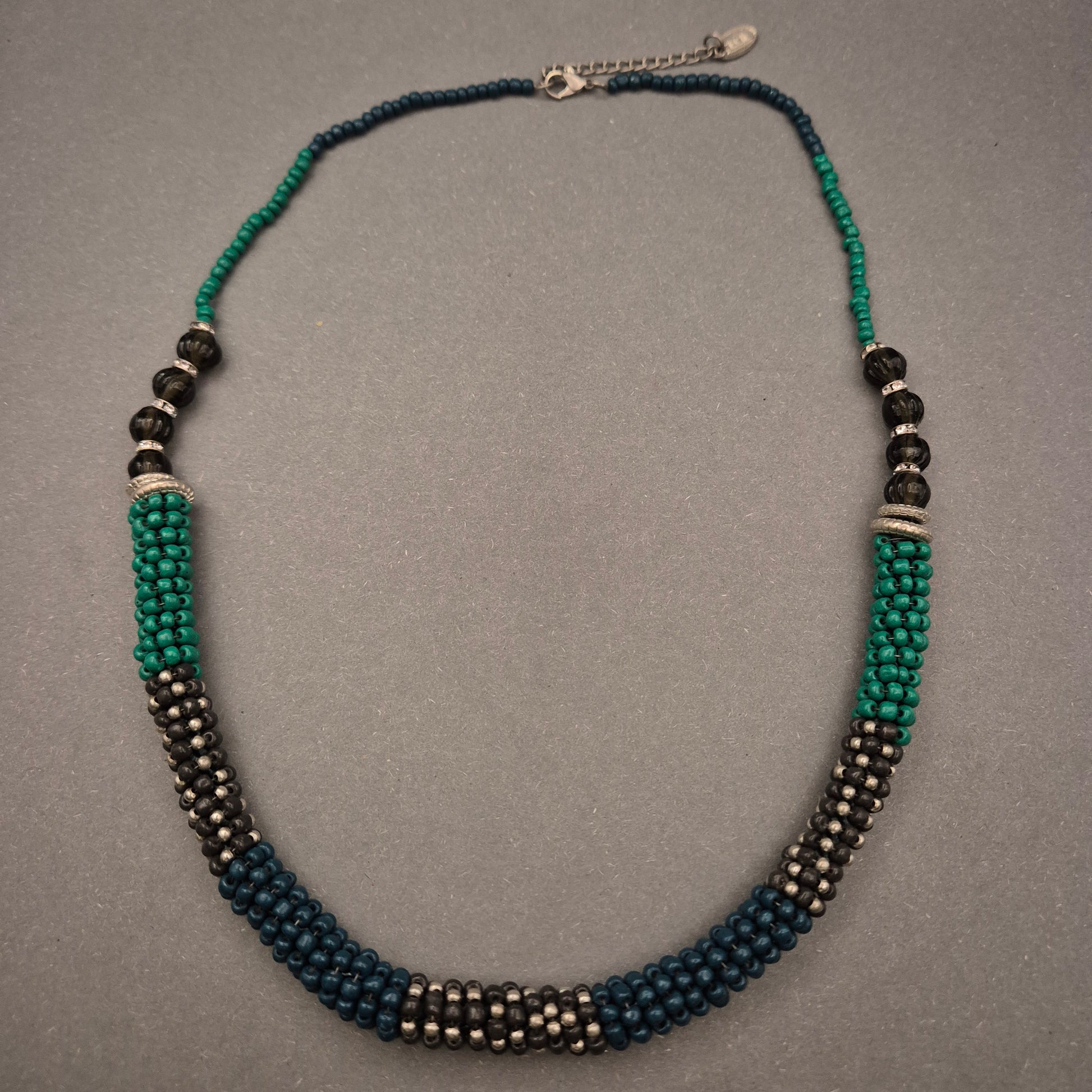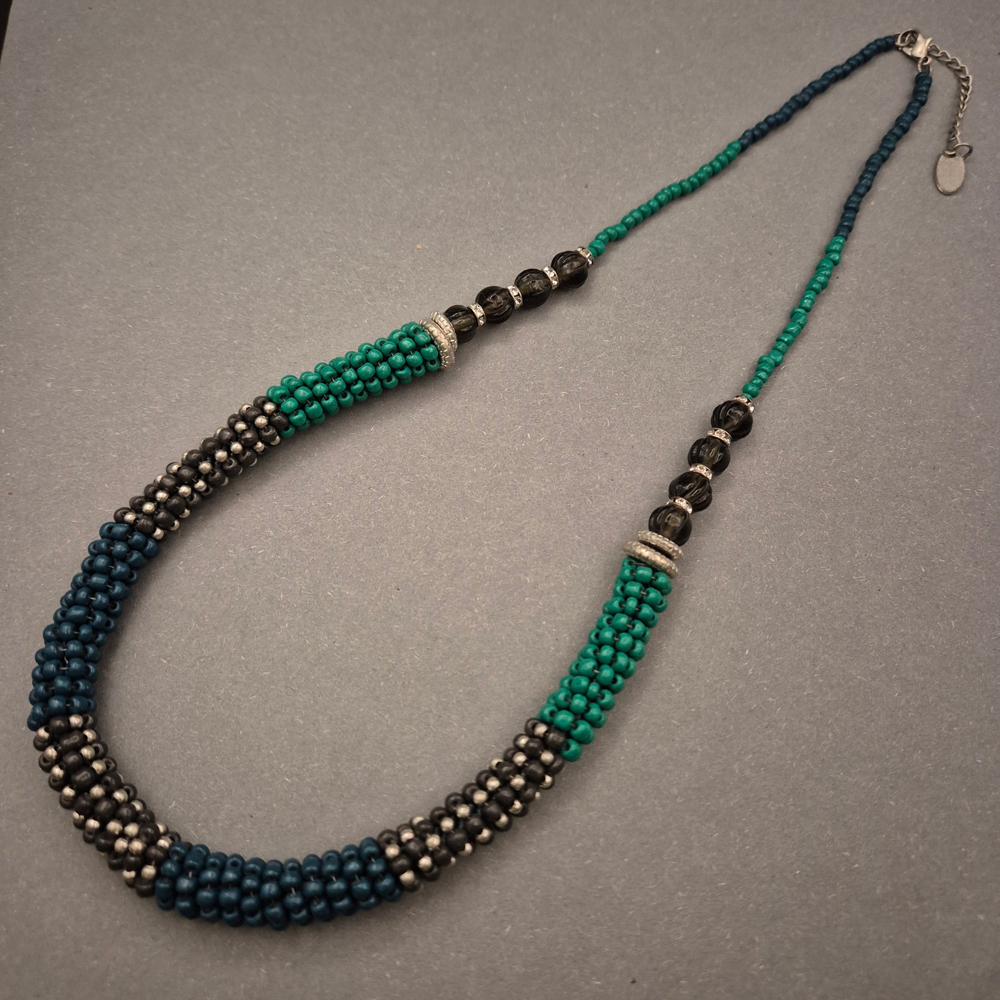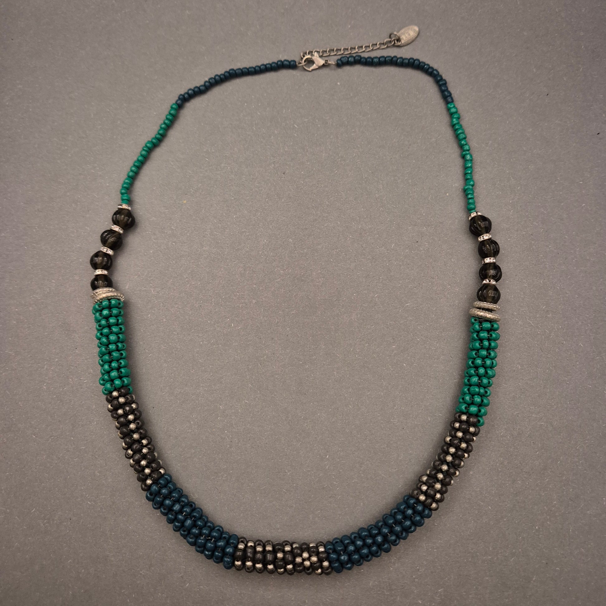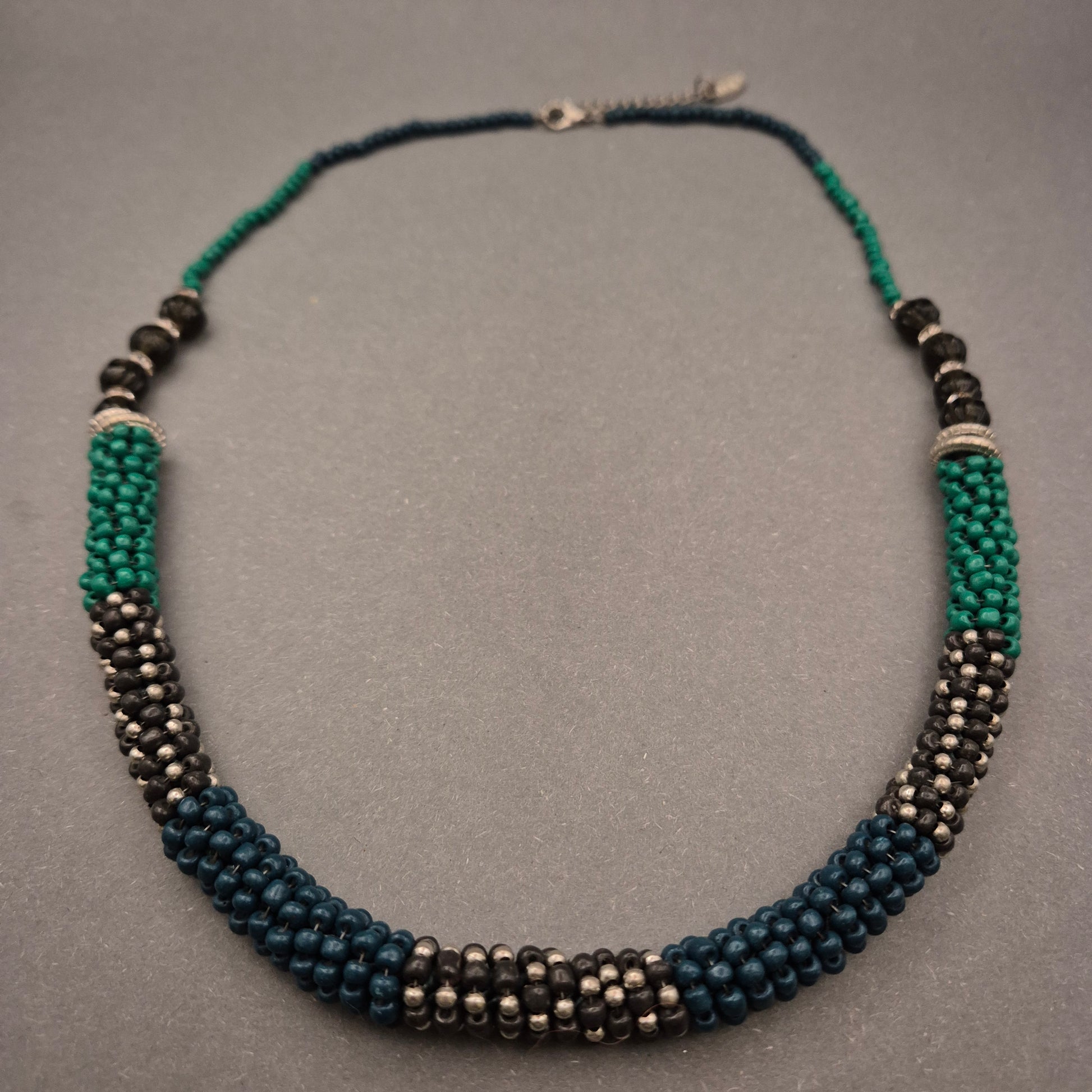 Perlen Halskette in Blau-Grün-Schwarz – Handgearbeitet im Ethno-Stil