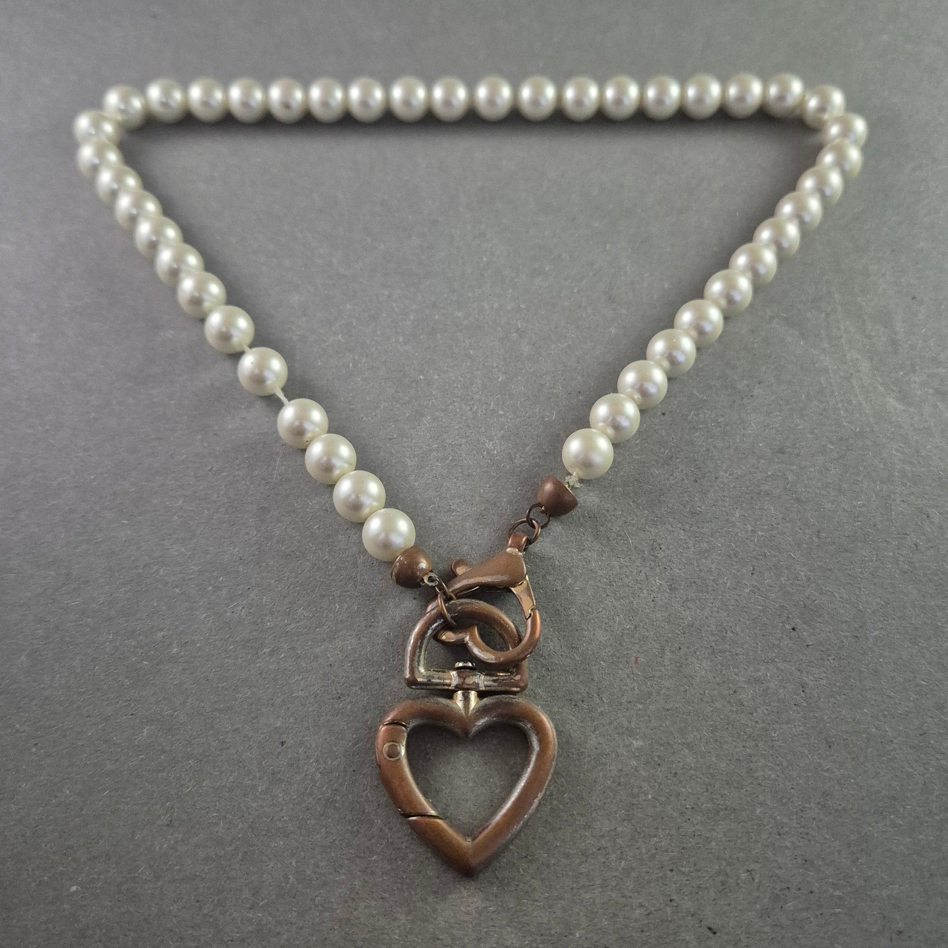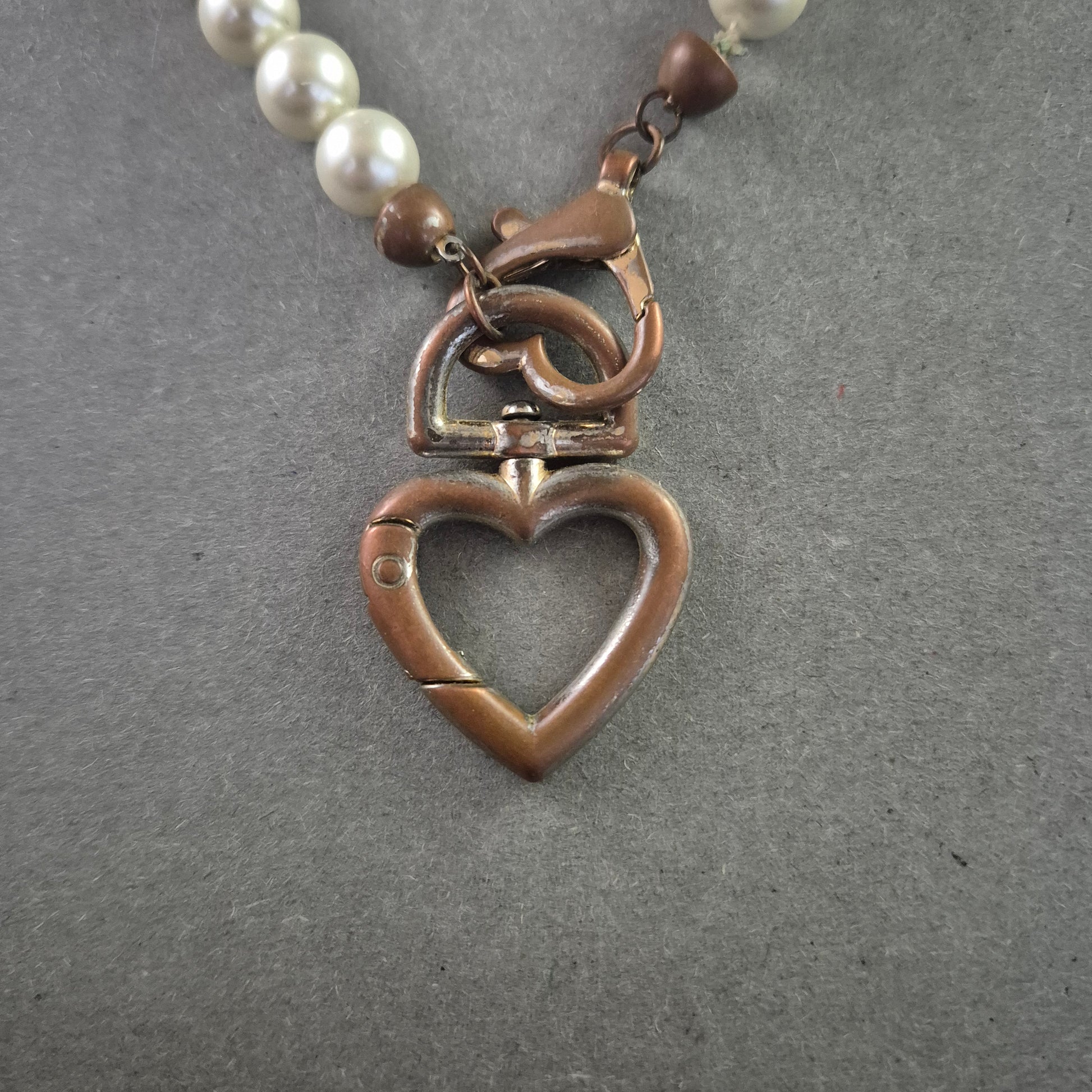 Perlenkette mit Herzanhänger – Romantisches Design mit Bronze-Details