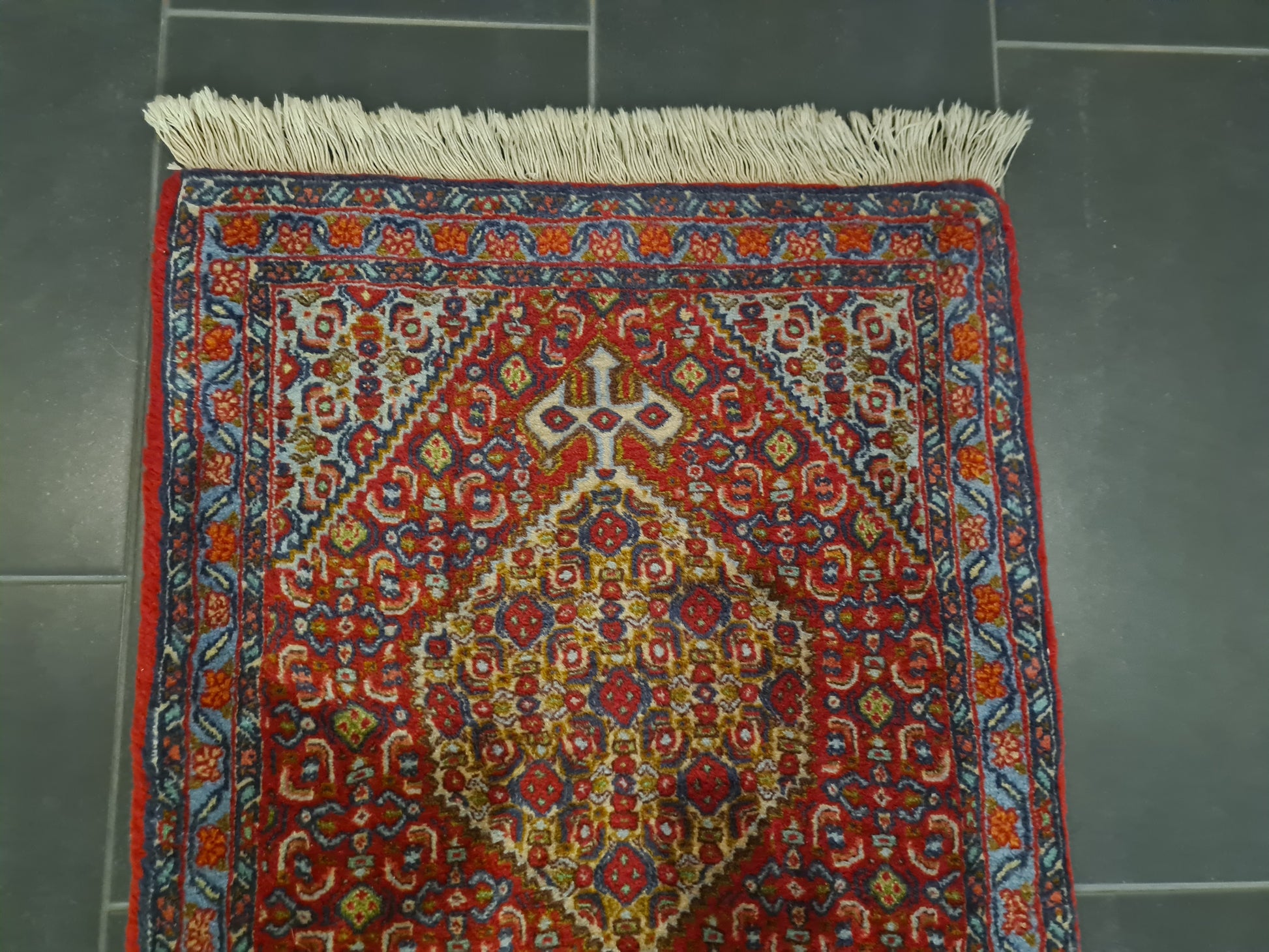 zum Verkauf steht ein handgeknüpfter Perserteppich aus der Region Bidjar. Dieser Orientteppich zeichnet sich durch seine hohe Knotendichte, seine Robustheit und seine zeitlose Eleganz aus. Mit seiner länglichen Form eignet er sich ideal als Läufer für Flur, Diele oder als dekoratives Highlight in Wohnräumen.