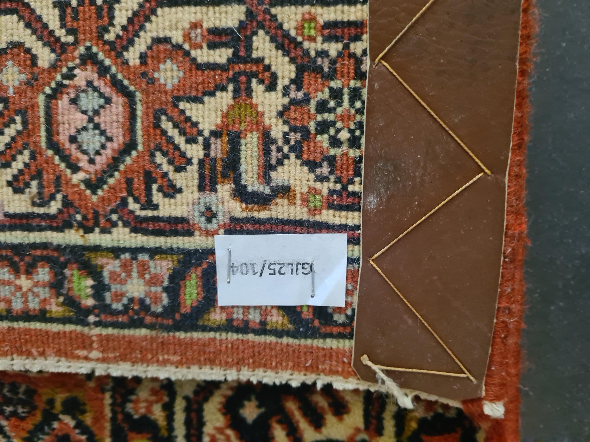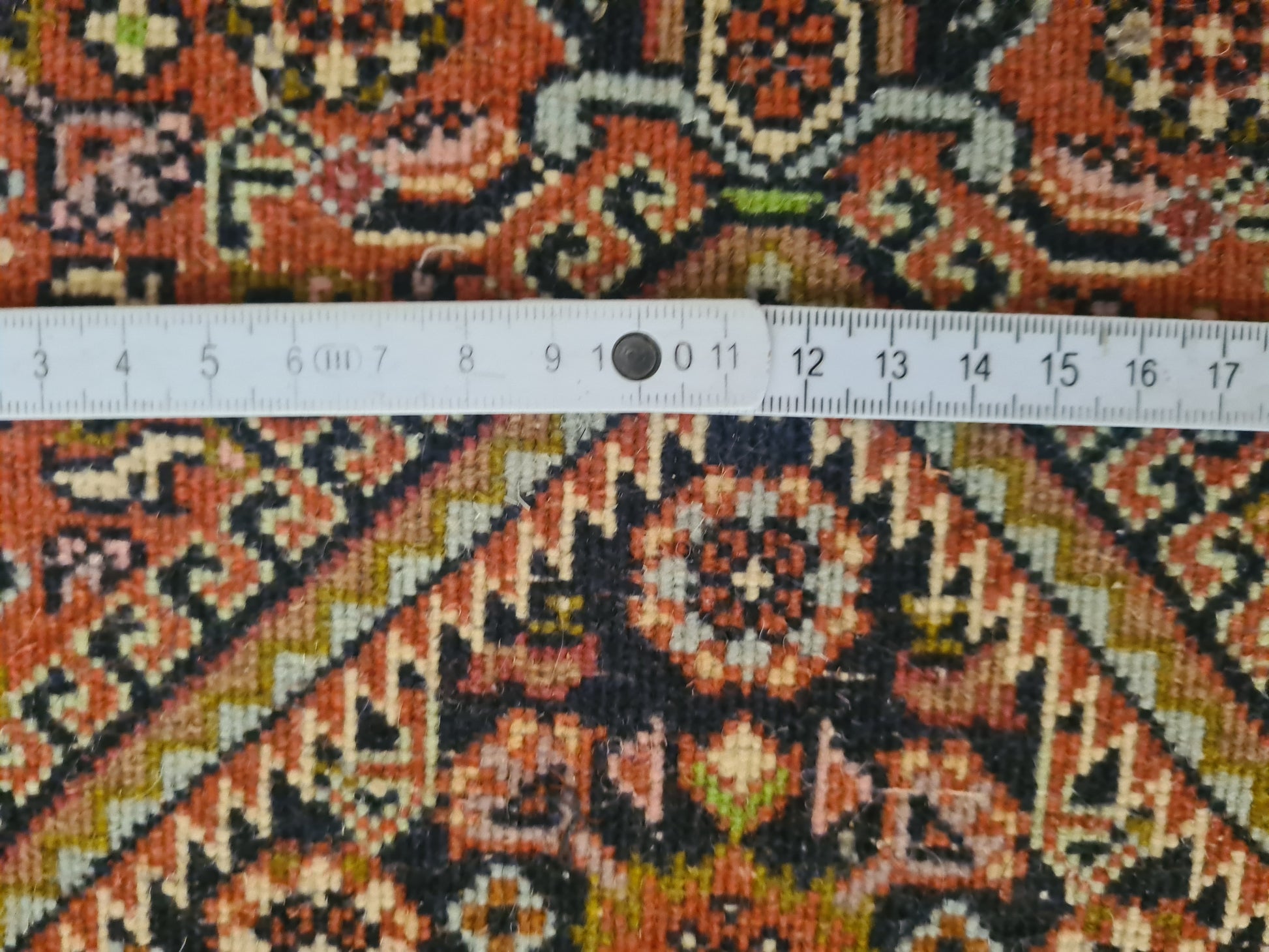 • Knüpfung: Fein und dicht, typisch für Bidjar-Teppiche („Eisen-Teppich“)