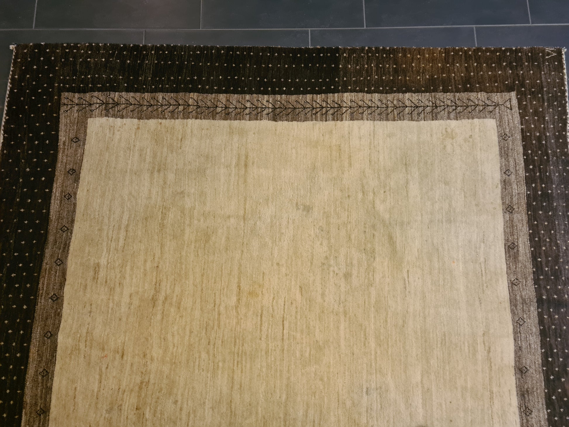 • Farben: Warme Naturtöne mit traditionellen Gabbeh-Mustern
