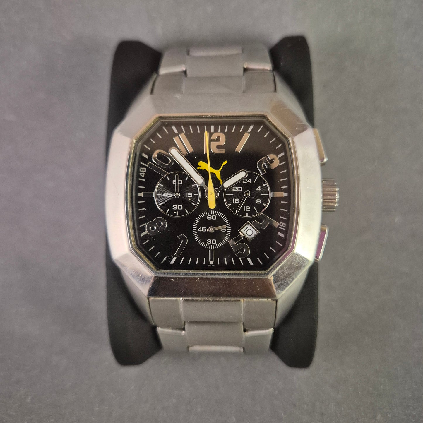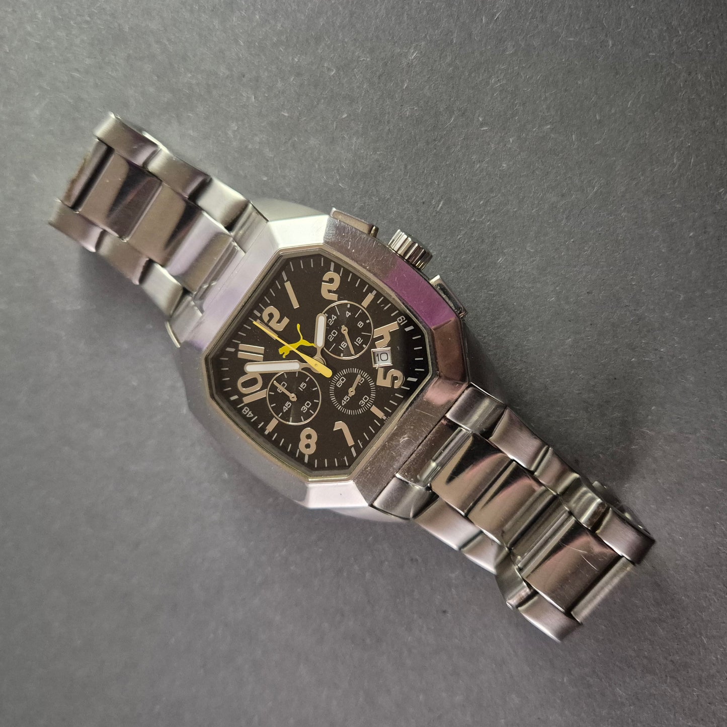 • Schwarzes Zifferblatt mit gelben Akzenten und Puma-Logo.