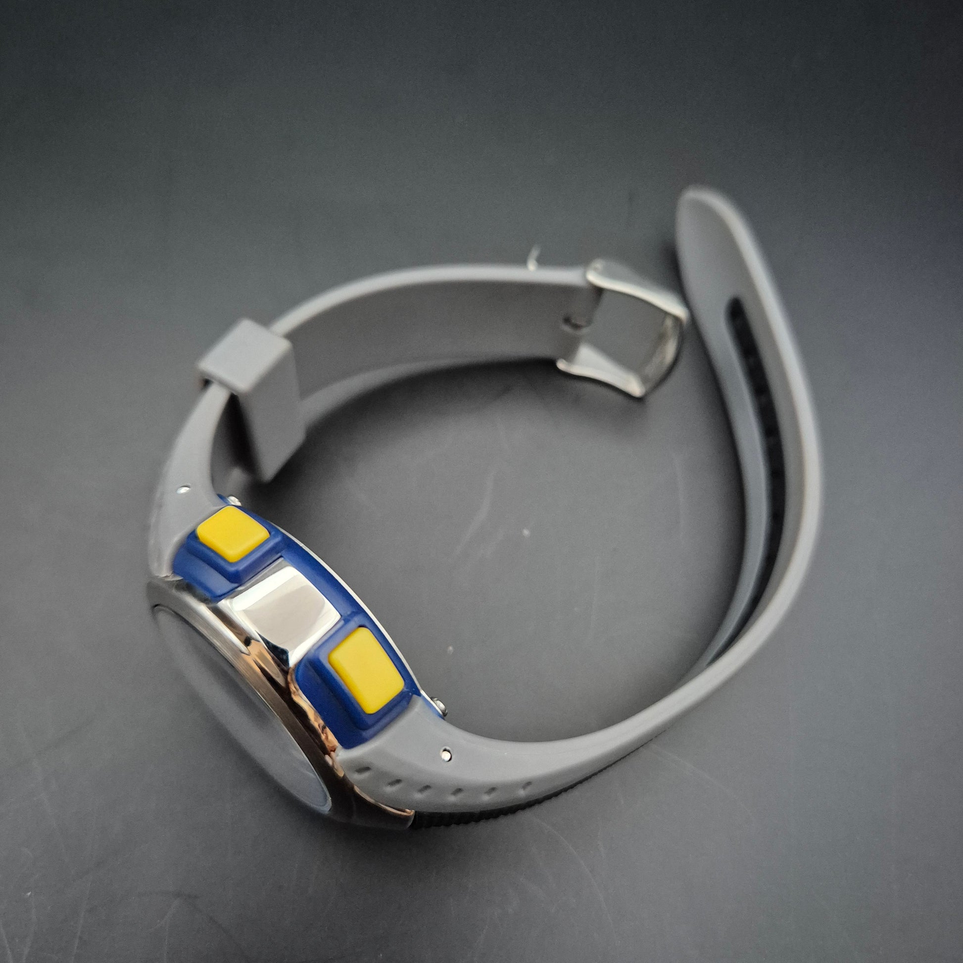 Diese robuste SINAR Digital Uhr ist der ideale Begleiter für Sport und Abenteuer. Mit ihrem modernen Design in Grau, Blau und Gelb und einem klaren Digitaldisplay ist sie funktional und stylisch zugleich. Die Wasserdichtigkeit von 5 BAR und das strapazierfähige Armband machen sie perfekt für Outdoor-Aktivitäten.