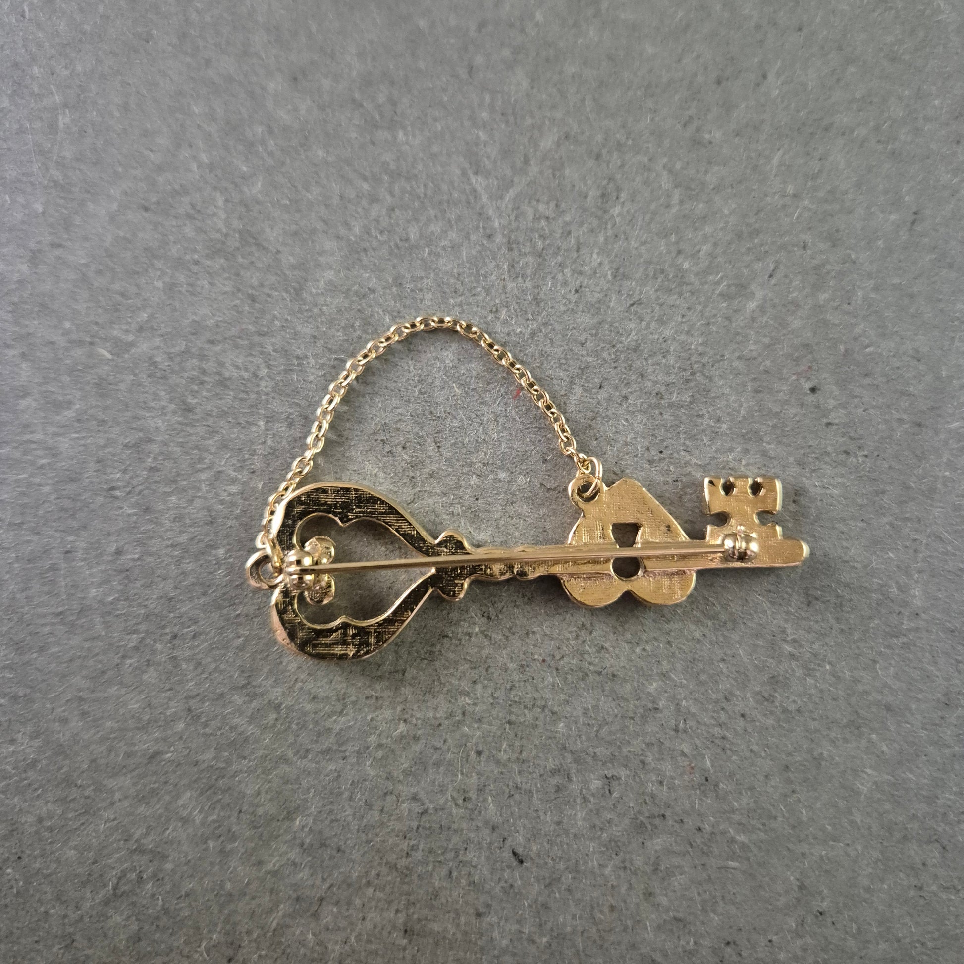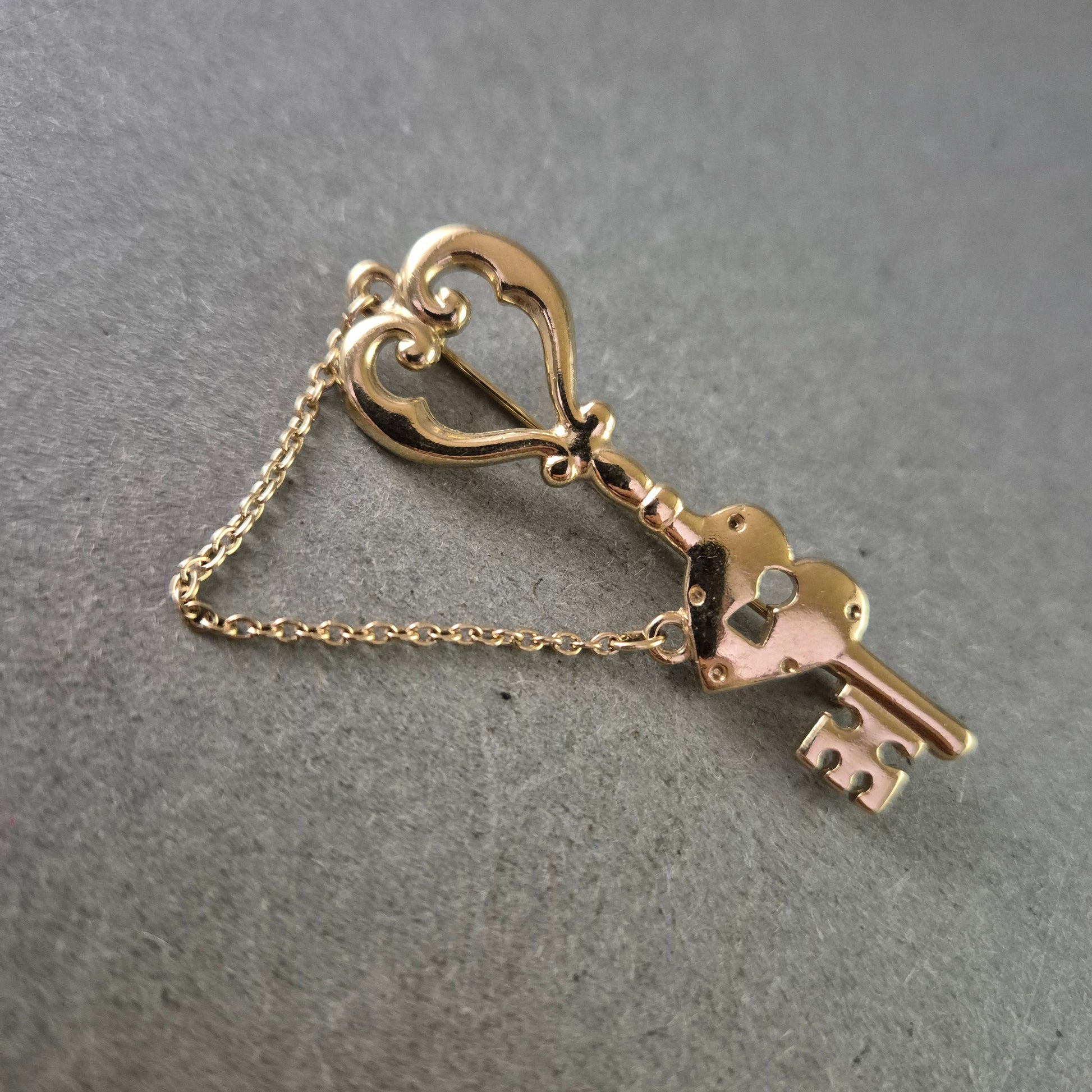 Romantische Brosche in Schlüsselform – Herzdesign mit goldfarbener Kette