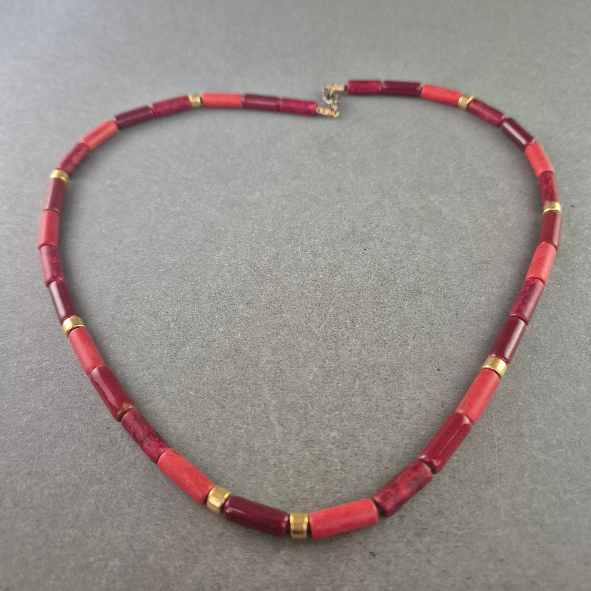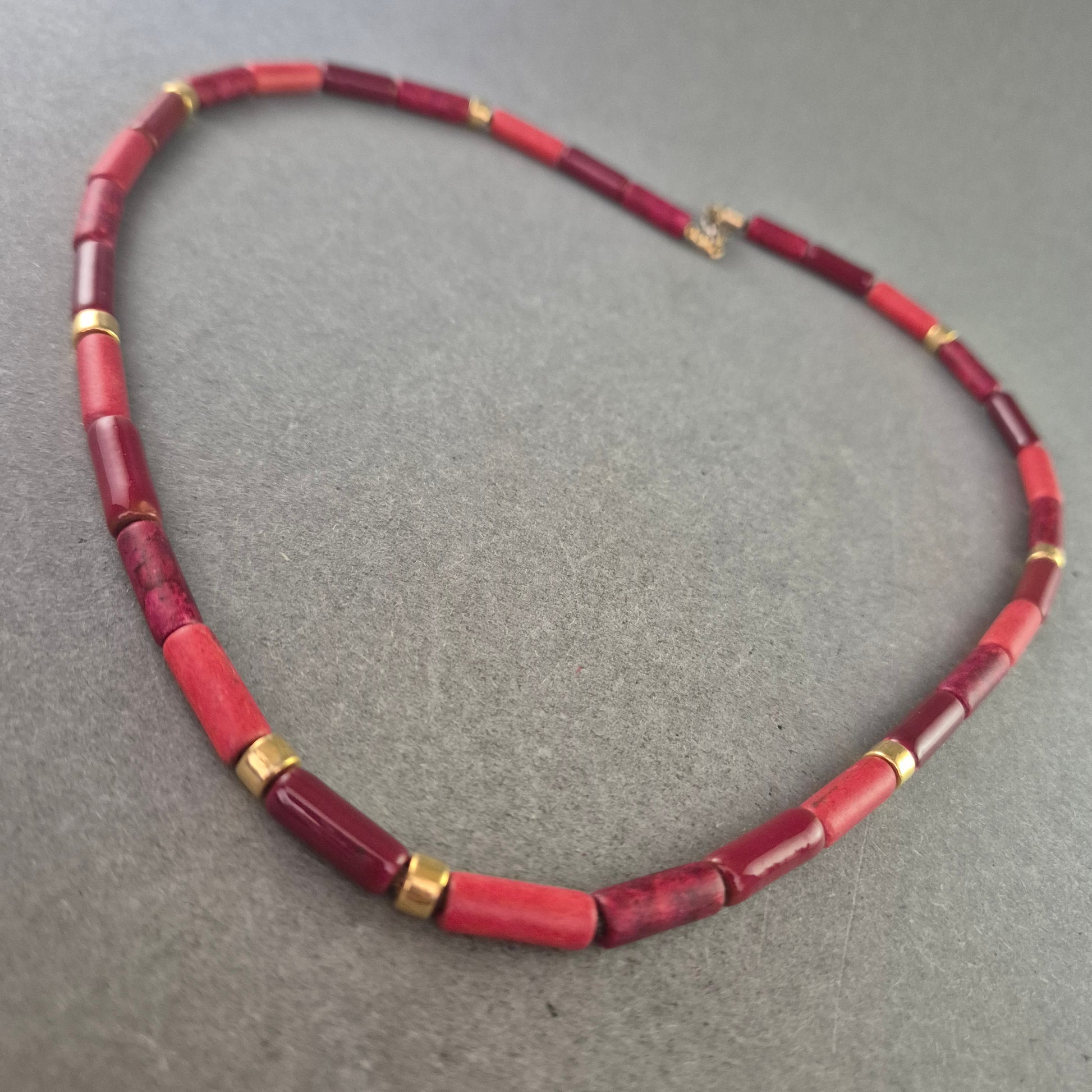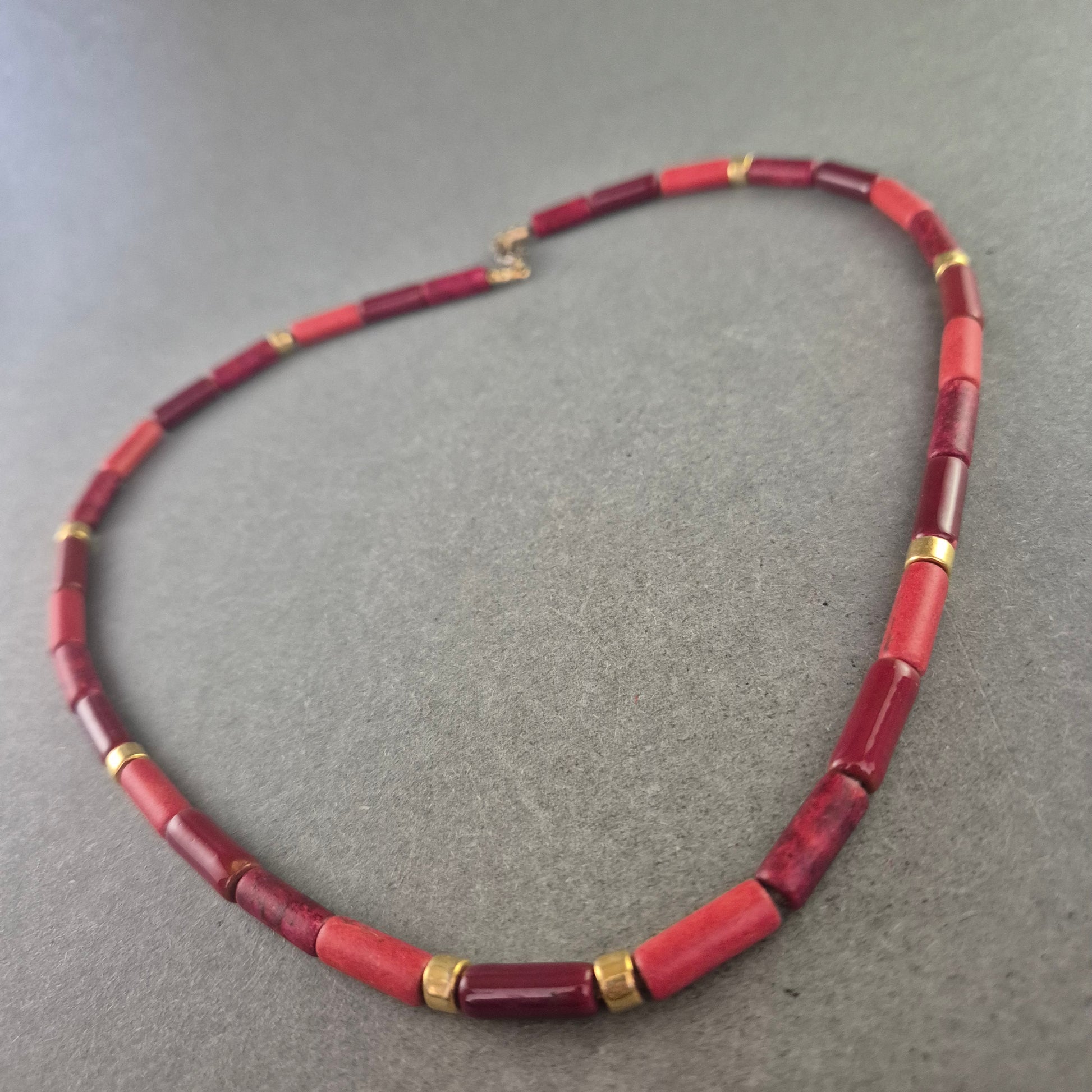 Rote Korallen Halskette mit goldfarbenen Akzenten – Ausdrucksstark & Edel