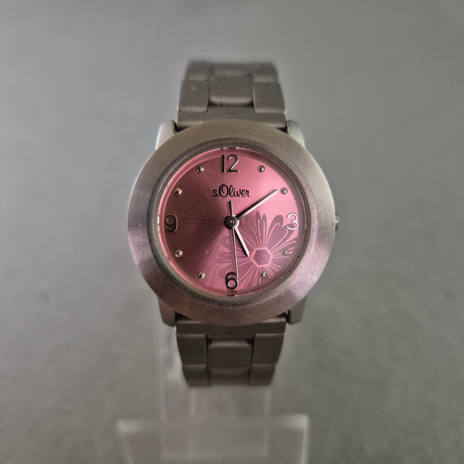 Diese s.Oliver Damen Uhr überzeugt durch ihr verspieltes Design und den femininen Look. Das rosafarbene Zifferblatt wird von einem floralen Blumenmotiv verziert und verleiht der Uhr eine besondere Note. Mit dem silberfarbenen Edelstahlarmband ist sie zugleich robust und elegant, ideal für den Alltag oder als stilvolles Accessoire.