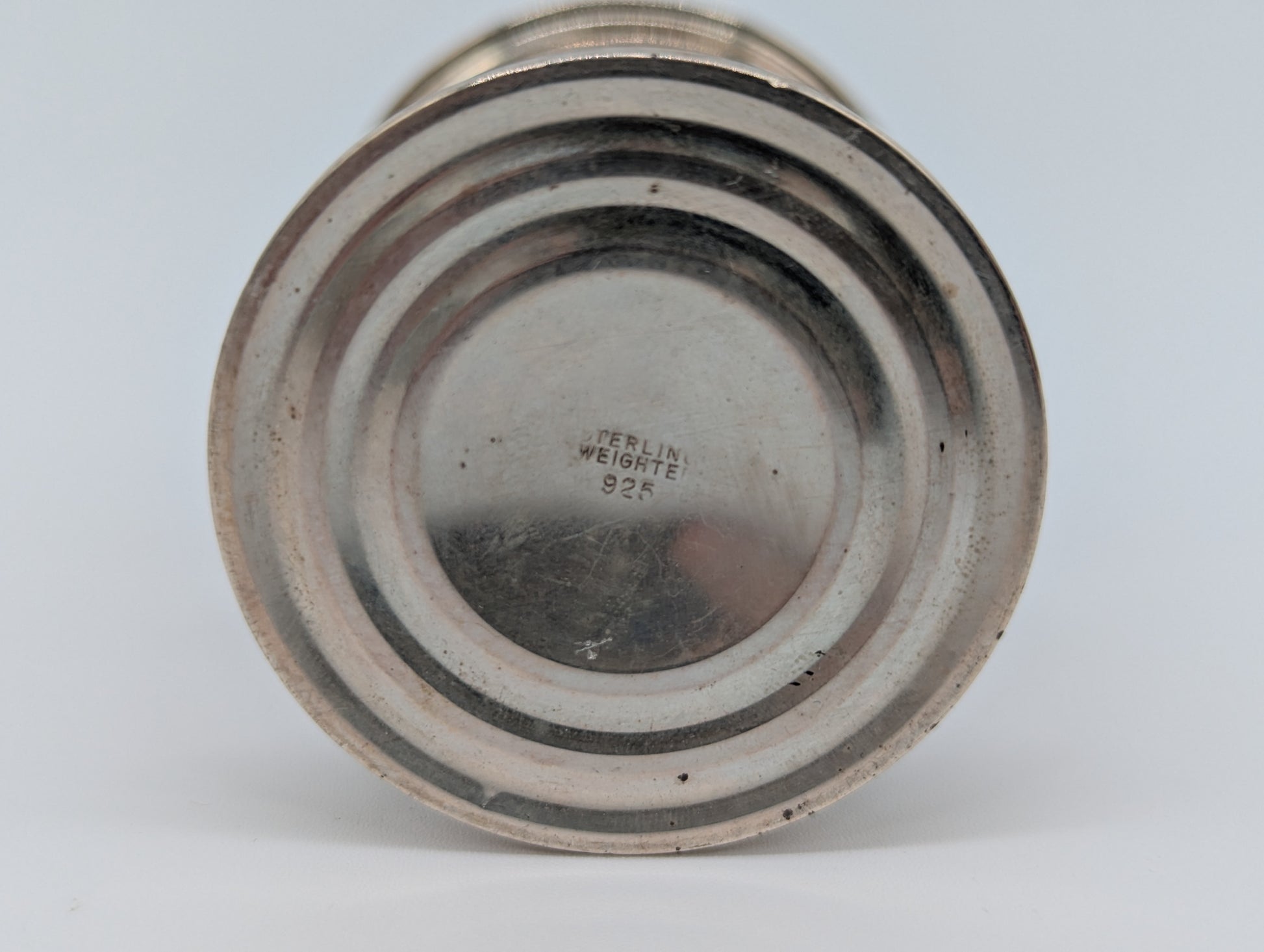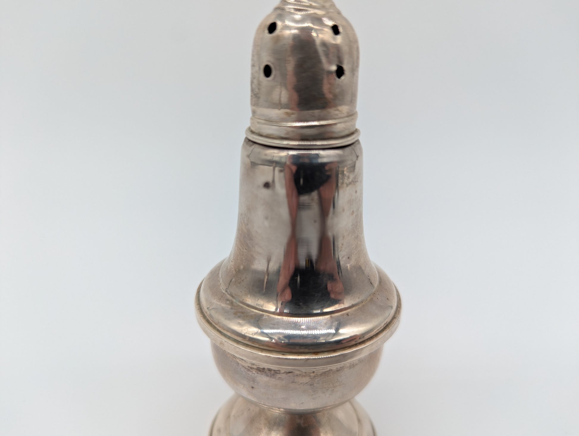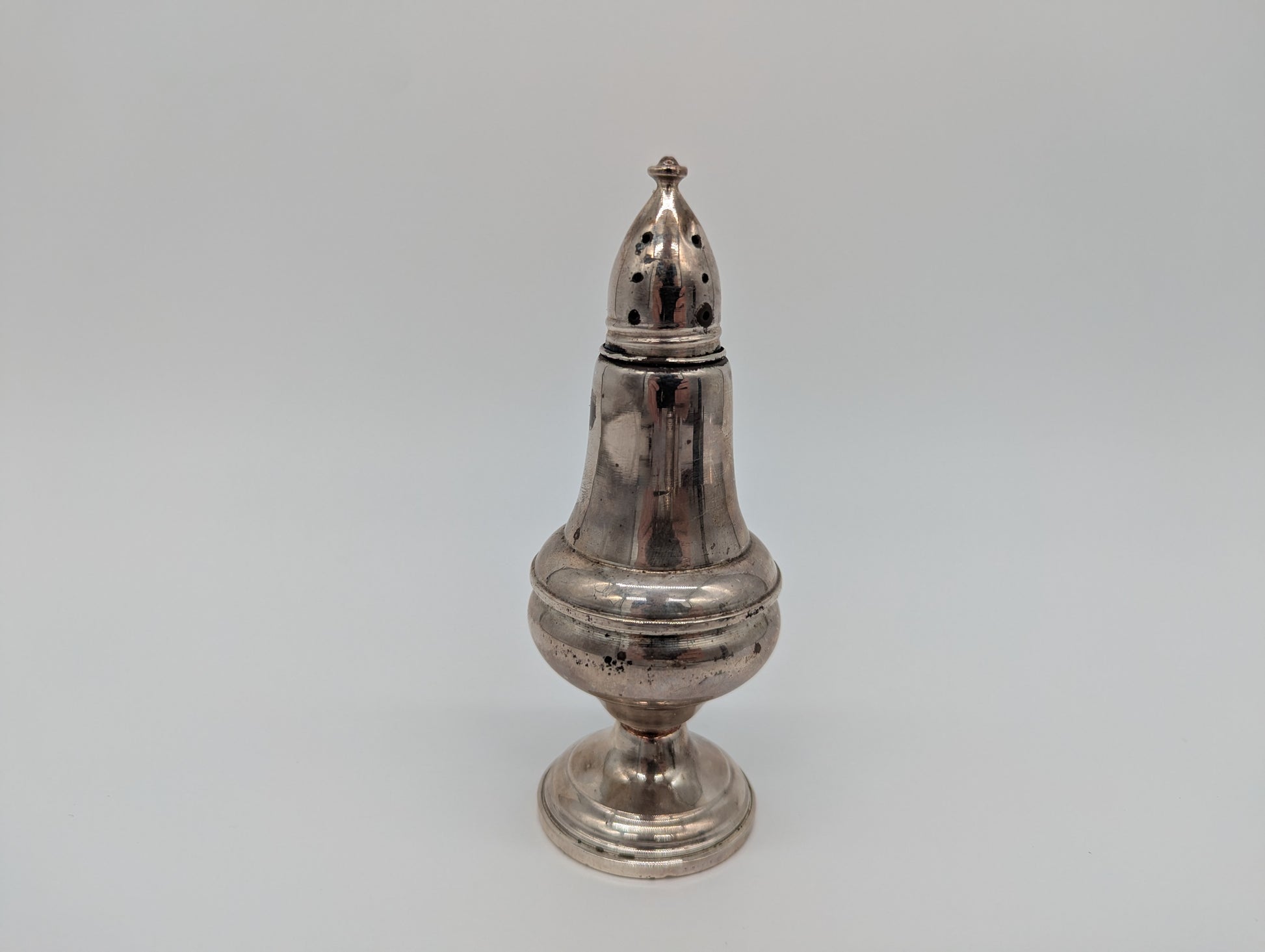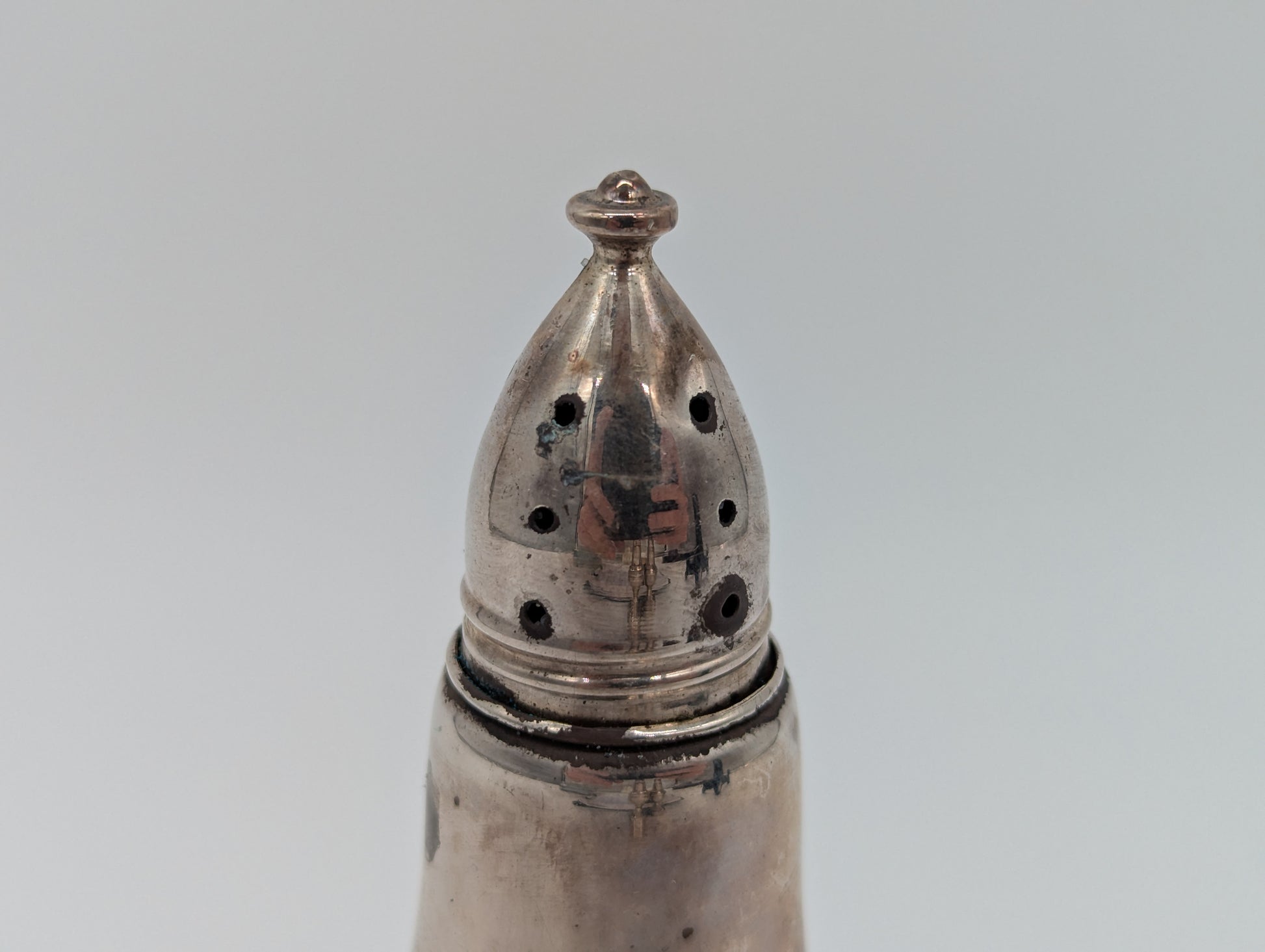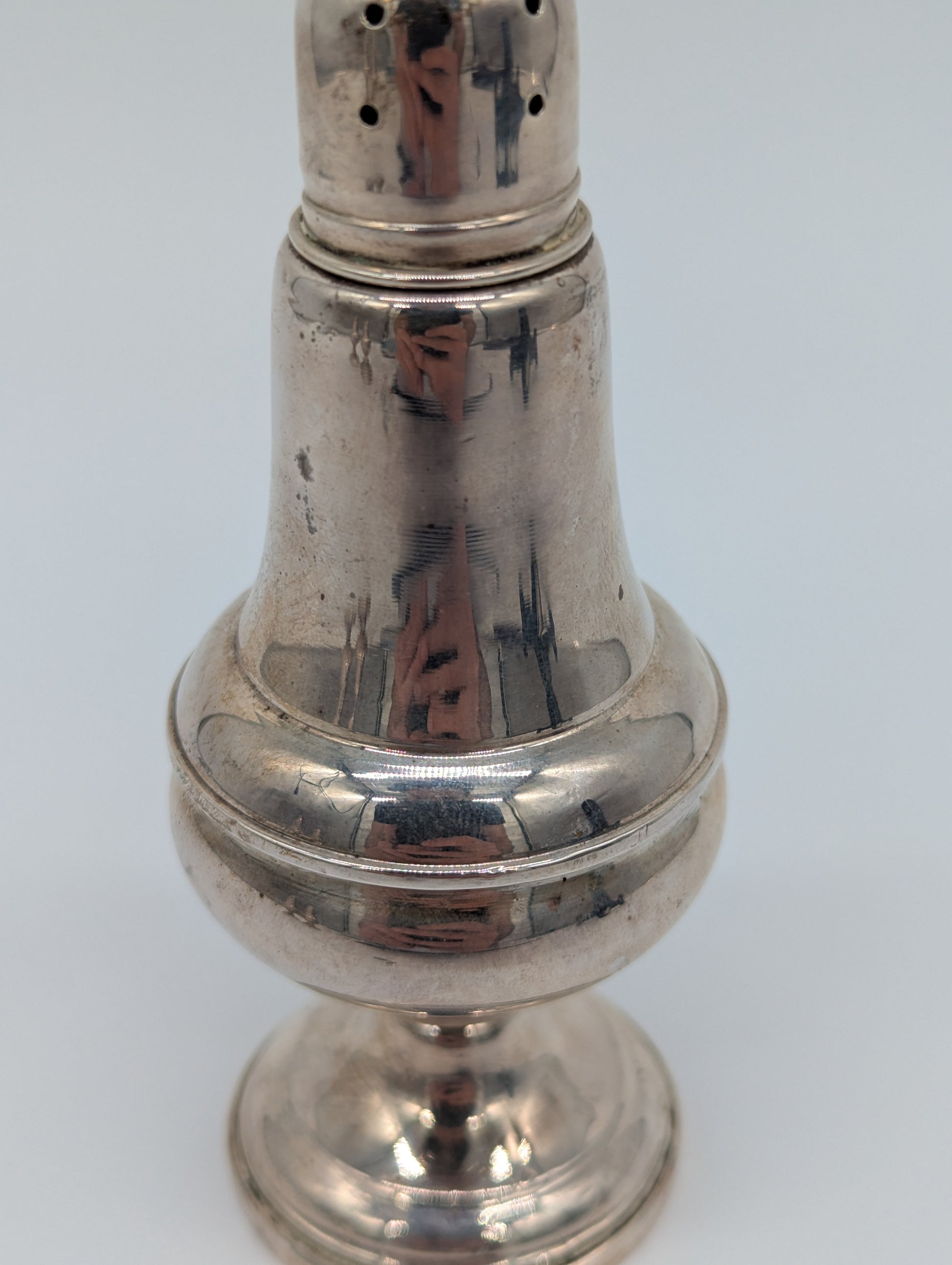 Dieses elegante Set umfasst drei Salz- und Pfefferstreuer aus 925er Sterling Silber in klassischer Balusterform. Mit Höhen zwischen 11 cm und 13 cm und einem Gesamtgewicht von 513 g bestechen die Stücke durch ihre solide Verarbeitung und edle Erscheinung. Die Streuer zeigen leichte Gebrauchsspuren, befinden sich jedoch in gutem Zustand und bringen mit ihrer schönen Patina antiken Charme auf den Tisch.