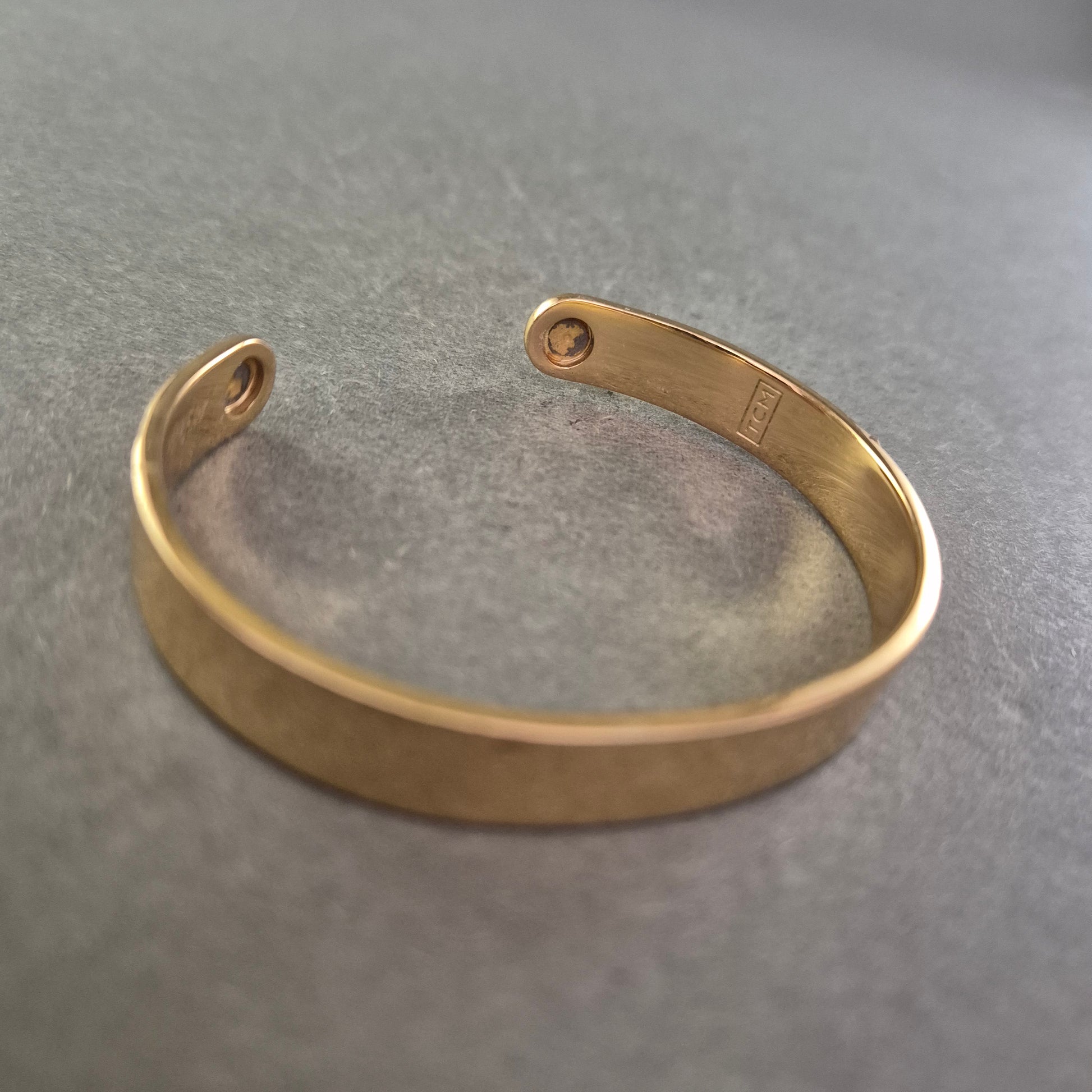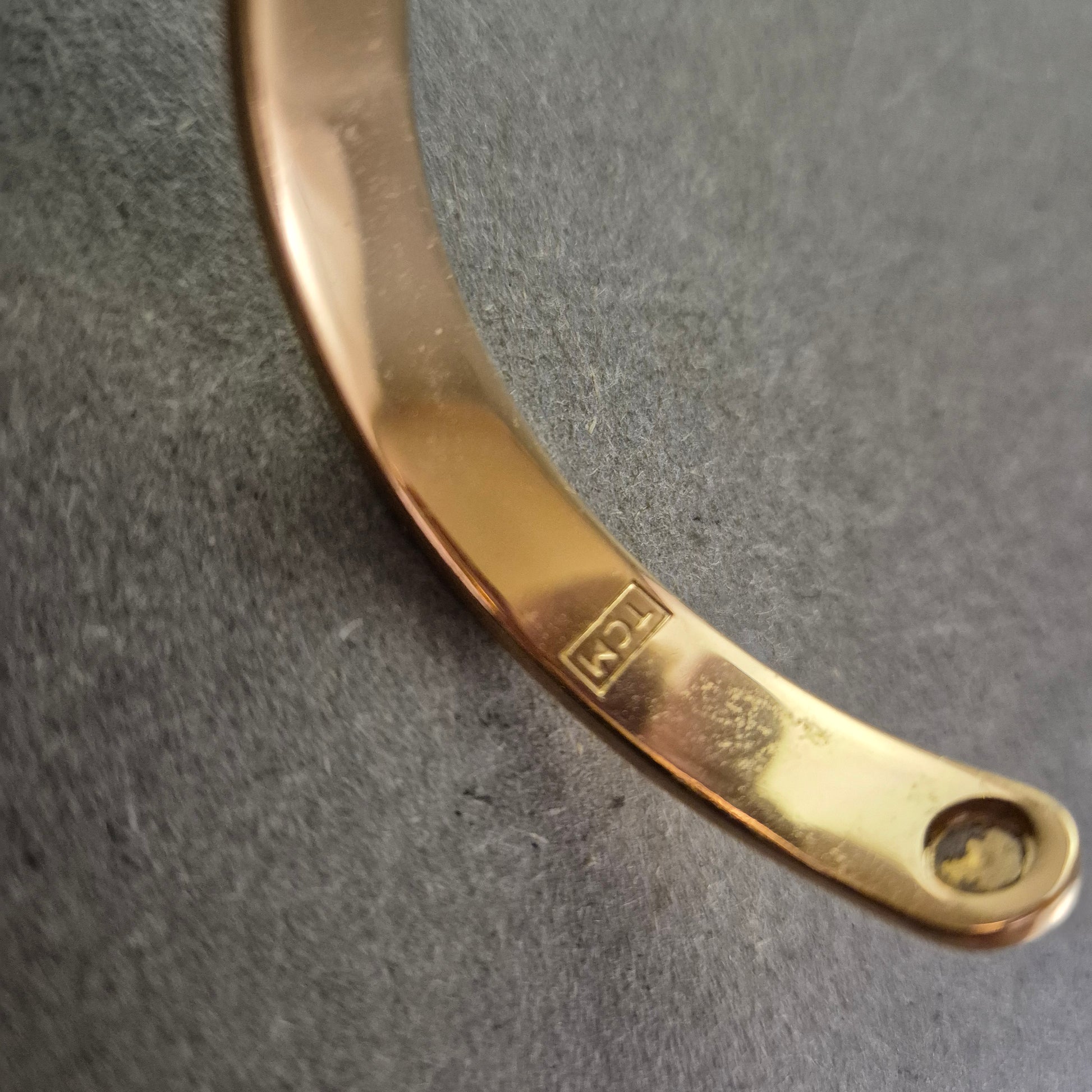 Dieser elegante Armreif in schlichter Goldoptik besticht durch seine minimalistische Form und glänzende Oberfläche. Das Modell mit der Punze "TCH" wirkt edel und lässt sich ideal sowohl einzeln als auch in Kombination mit anderen Schmuckstücken tragen. Das offene Design ermöglicht ein einfaches Anlegen und angenehmes Tragegefühl.