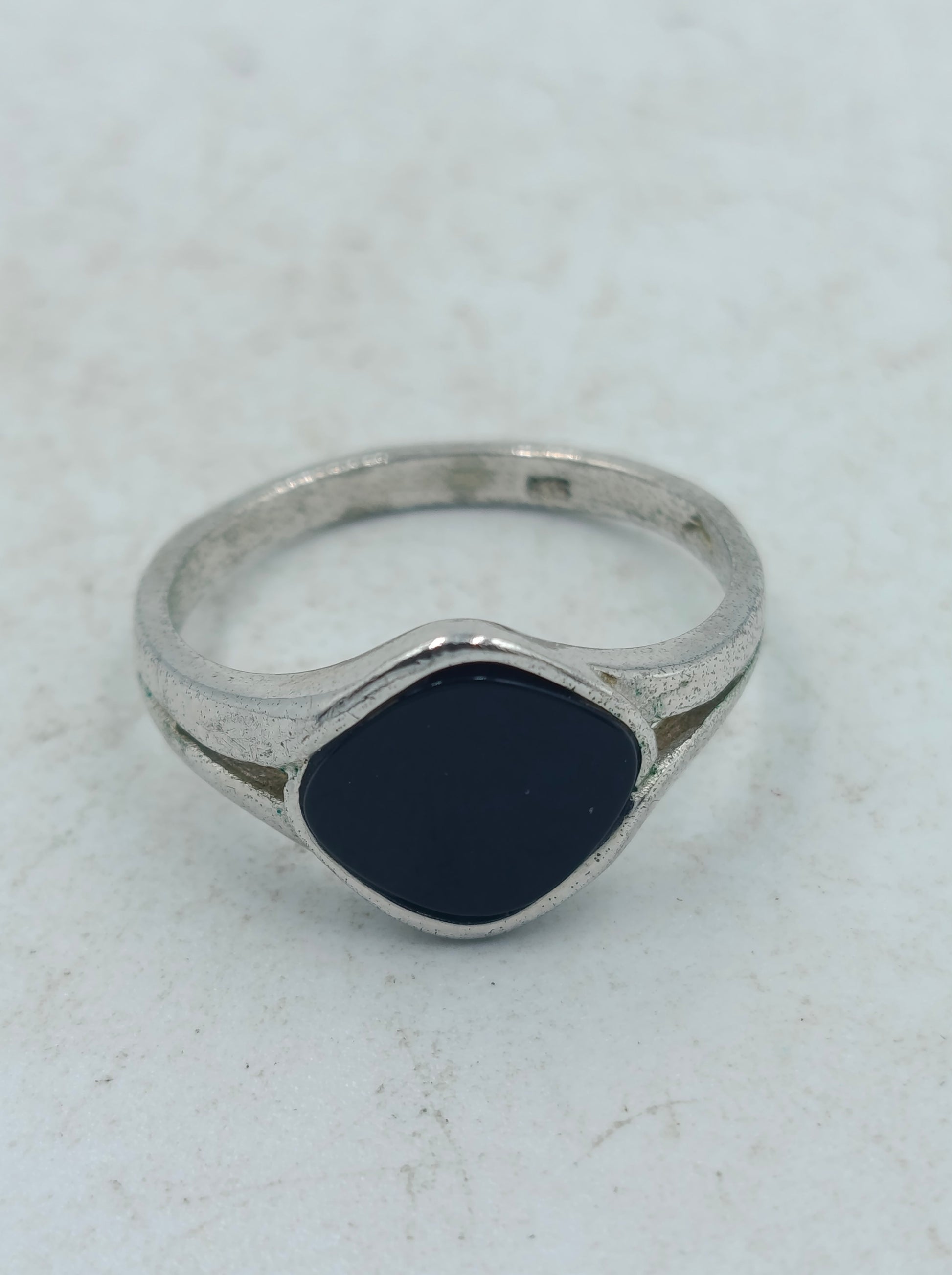 Schlichter Silberring mit schwarzem Steineinsatz im zeitlosen Design
